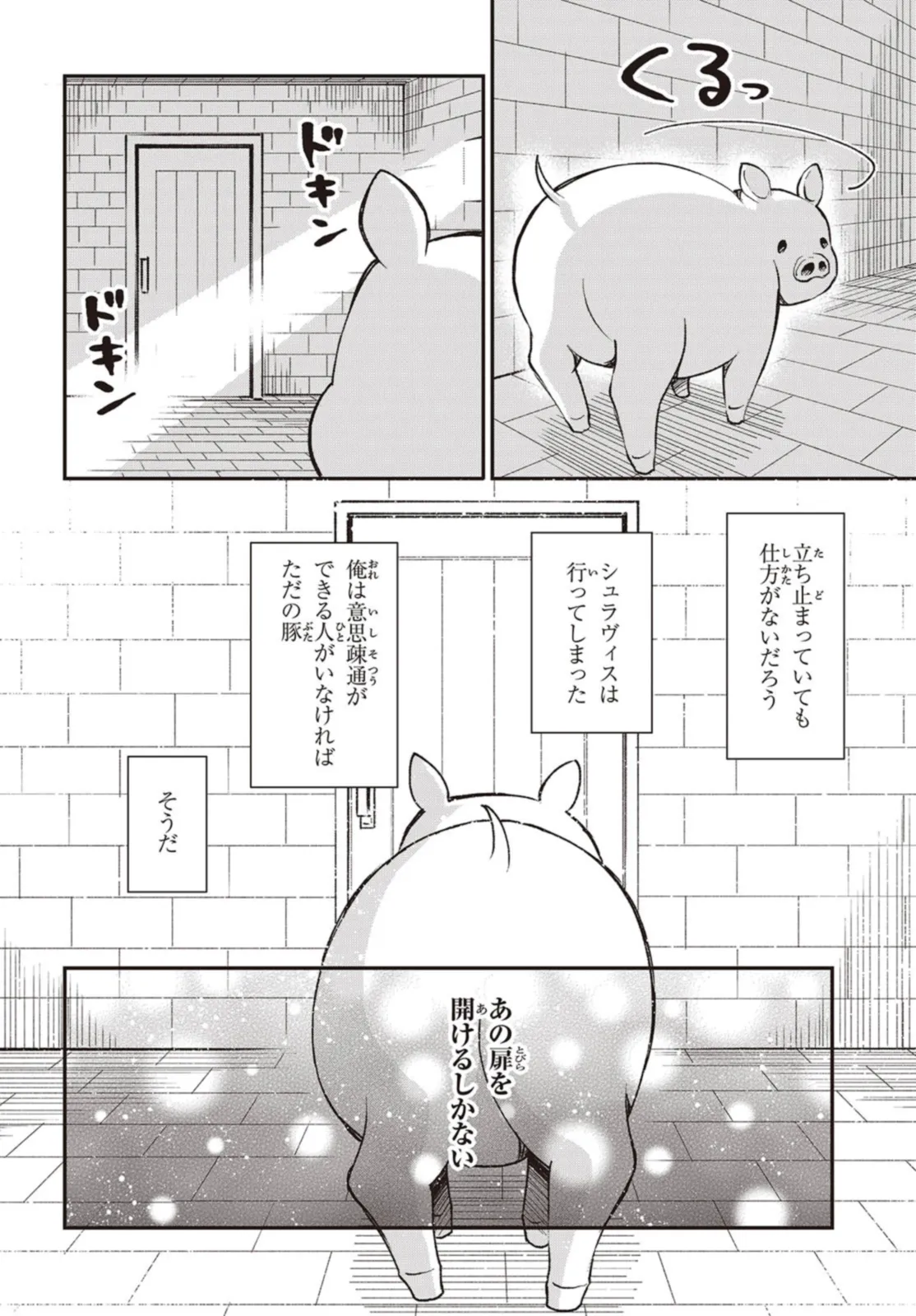 第26回電撃小説大賞《金賞》受賞作が、ブヒッとコミカライズ! 豚のレバーを生で食べて意識を失ったら、異世界に転生して豚になっていた!? 心が読める優しい少女・ジェスとともに、豚の欲望ダダ漏れな冒険が始まる! ――この物語を通して諸君に伝えたいことは、ただひとつ。 豚のレバーは加熱しろ…ということだ。 それでも生で食べたい? 仕方ない。状況を説明しよう。 『俺は豚になっている』 美少女にお世話される、異世界転生いちゃラブ豚ファンタジー、開幕!