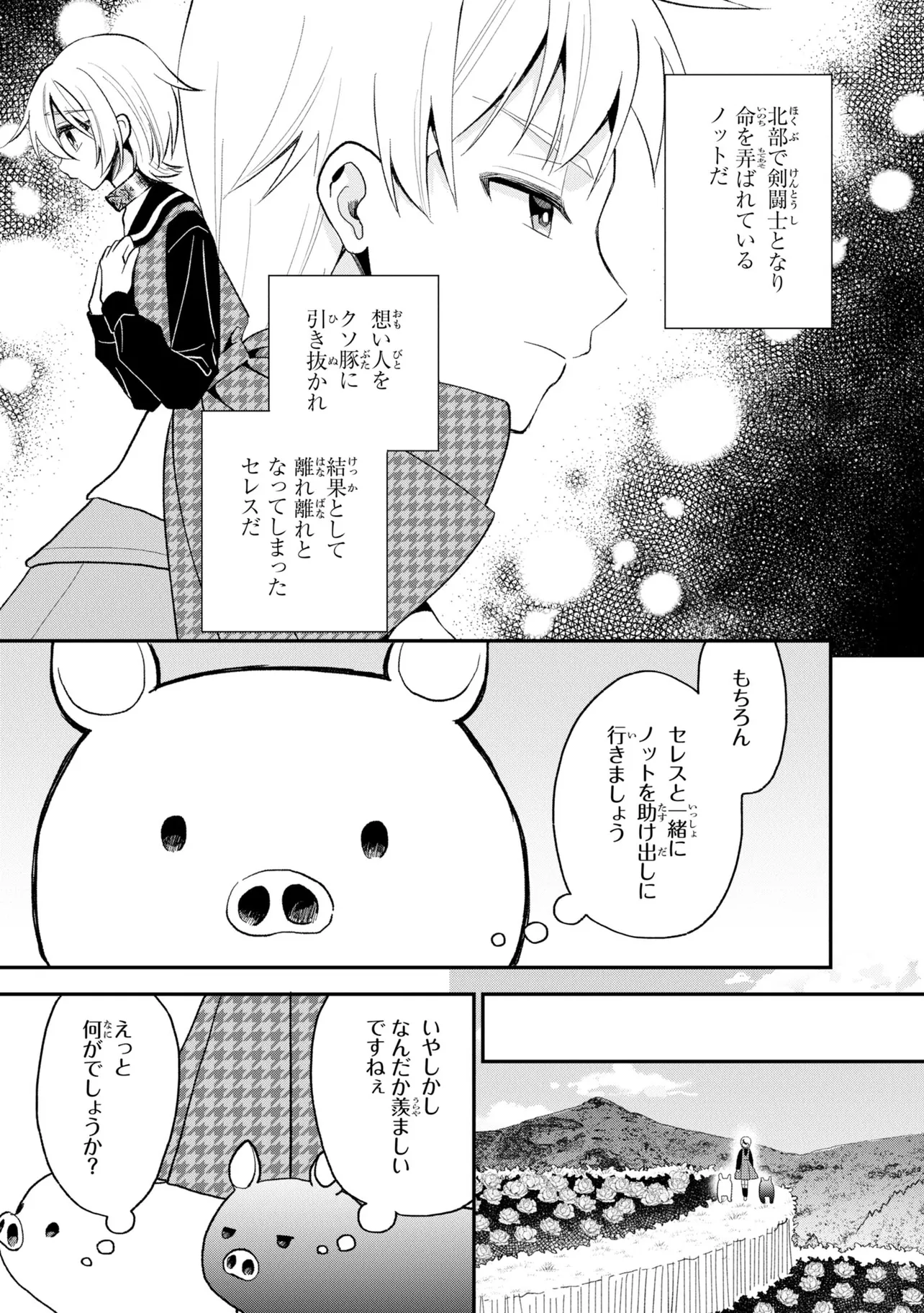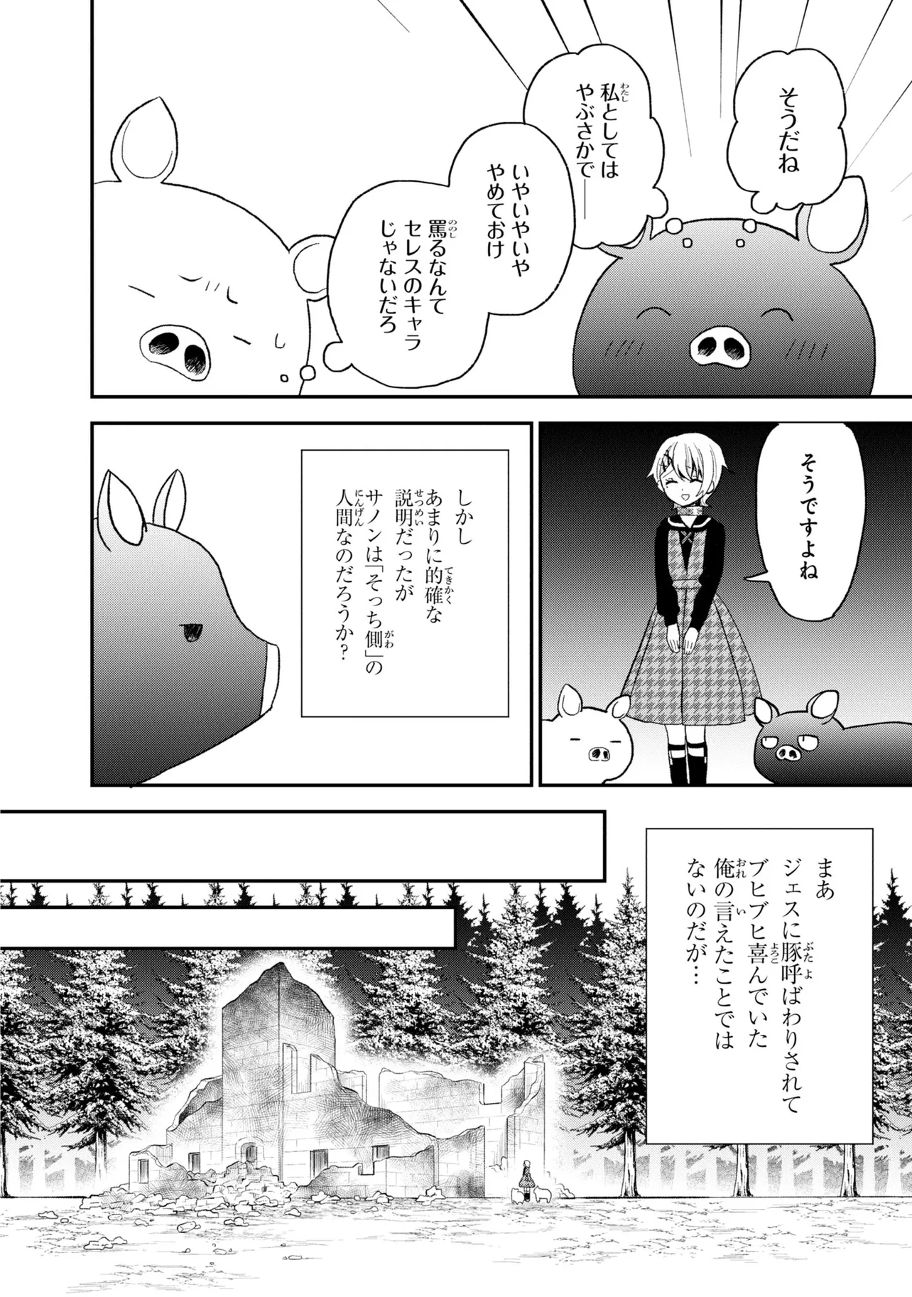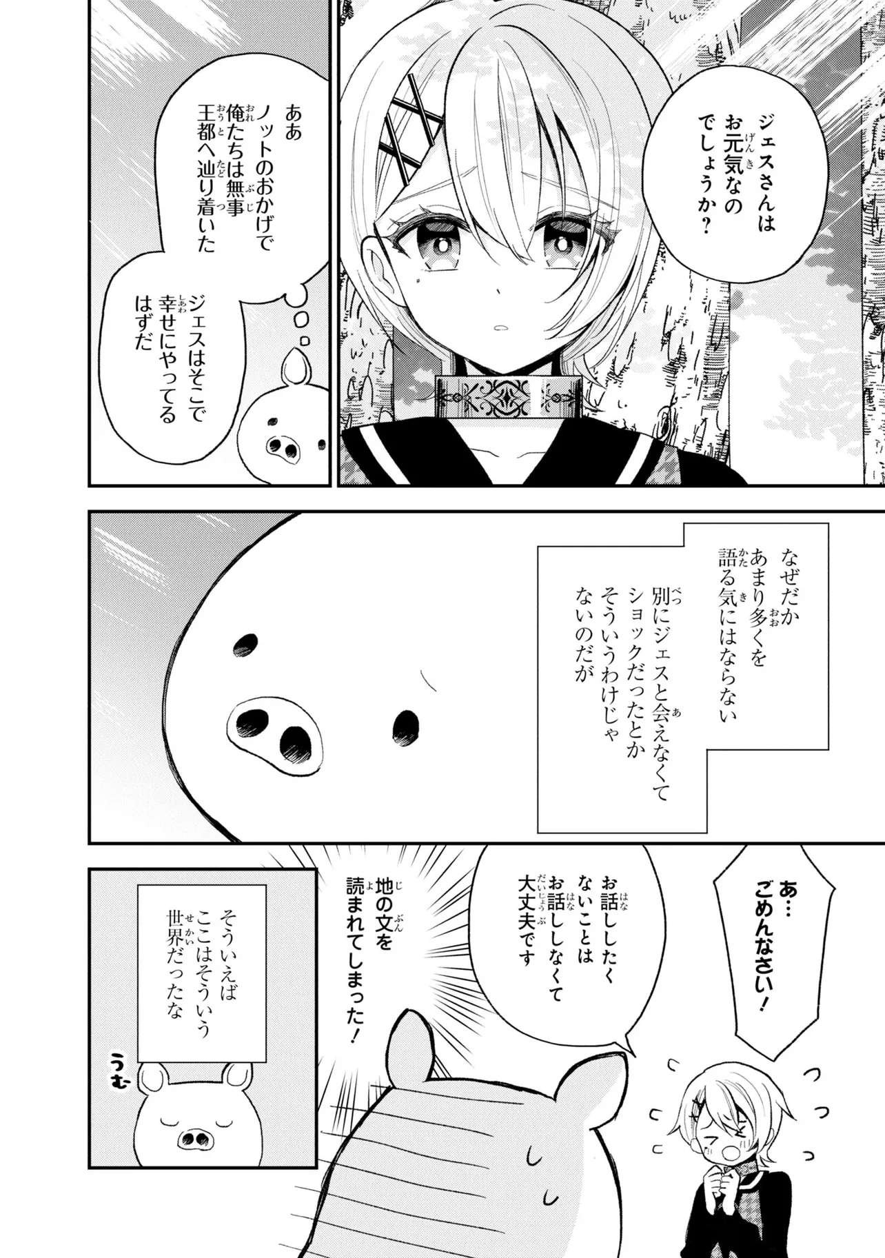 第26回電撃小説大賞《金賞》受賞作が、ブヒッとコミカライズ! 豚のレバーを生で食べて意識を失ったら、異世界に転生して豚になっていた!? 心が読める優しい少女・ジェスとともに、豚の欲望ダダ漏れな冒険が始まる! ――この物語を通して諸君に伝えたいことは、ただひとつ。 豚のレバーは加熱しろ…ということだ。 それでも生で食べたい? 仕方ない。状況を説明しよう。 『俺は豚になっている』 美少女にお世話される、異世界転生いちゃラブ豚ファンタジー、開幕!