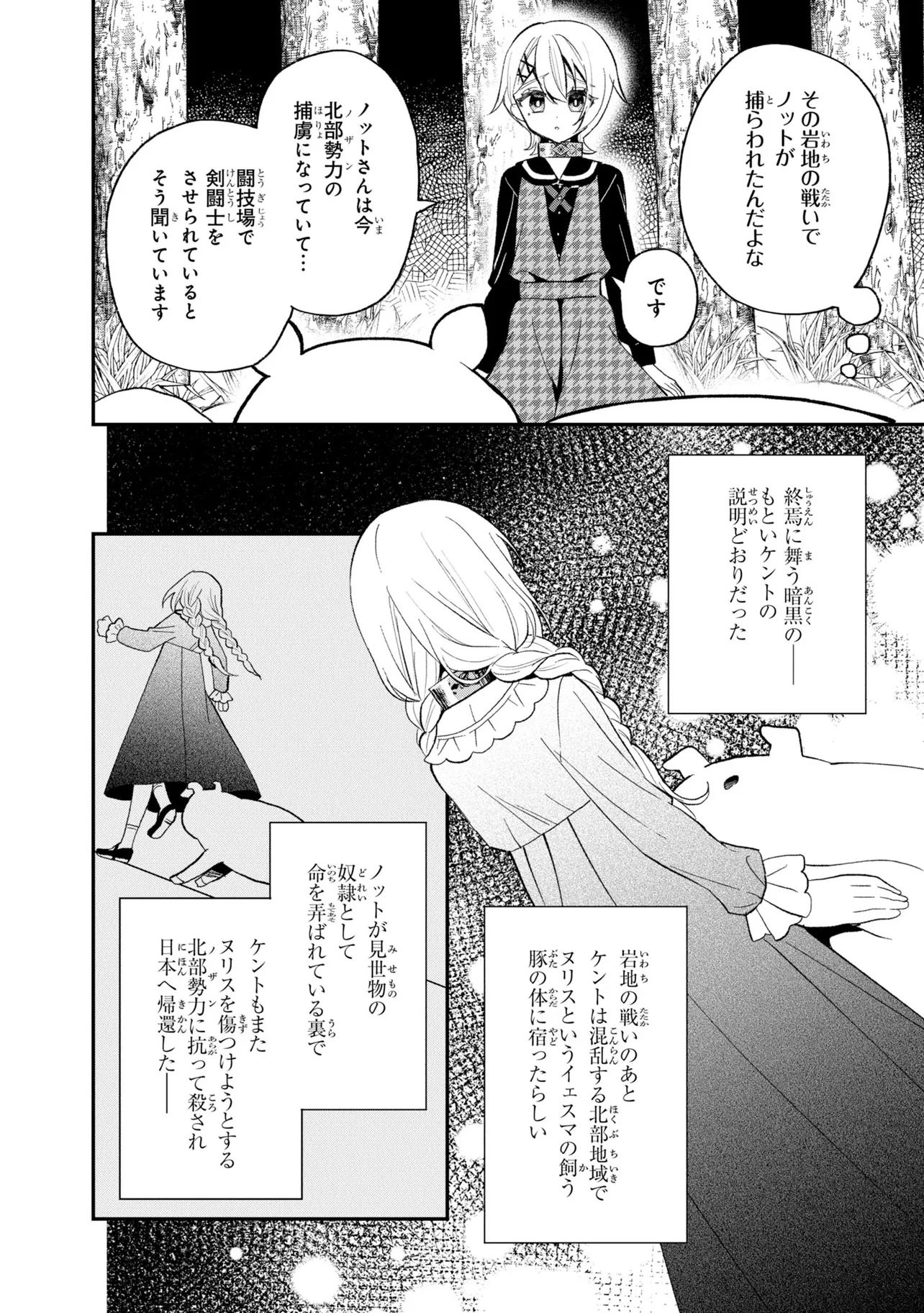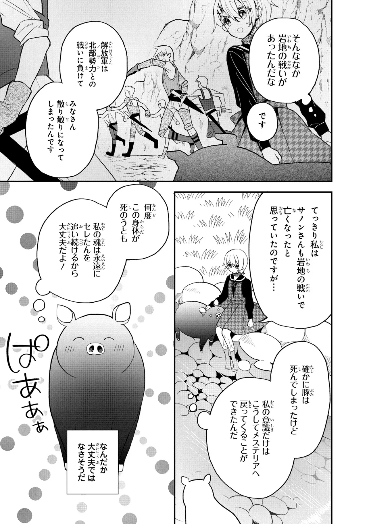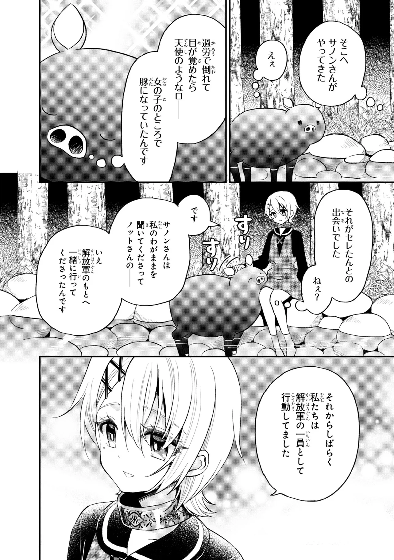 第26回電撃小説大賞《金賞》受賞作が、ブヒッとコミカライズ! 豚のレバーを生で食べて意識を失ったら、異世界に転生して豚になっていた!? 心が読める優しい少女・ジェスとともに、豚の欲望ダダ漏れな冒険が始まる! ――この物語を通して諸君に伝えたいことは、ただひとつ。 豚のレバーは加熱しろ…ということだ。 それでも生で食べたい? 仕方ない。状況を説明しよう。 『俺は豚になっている』 美少女にお世話される、異世界転生いちゃラブ豚ファンタジー、開幕!