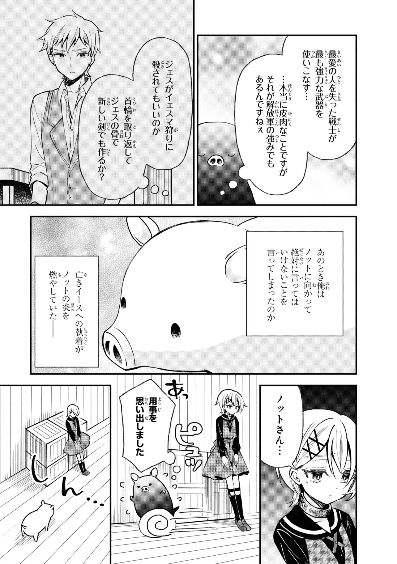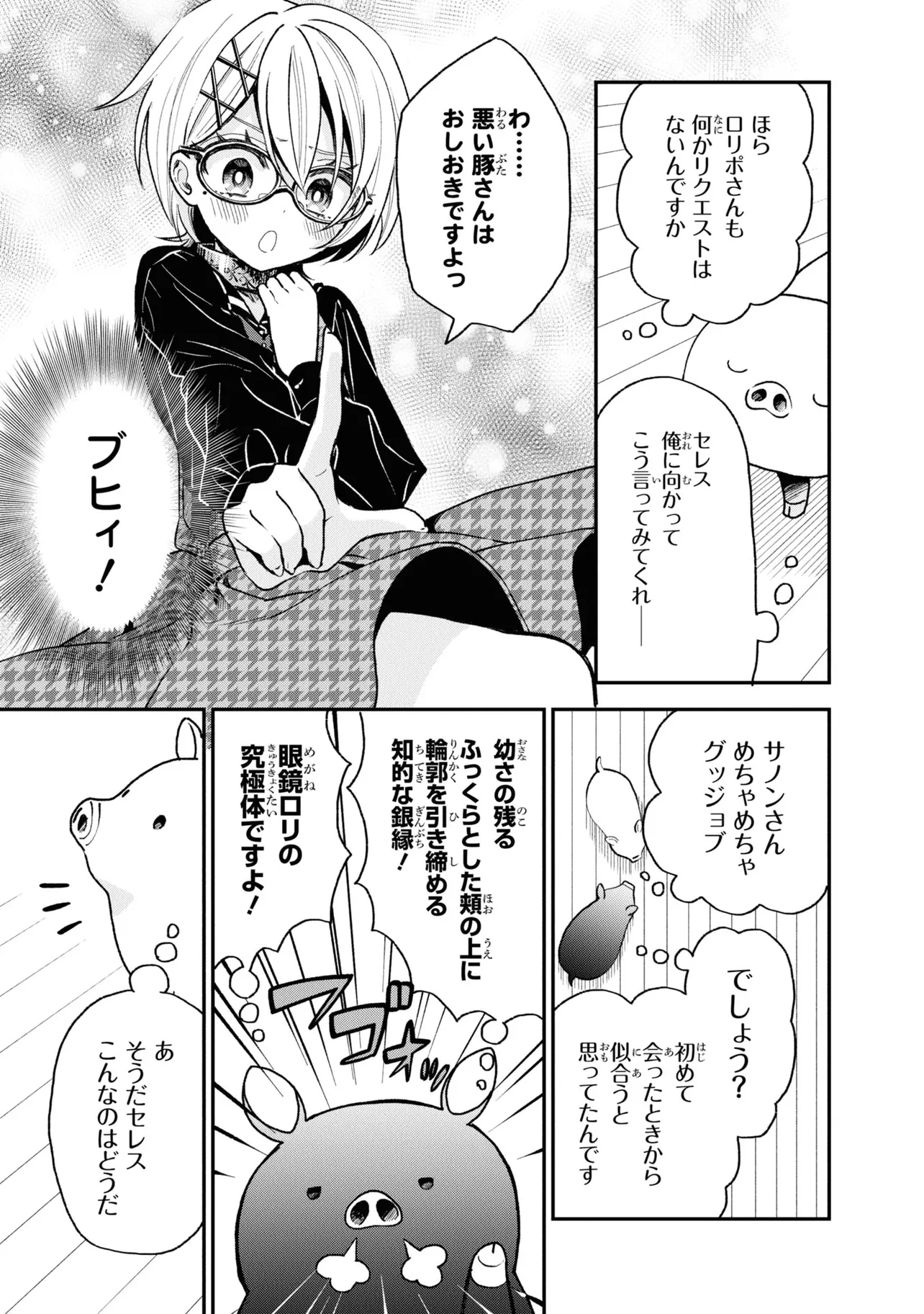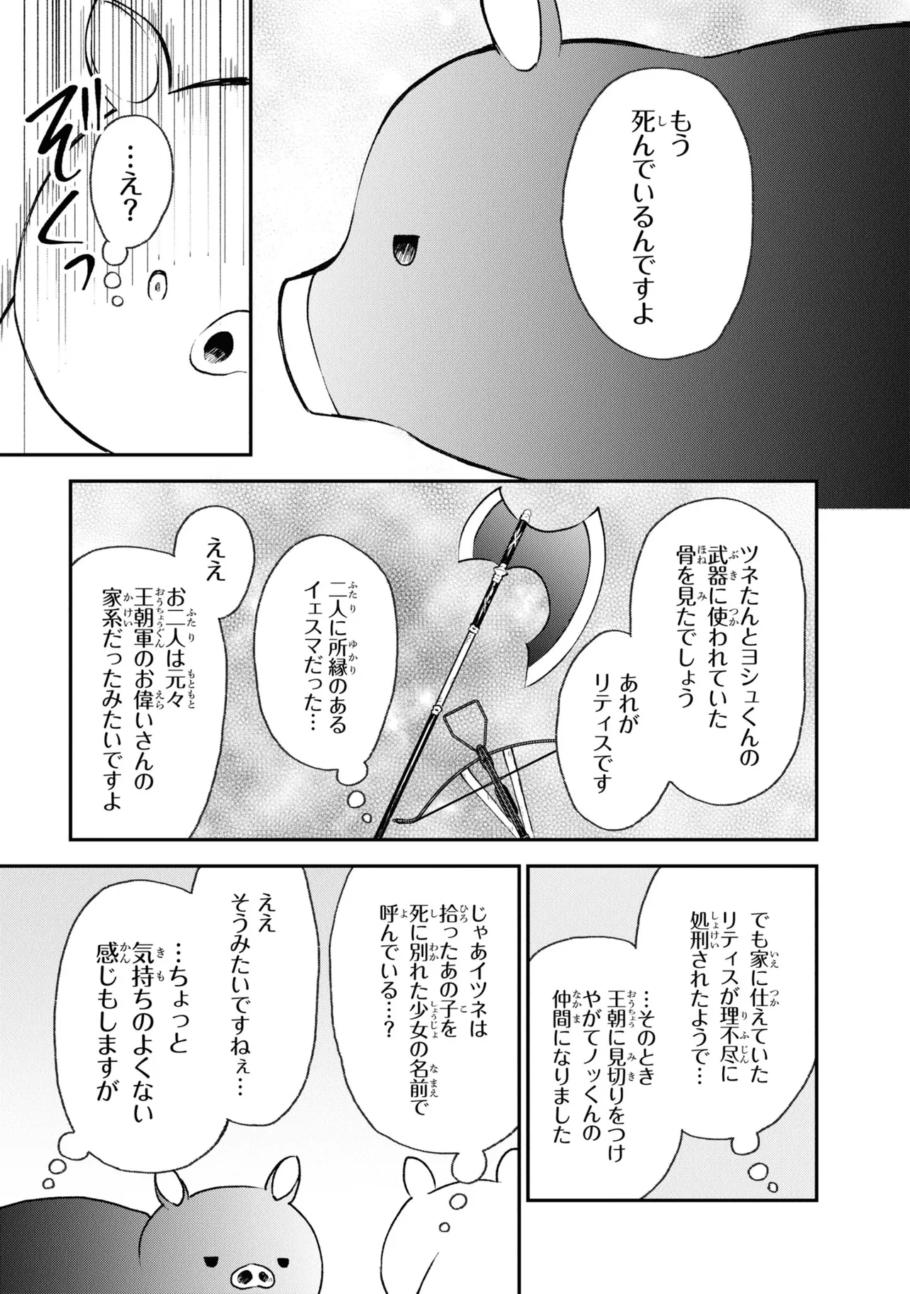第26回電撃小説大賞《金賞》受賞作が、ブヒッとコミカライズ! 豚のレバーを生で食べて意識を失ったら、異世界に転生して豚になっていた!? 心が読める優しい少女・ジェスとともに、豚の欲望ダダ漏れな冒険が始まる! ――この物語を通して諸君に伝えたいことは、ただひとつ。 豚のレバーは加熱しろ…ということだ。 それでも生で食べたい? 仕方ない。状況を説明しよう。 『俺は豚になっている』 美少女にお世話される、異世界転生いちゃラブ豚ファンタジー、開幕!
