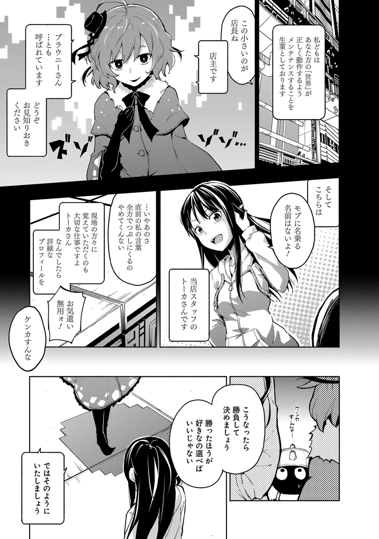 舞台裏のブラウニーさん Patch 1.01 舞台裏のブラウニーさん 投稿者 admin - 4か月 前に 幸せな読書漫画 舞台裏のブラウニーさん Patch 1.01 , いいねと共有ボタンをクリックすることを忘れないでください. Manga 舞台裏のブラウニーさん 常に更新されます 無料コミック Comic Top. 他のマンガの更新を読むことを忘れないでください。 マンガコレクションのリスト 無料コミック Comic Top マンガリストメニューにあります. お友達と共有しましょう! Facebook Twitter Pinterest Whatsapp 前のエピソード すべての章 次のエピソード リスト ページング Loading.. 前のエピソード すべての章 次のエピソード リスト ページング お友達と共有しましょう! Facebook Twitter Pinterest Whatsapp お気に入りに追加に続く 0 人 舞台裏のブラウニーさん 修理屋『Brownie'S』のお仕事は、ゲームが正しく動くようにメンテナンスすること。不具合で前に進めない? “中”からそのバグ直します。いらないデータが溜まってる? “中”でそのゴミ掃除します。そう、彼女たちの仕事場はゲームの世界の“中”! 快適なプレイを守るため、店主のブラウニーさんとスタッフたちは今日も働く!! 氷野広真(漫画) ギャグまったり