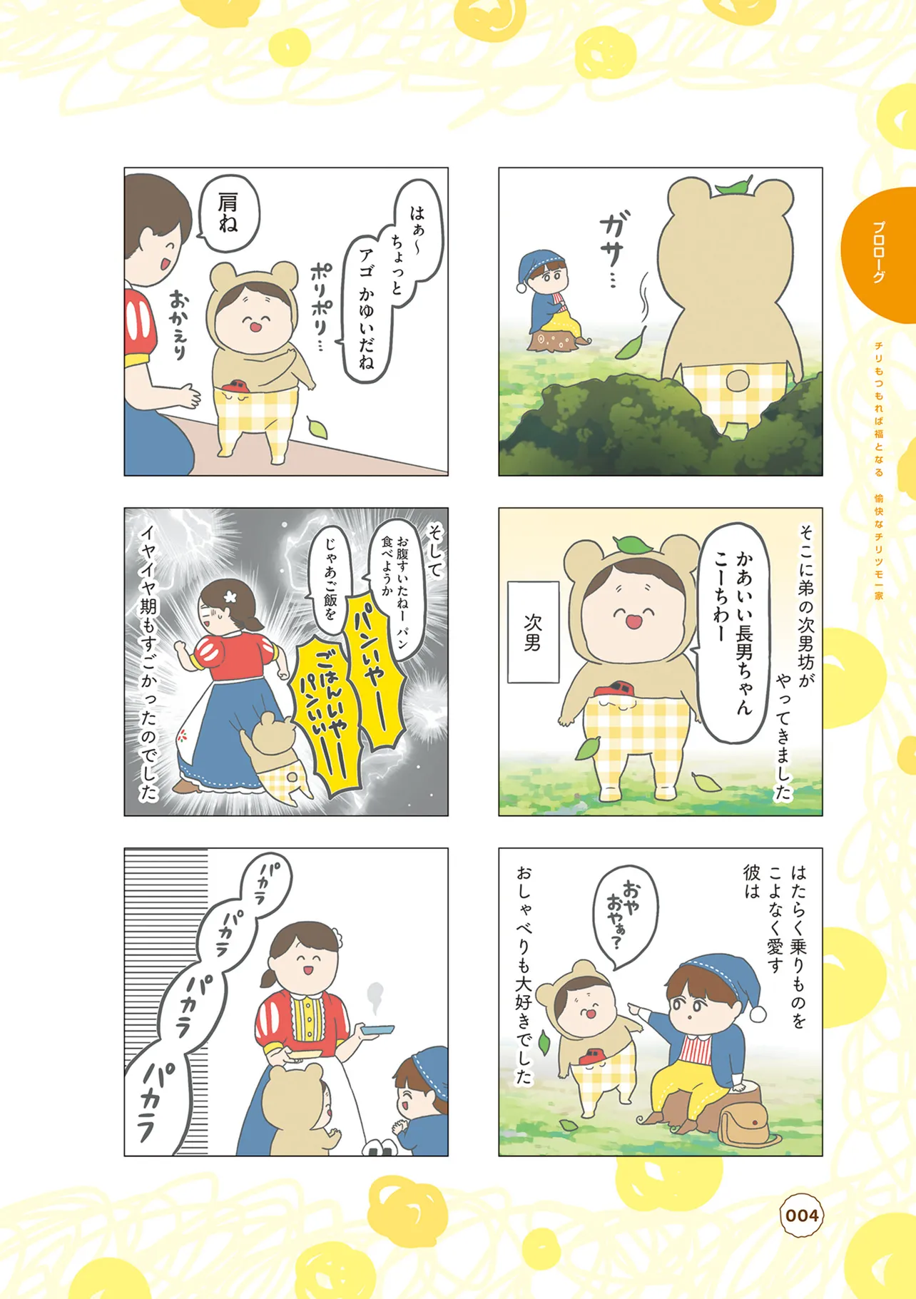 2児の母である、著者・チリツモルをとりまく、個性的な家族の面白エピソードを盛りだくさんに詰めこみました! どんなに雑に扱われてもめげない家族想いの夫、クールだけど優しい長男くん、可愛くて一番変人の次男くん、そして幸せすぎると変顔になってしまう母。 そんな面白い一家の日常を覗いてみませんか?