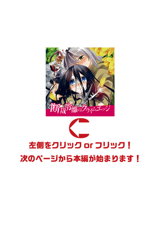 断裁分離のクライムエッジ 第33話 断裁分離のクライムエッジ 投稿者 admin - 2年 前に 幸せな読書漫画 断裁分離のクライムエッジ 第33話 , いいねと共有ボタンをクリックすることを忘れないでください. Manga 断裁分離のクライムエッジ 常に更新されます 無料コミック Comic Top. 他のマンガの更新を読むことを忘れないでください。 マンガコレクションのリスト 無料コミック Comic Top マンガリストメニューにあります. お友達と共有しましょう! Facebook Twitter Pinterest Whatsapp 前のエピソード すべての章 次のエピソード リスト ページング Loading.. 前のエピソード すべての章 次のエピソード リスト ページング お友達と共有しましょう! Facebook Twitter Pinterest Whatsapp お気に入りに追加に続く 1 人 断裁分離のクライムエッジ 君を切りたい。 「女の子の髪を切りたい」趣味の少年・灰村切は学校帰りに偶然立ち寄った洋館で、長く美しい髪の少女・武者小路祝と出会う。切の鋏が「切れないはず」の彼女の髪を切ってしまい、殺害遺品(キリンググッズ)の物語は動き出す――。 殺人鬼の血を受け継ぐ少年少女たちのラブ・バトルストーリー! 緋鍵龍彦(著者) アニメ化バトルファンタジーラブコメ女子高校生(JK)恋愛