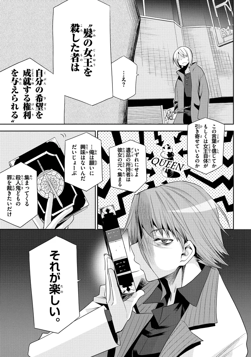 君を切りたい。 「女の子の髪を切りたい」趣味の少年・灰村切は学校帰りに偶然立ち寄った洋館で、長く美しい髪の少女・武者小路祝と出会う。切の鋏が「切れないはず」の彼女の髪を切ってしまい、殺害遺品(キリンググッズ)の物語は動き出す――。 殺人鬼の血を受け継ぐ少年少女たちのラブ・バトルストーリー!