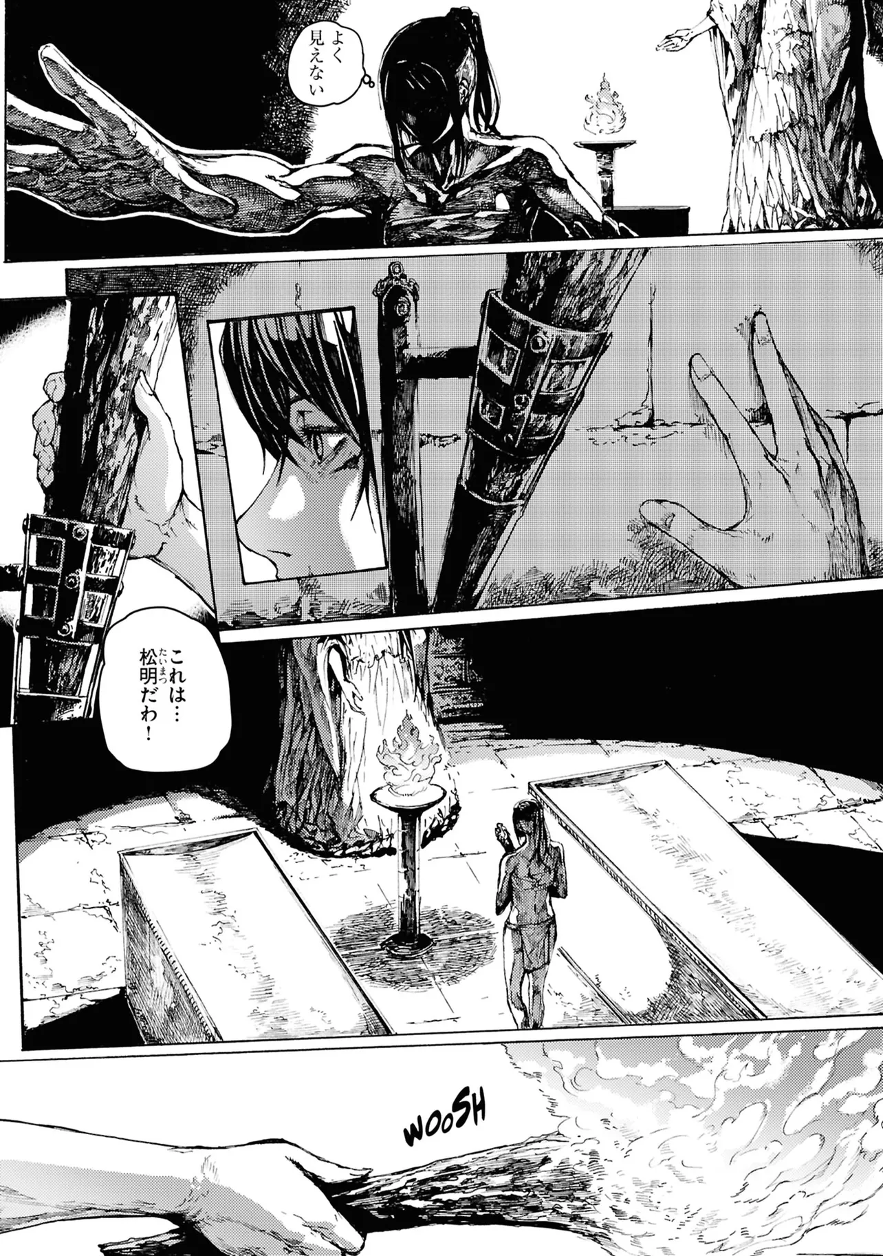 アクションRPG『ダークソウル』の世界観を舞台に描かれる壮大なオリジナルファンタジー 記憶を失い、広大な廃墟で目覚めたイラ。謎の少年・イドに導かれ、イラは自らに刻まれたダークサイン、息子・アキ、そしてゴーレムやドラゴンとの戦いに巻き込まれてゆく……。