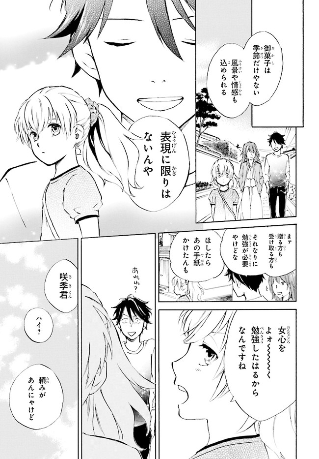 であいもん 第3話その2 であいもん 投稿者 admin - 3年 前に 幸せな読書漫画 であいもん 第3話その2 , いいねと共有ボタンをクリックすることを忘れないでください. Manga であいもん 常に更新されます 無料コミック Comic Top. 他のマンガの更新を読むことを忘れないでください。 マンガコレクションのリスト 無料コミック Comic Top マンガリストメニューにあります. お友達と共有しましょう! Facebook Twitter Pinterest Whatsapp 前のエピソード すべての章 次のエピソード リスト ページング Loading.. 前のエピソード すべての章 次のエピソード リスト ページング お友達と共有しましょう! Facebook Twitter Pinterest Whatsapp お気に入りに追加に続く 1 人 であいもん 和菓子が繋ぐ、父娘の絆――。 実力派作家が描くハートウォーミングストーリー! 父入院の報を受け、10年ぶりに和菓子屋を営む京都の実家へと帰った納野和。 父の代わりに店を継ぐと意気込む和だったが、任されたのは店ではなく、跡継ぎと呼ばれる少女・雪平一果の父親代わりで…!? 浅野りん(著者) 家族