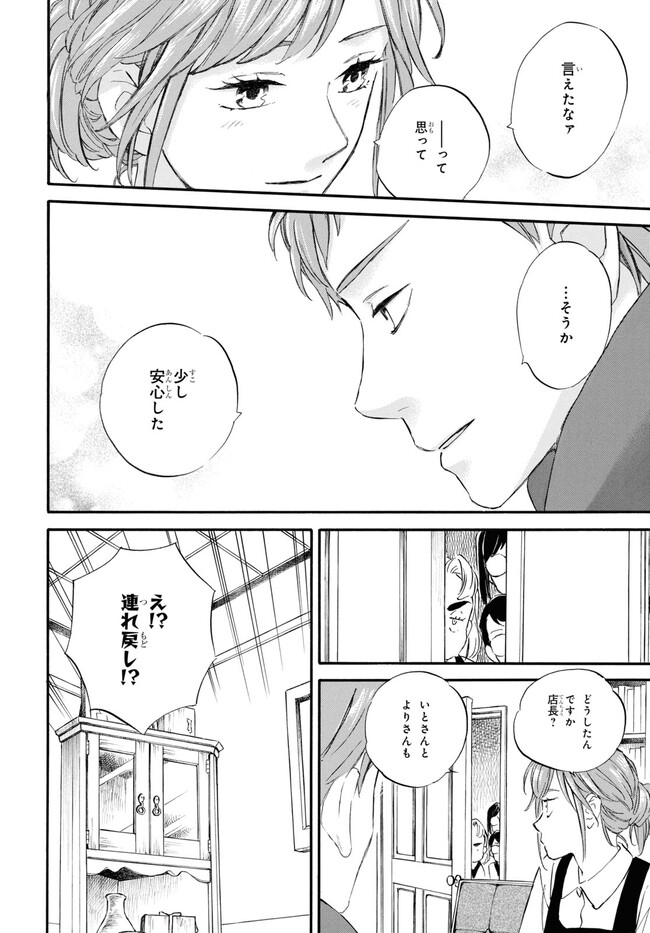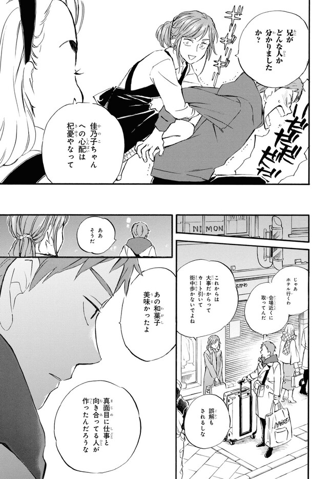 であいもん 第83話その2 であいもん 投稿者 admin - 2年 前に 幸せな読書漫画 であいもん 第83話その2 , いいねと共有ボタンをクリックすることを忘れないでください. Manga であいもん 常に更新されます 無料コミック Comic Top. 他のマンガの更新を読むことを忘れないでください。 マンガコレクションのリスト 無料コミック Comic Top マンガリストメニューにあります. お友達と共有しましょう! Facebook Twitter Pinterest Whatsapp 前のエピソード すべての章 次のエピソード リスト ページング Loading.. 前のエピソード すべての章 次のエピソード リスト ページング お友達と共有しましょう! Facebook Twitter Pinterest Whatsapp お気に入りに追加に続く 1 人 であいもん 和菓子が繋ぐ、父娘の絆――。 実力派作家が描くハートウォーミングストーリー! 父入院の報を受け、10年ぶりに和菓子屋を営む京都の実家へと帰った納野和。 父の代わりに店を継ぐと意気込む和だったが、任されたのは店ではなく、跡継ぎと呼ばれる少女・雪平一果の父親代わりで…!? 浅野りん(著者) 家族