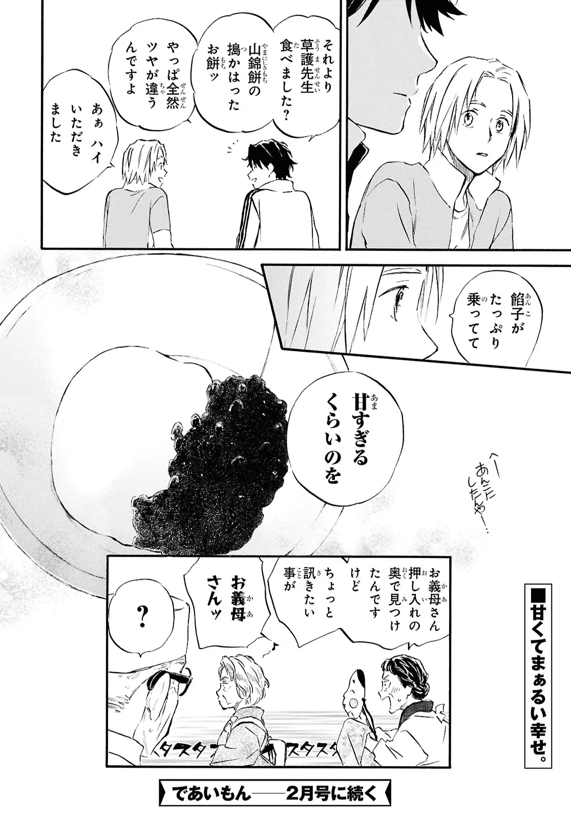 であいもん 第93話その2 であいもん 投稿者 admin - 11か月 前に 幸せな読書漫画 であいもん 第93話その2 , いいねと共有ボタンをクリックすることを忘れないでください. Manga であいもん 常に更新されます 無料コミック Comic Top. 他のマンガの更新を読むことを忘れないでください。 マンガコレクションのリスト 無料コミック Comic Top マンガリストメニューにあります. お友達と共有しましょう! Facebook Twitter Pinterest Whatsapp 前のエピソード すべての章 次のエピソード リスト ページング Loading.. 前のエピソード すべての章 次のエピソード リスト ページング お友達と共有しましょう! Facebook Twitter Pinterest Whatsapp お気に入りに追加に続く 1 人 であいもん 和菓子が繋ぐ、父娘の絆――。 実力派作家が描くハートウォーミングストーリー! 父入院の報を受け、10年ぶりに和菓子屋を営む京都の実家へと帰った納野和。 父の代わりに店を継ぐと意気込む和だったが、任されたのは店ではなく、跡継ぎと呼ばれる少女・雪平一果の父親代わりで…!? 浅野りん(著者) 家族