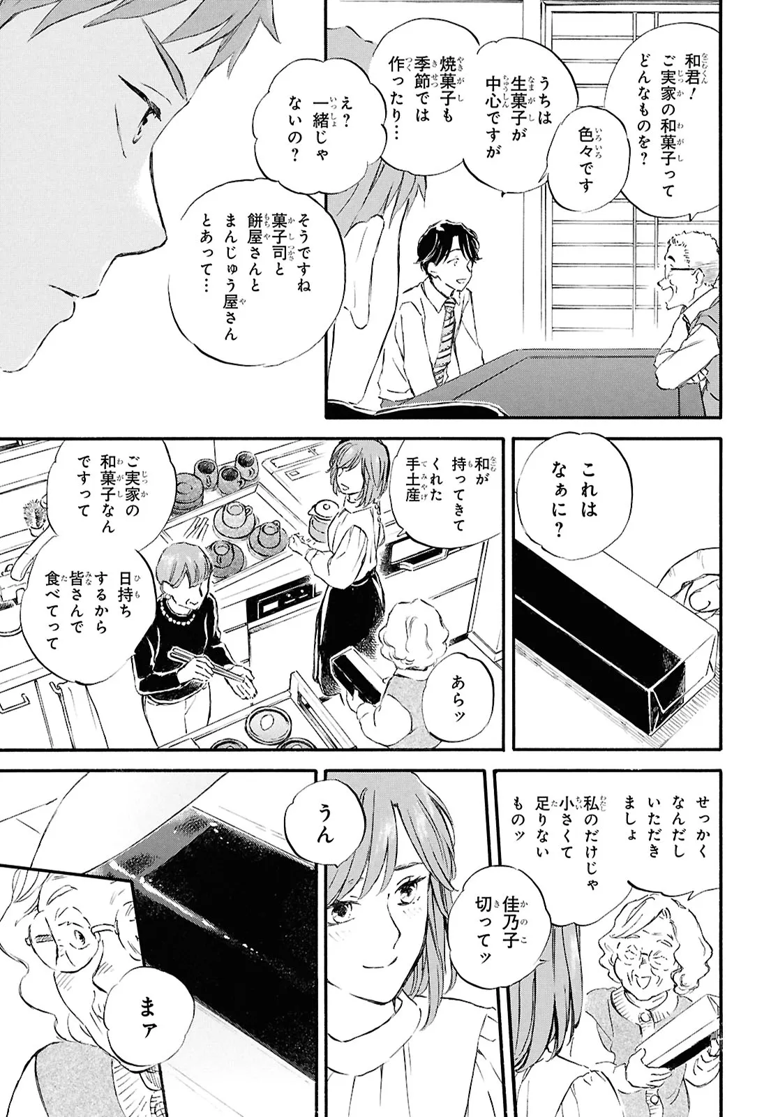 であいもん 第97話その2 であいもん 投稿者 admin - 5か月 前に 幸せな読書漫画 であいもん 第97話その2 , いいねと共有ボタンをクリックすることを忘れないでください. Manga であいもん 常に更新されます 無料コミック Comic Top. 他のマンガの更新を読むことを忘れないでください。 マンガコレクションのリスト 無料コミック Comic Top マンガリストメニューにあります. お友達と共有しましょう! Facebook Twitter Pinterest Whatsapp 前のエピソード すべての章 次のエピソード リスト ページング Loading.. 前のエピソード すべての章 次のエピソード リスト ページング お友達と共有しましょう! Facebook Twitter Pinterest Whatsapp お気に入りに追加に続く 1 人 であいもん 和菓子が繋ぐ、父娘の絆――。 実力派作家が描くハートウォーミングストーリー! 父入院の報を受け、10年ぶりに和菓子屋を営む京都の実家へと帰った納野和。 父の代わりに店を継ぐと意気込む和だったが、任されたのは店ではなく、跡継ぎと呼ばれる少女・雪平一果の父親代わりで…!? 浅野りん(著者) 家族