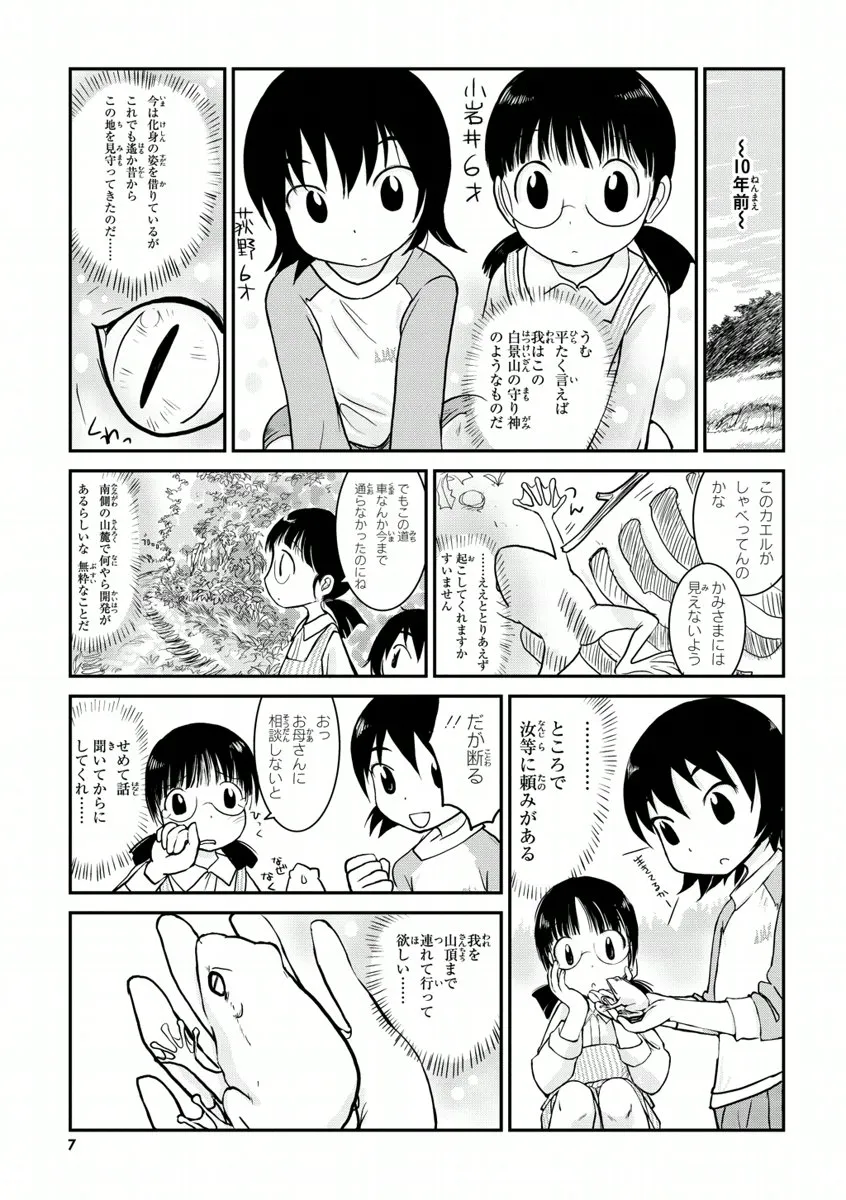 高校2年生の荻野夏穂と小岩井知春。二人の所属する漫画研究会に、ある日突然カエルのかみさまがやって来た!