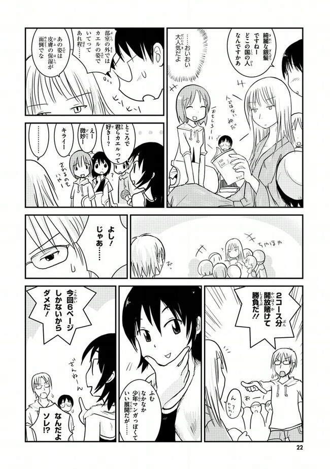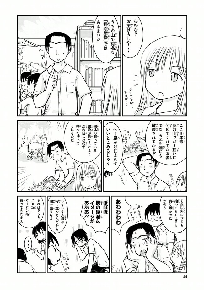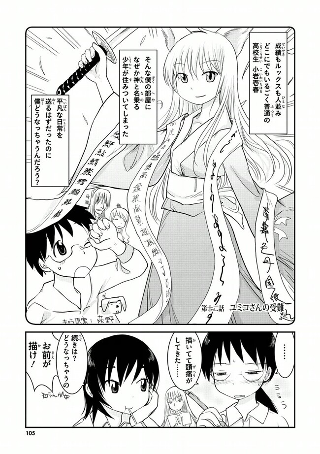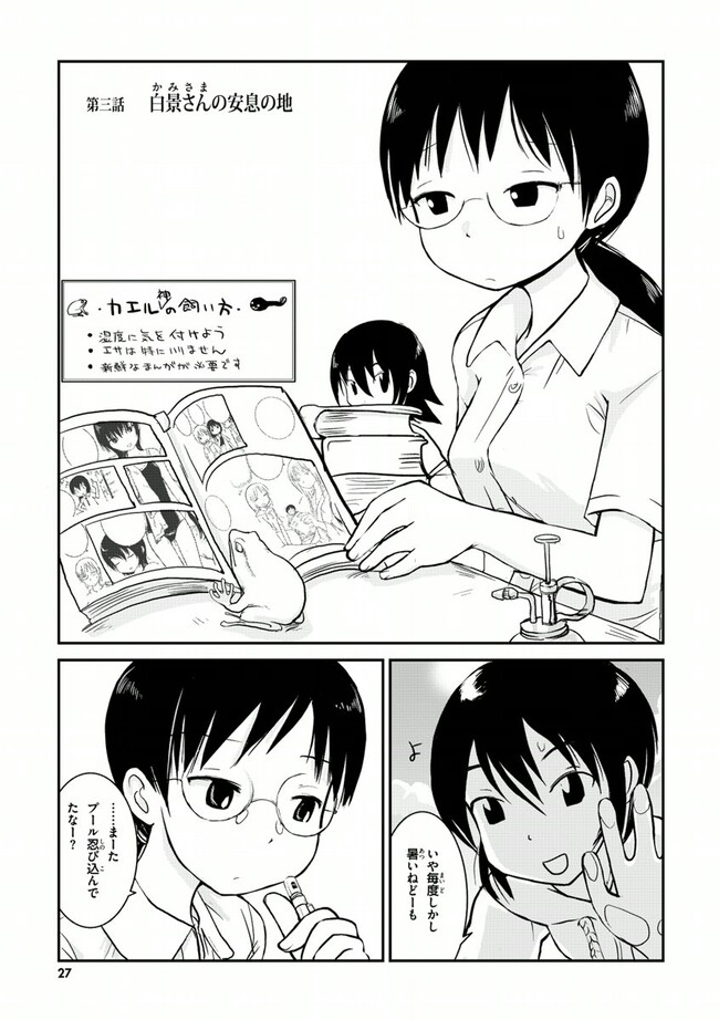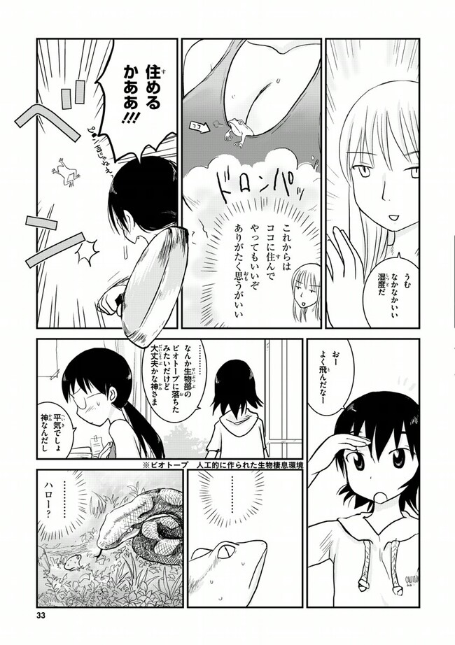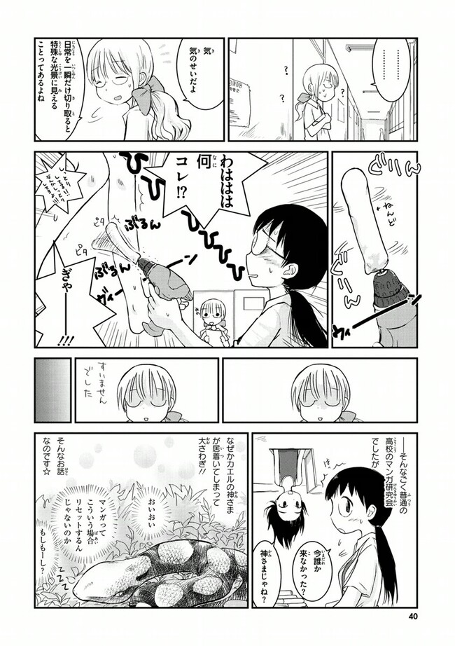 高校2年生の荻野夏穂と小岩井知春。二人の所属する漫画研究会に、ある日突然カエルのかみさまがやって来た!