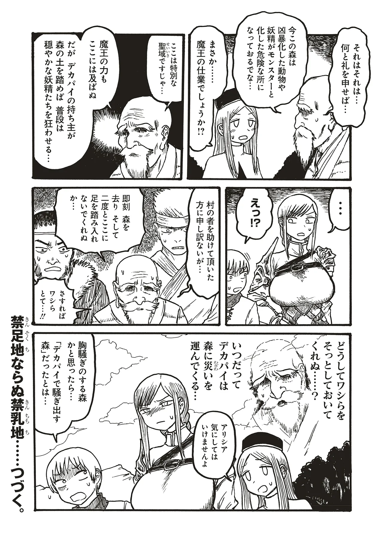 いずれ訪れる魔王の復活に備え、伝説の剣を探すため旅をする一行。しかしパーティーの要である女騎士・アリシアは、この世界では不吉の象徴とされる”デカパイ”の持ち主であった……。この旅路に待ち受けるものは!?