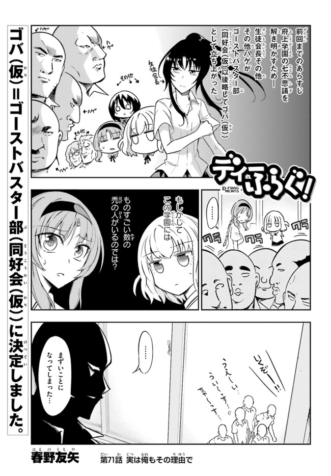 ディーふらぐ! 第71話 ディーふらぐ! 投稿者 admin - 2年 前に 幸せな読書漫画 ディーふらぐ! 第71話 , いいねと共有ボタンをクリックすることを忘れないでください. Manga ディーふらぐ! 常に更新されます 無料コミック Comic Top. 他のマンガの更新を読むことを忘れないでください。 マンガコレクションのリスト 無料コミック Comic Top マンガリストメニューにあります. お友達と共有しましょう! Facebook Twitter Pinterest Whatsapp 前のエピソード すべての章 次のエピソード リスト ページング Loading.. 前のエピソード すべての章 次のエピソード リスト ページング お友達と共有しましょう! Facebook Twitter Pinterest Whatsapp お気に入りに追加に続く 5 人 ディーふらぐ! 校内でも有名な不良の風間堅次はある日、偶然「ゲーム製作部」に足を踏み入れる。そこでは部室内で焚き火をする女子部員が……!? 属性持ち「ゲーム製作部」のメンバーが繰り広げる、ゲーム製作とはあんまり関係ないハイテンションギャグ!! 春野友矢(著者) アニメ化ギャグラブコメ美少女