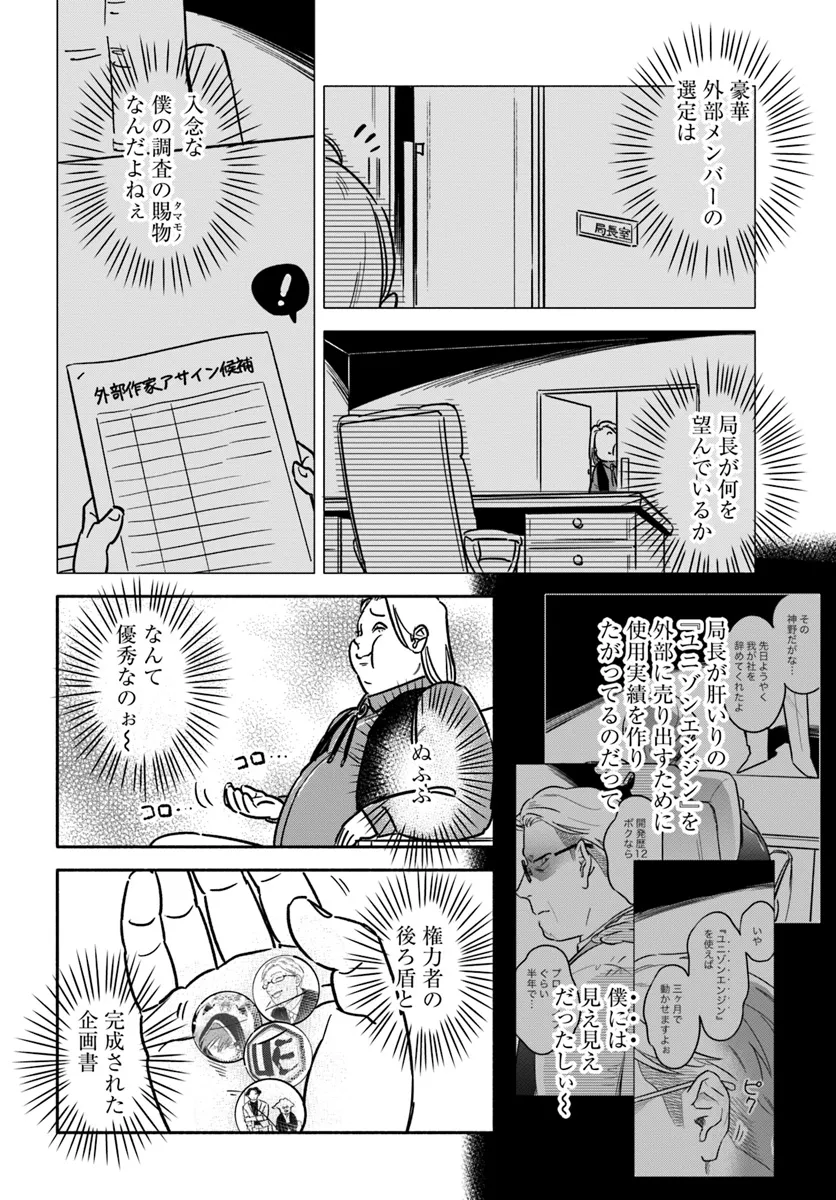 ゲーム開発会社の新人デザイナー彩は、上司に難癖をつけられ通称『追い出し部屋』へと異動させられる。同じく追い出されたクリエイターたちと新しいゲーム企画を作る神絵師の痛快ストーリー!