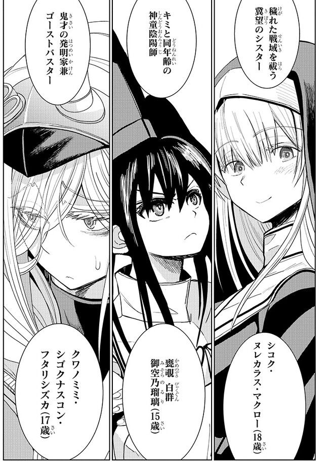 そんな荒れ狂った世界で、15歳にして一線級の活躍をするエクソシスト・マシロはある祓魔師部隊のリーダーをしていた。自分以外は全員年上の美女たち。シスターからシャーマン、ゴーストバスターまで勢ぞろい。羨ましすぎる職場ではあるのだが…