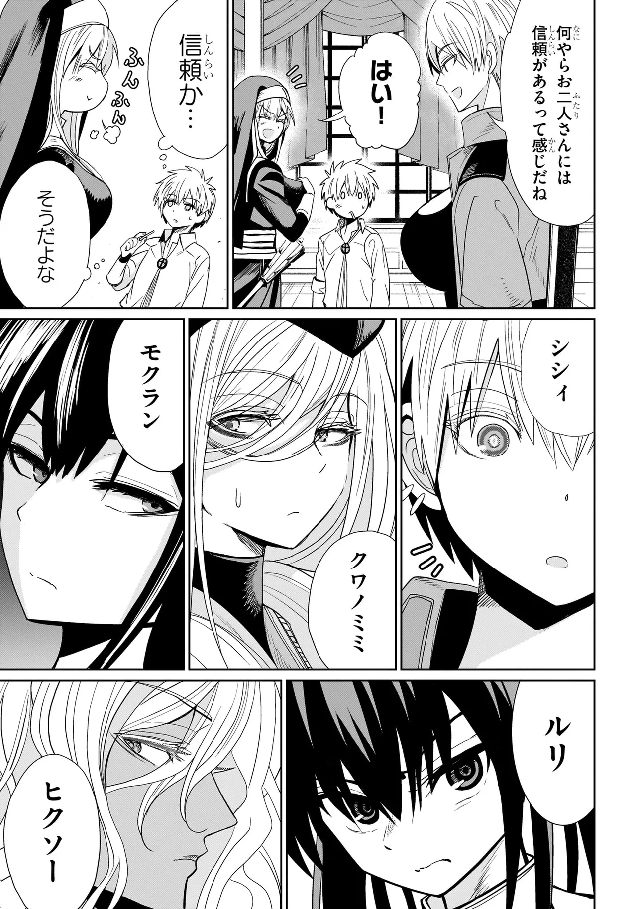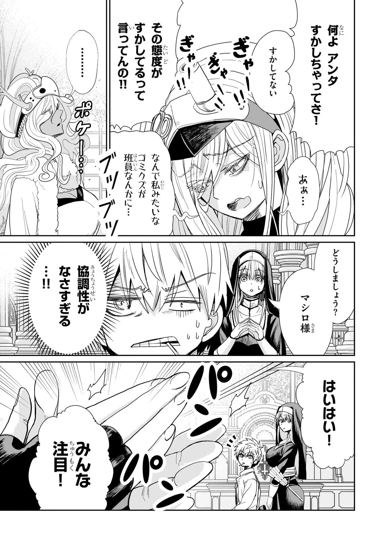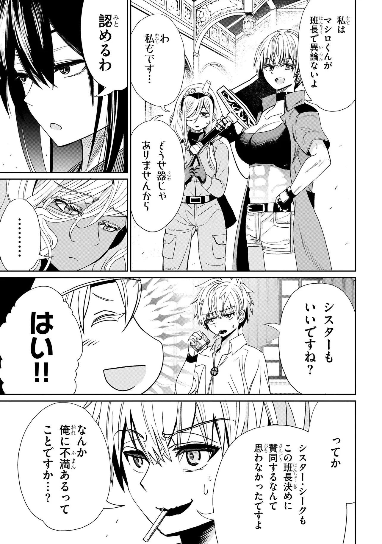 そんな荒れ狂った世界で、15歳にして一線級の活躍をするエクソシスト・マシロはある祓魔師部隊のリーダーをしていた。自分以外は全員年上の美女たち。シスターからシャーマン、ゴーストバスターまで勢ぞろい。羨ましすぎる職場ではあるのだが…
