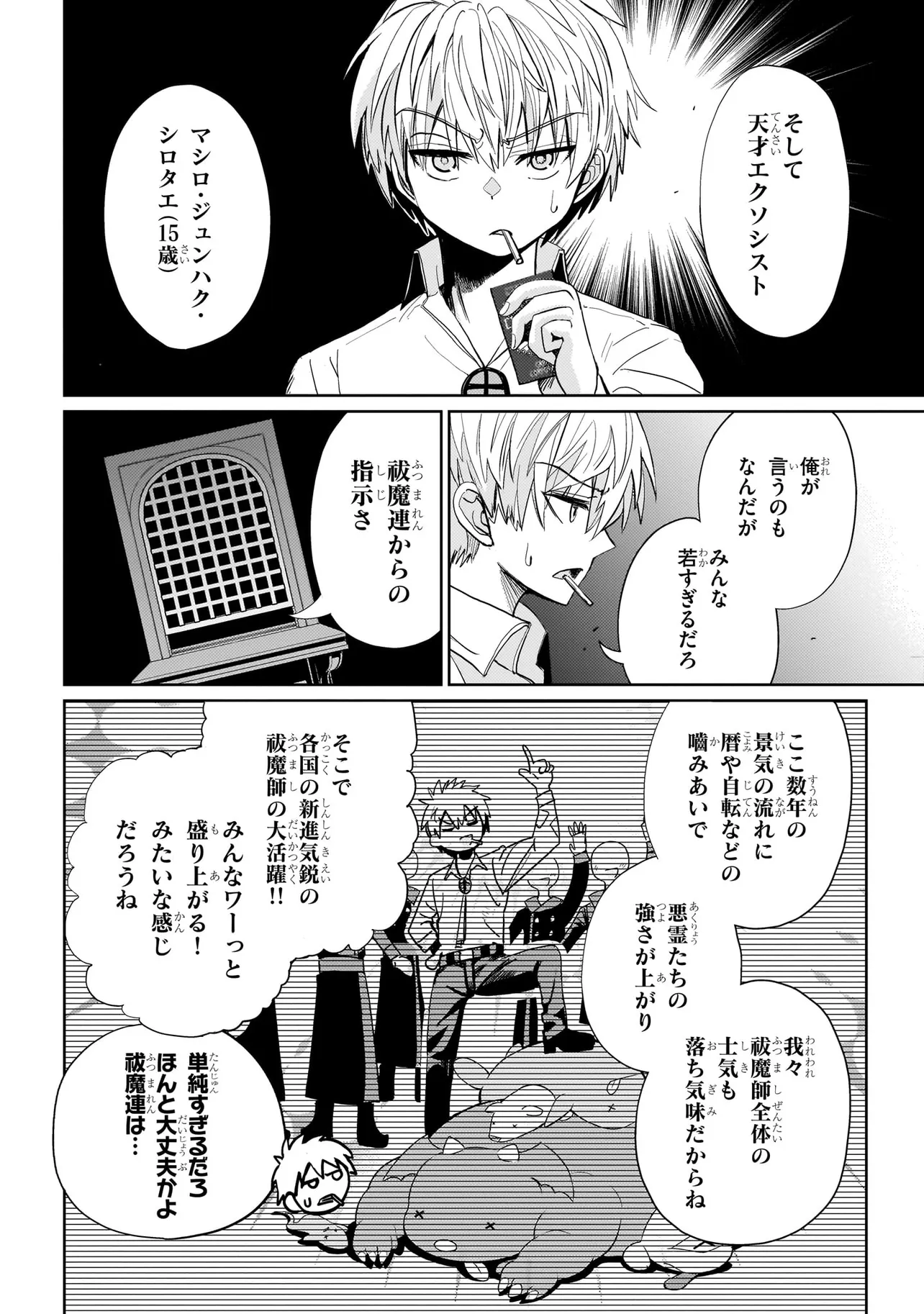 悪霊や妖怪が社会問題になる世界。「エクソシスト」と呼ばれる祓魔師たちは日夜バケモノ退治に奮闘し世界平和に貢献していた。
