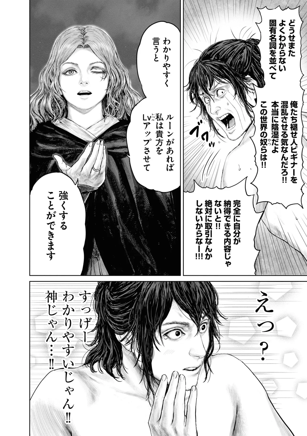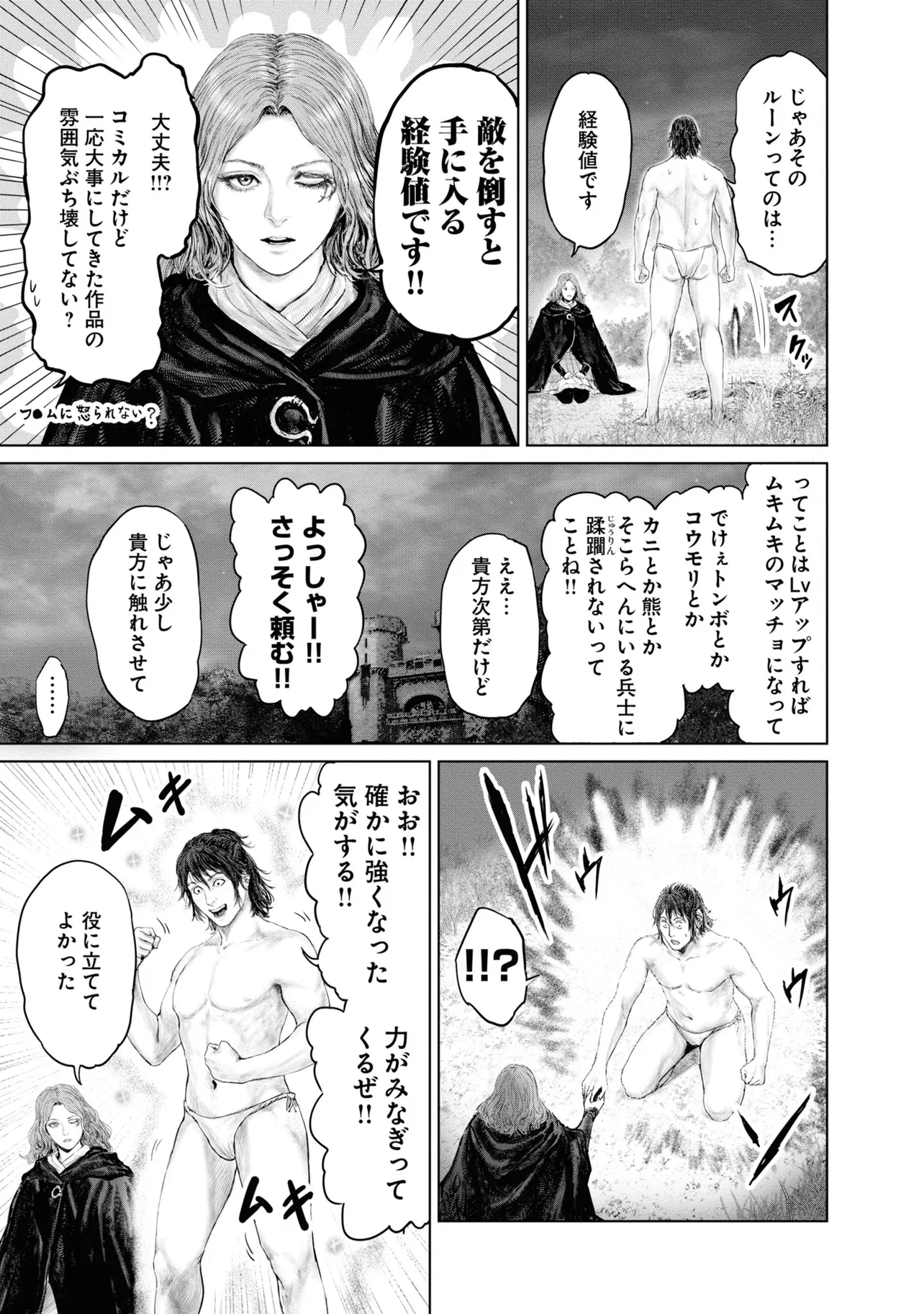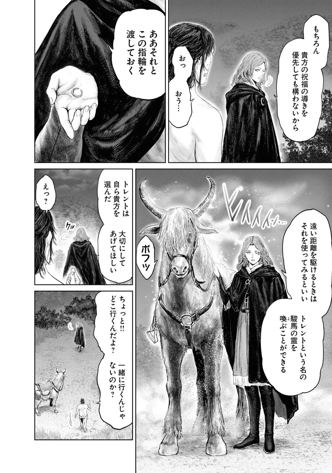 素寒貧で狭間の地・リムグレイブへ放り出された褪せ人・褪夫(あせお)。狭間の地の過酷さに心が折れかけた褪夫は、謎の少女・メリナに取引を持ちかけられ、祝福の導きに従って黄金樹を目指すことに。褪夫の行く手には次々に個性豊かすぎる人物たちが待ち受ける。フーテンのパッチ、半狼のブライブ、忌み鬼マルギット、接ぎ木のゴドリック、そして魔女ラニ……。命からがらリムグレイブを旅する褪夫は、当面の目的地・ストームヴィル城にたどり着けるのか--!?