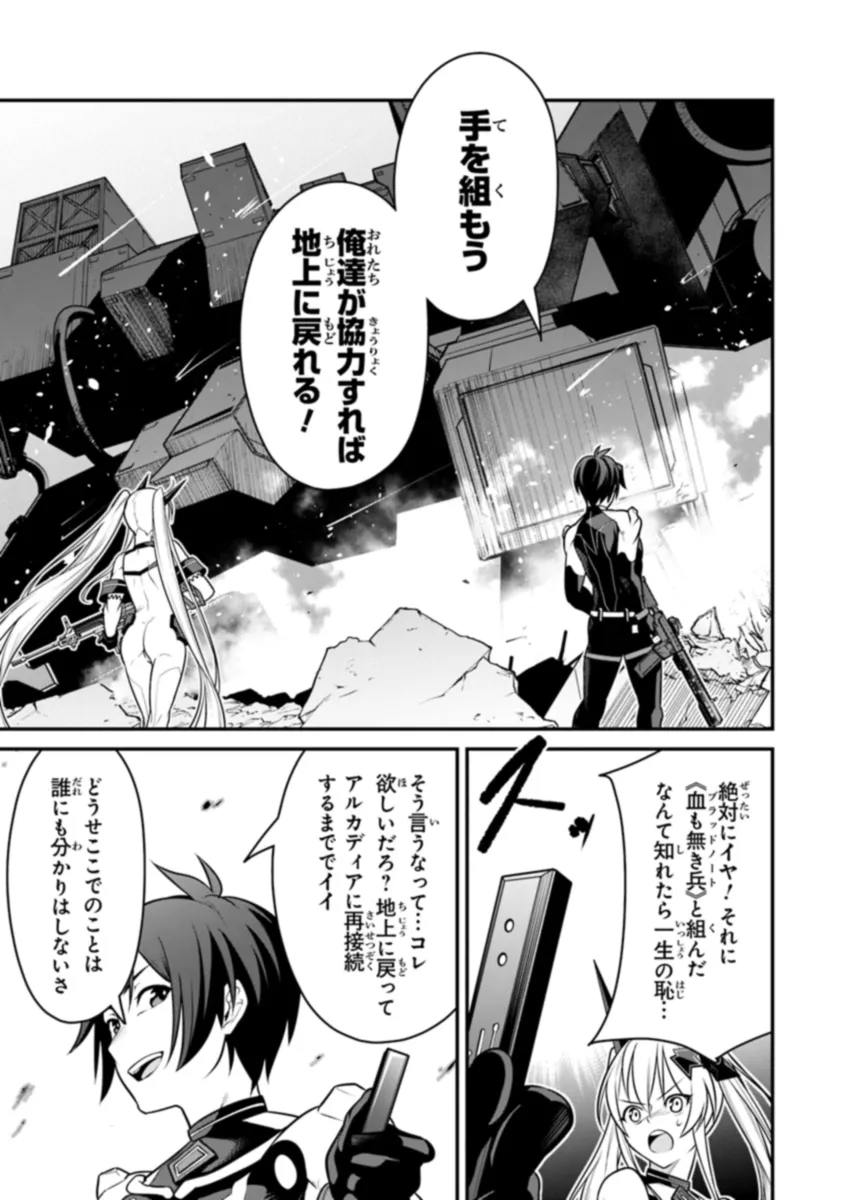 予期せぬ戦闘と地盤崩落により、秋人は因縁の宿敵,、ローレリア連邦軍のエリート少女フィリア・ロードレインとともに《アルカディア》に接続不能な地下深くで孤立することになる──!!