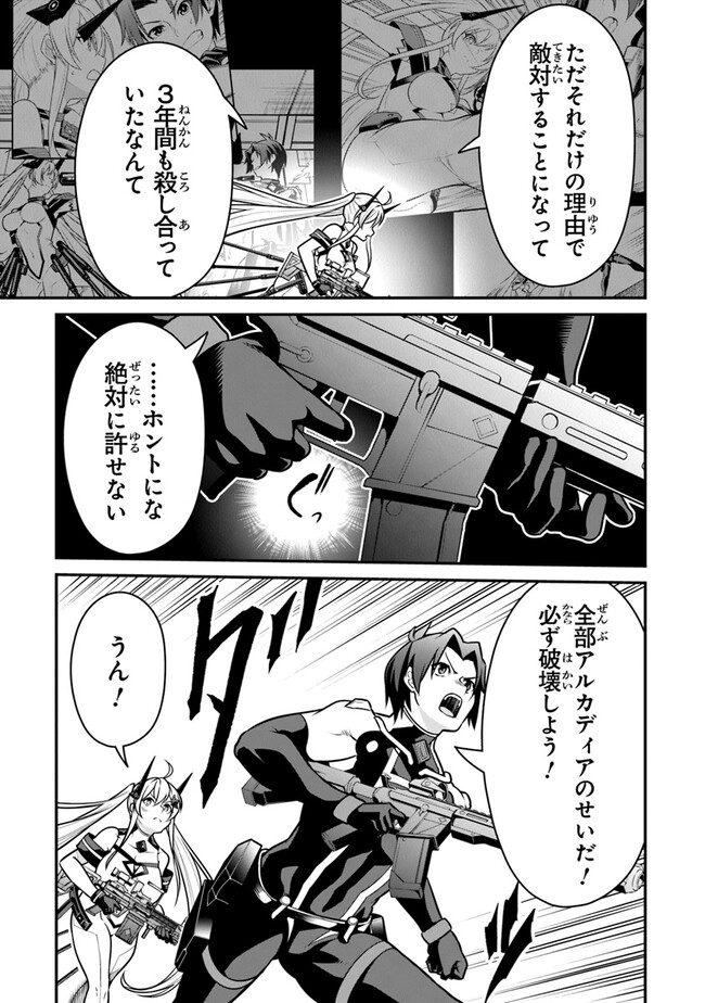 記憶のデータ化と高度なクローン技術が結集した究極の生命再生システム《アルカディア》。 その恩恵で《死》を超越した少年少女の兵士たちは、戦場で日々戦績を競い合い《死に続ける》。 そんな中、エルメア合衆国軍少尉・一之瀬秋人が率いる小隊は戦績不振のペナルティとして、全滅必至の機密情報回収作戦へと投じられる。 予期せぬ戦闘と地盤崩落により、秋人は因縁の宿敵,、ローレリア連邦軍のエリート少女フィリア・ロードレインとともに《アルカディア》に接続不能な地下深くで孤立することになる──!! 第28回電撃小説大賞《金賞》受賞作、堂々のコミカライズ!!!