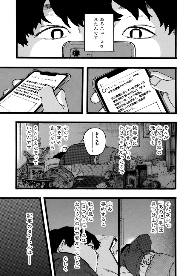 N C N 投稿者 admin - 2年 前に 幸せな読書漫画 N C , いいねと共有ボタンをクリックすることを忘れないでください. Manga N 常に更新されます 無料コミック Comic Top. 他のマンガの更新を読むことを忘れないでください。 マンガコレクションのリスト 無料コミック Comic Top マンガリストメニューにあります. お友達と共有しましょう! Facebook Twitter Pinterest Whatsapp 前のエピソード すべての章 次のエピソード リスト ページング Loading.. 前のエピソード すべての章 次のエピソード リスト ページング お友達と共有しましょう! Facebook Twitter Pinterest Whatsapp お気に入りに追加に続く 1 人 N ぼくの視界も、心も、すべて Nに埋め尽くされていく。 くるむあくむ(原作)にことがめ(作画) オカルトサイコサスペンスゾクゾクしちゃうホラーホラー・オカルトミステリー妖怪宗教心霊怪異怪談都市伝説