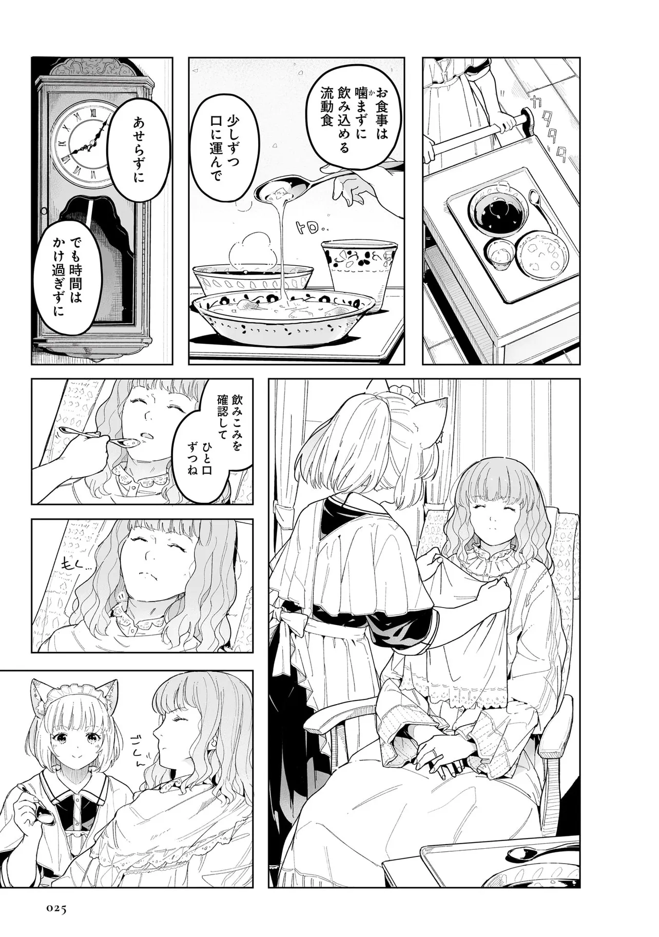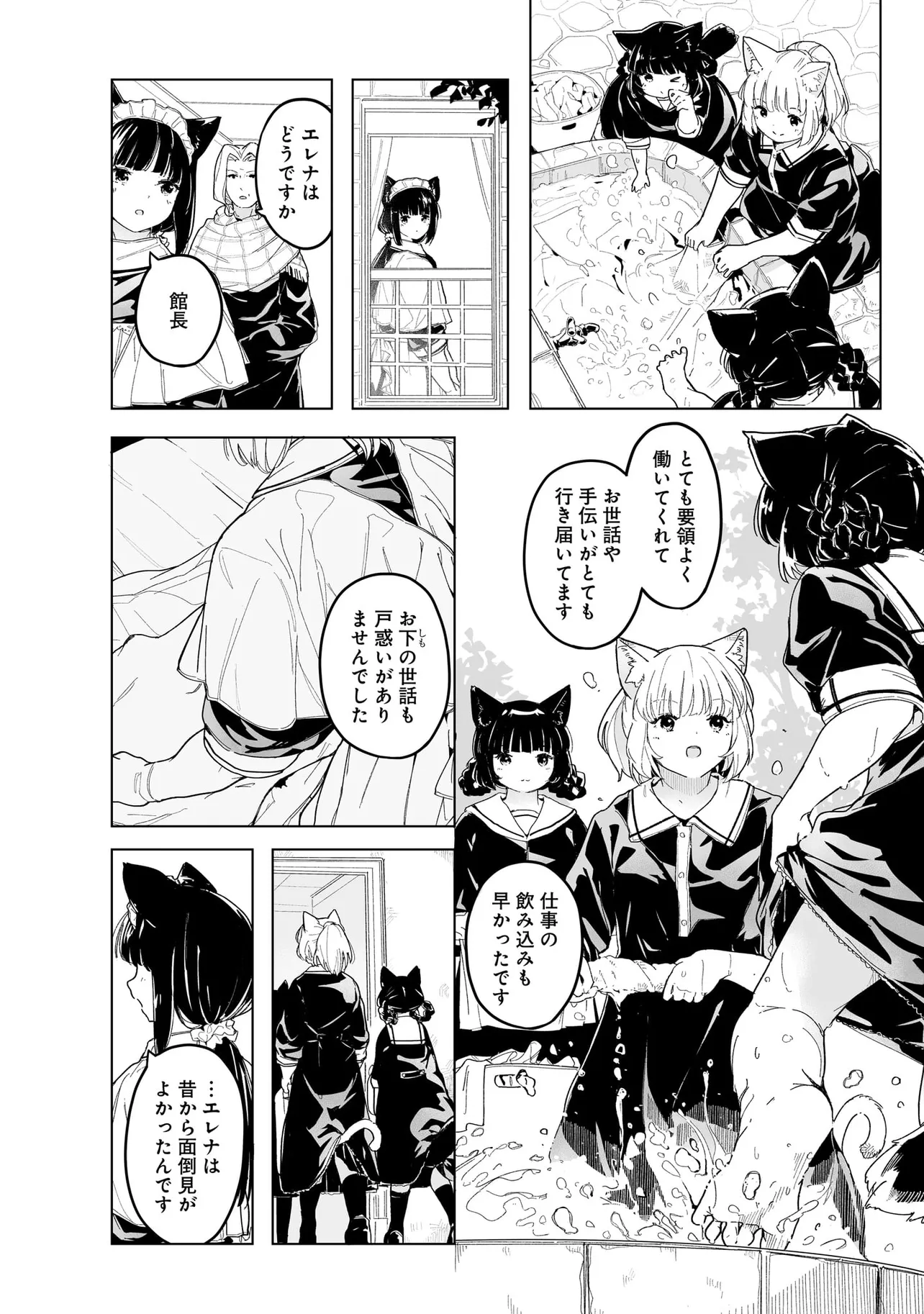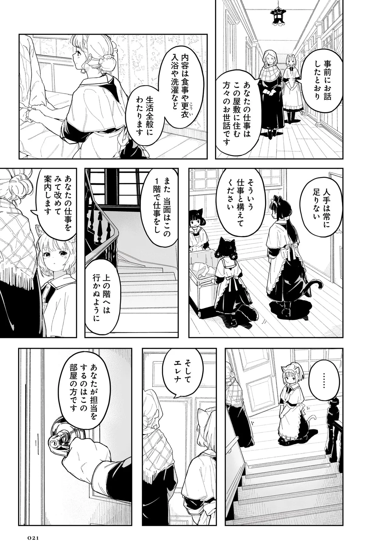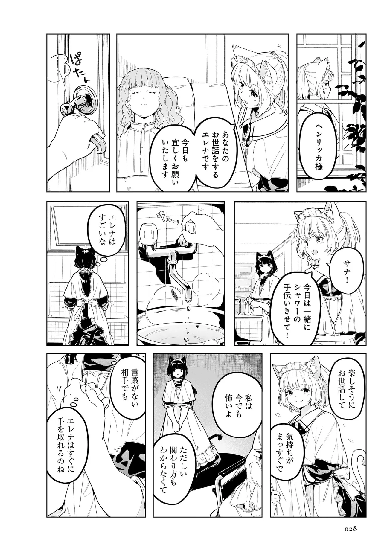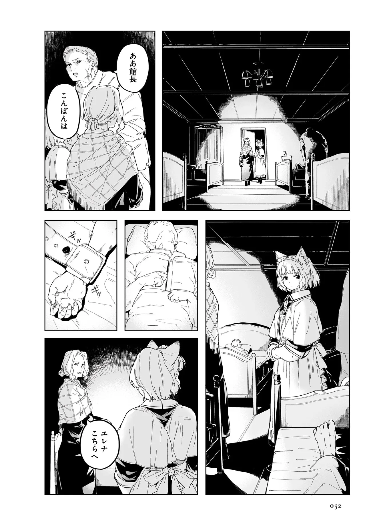 体を動かせない重病人やけが人が最終的に集められるお屋敷で働き始めることになった猫耳少女・エレナ。