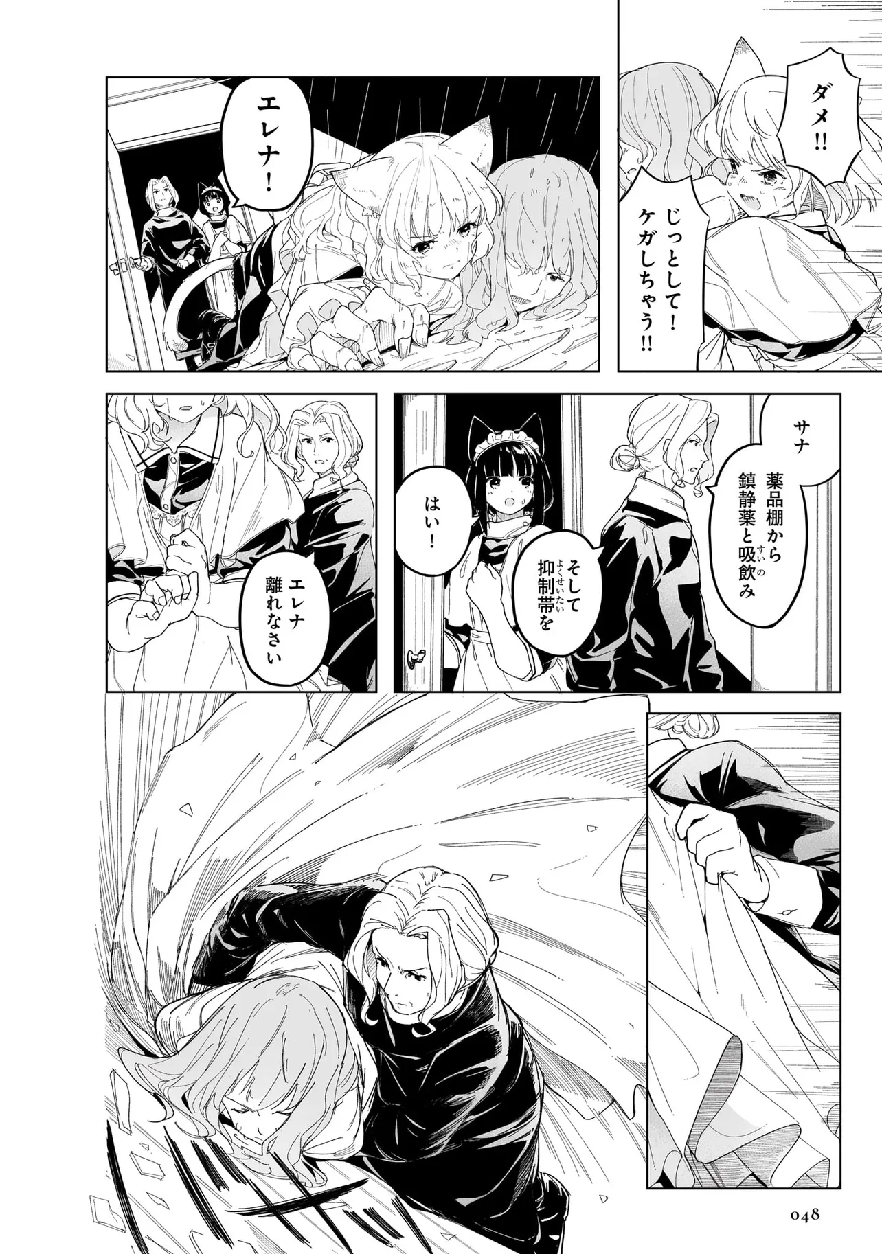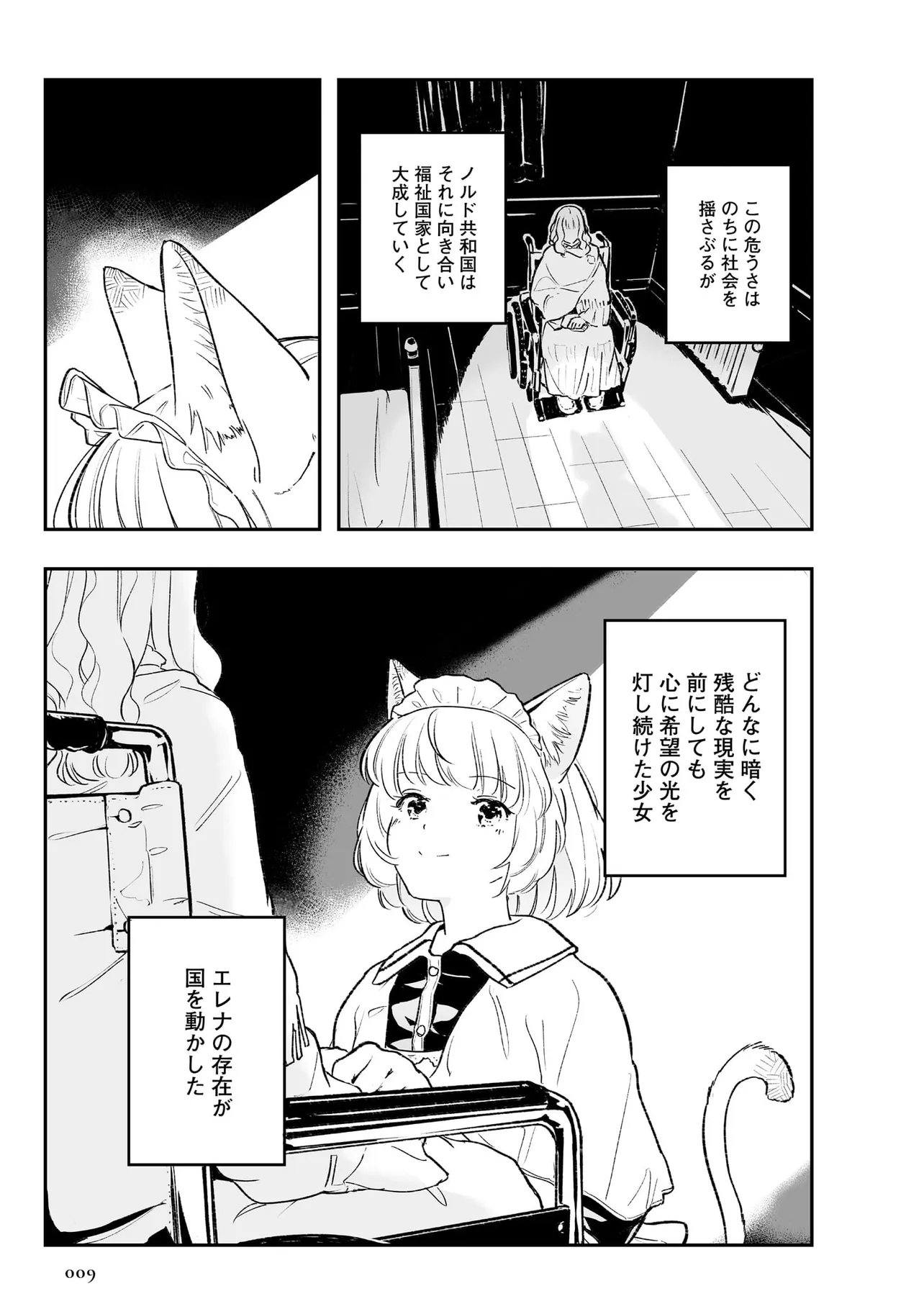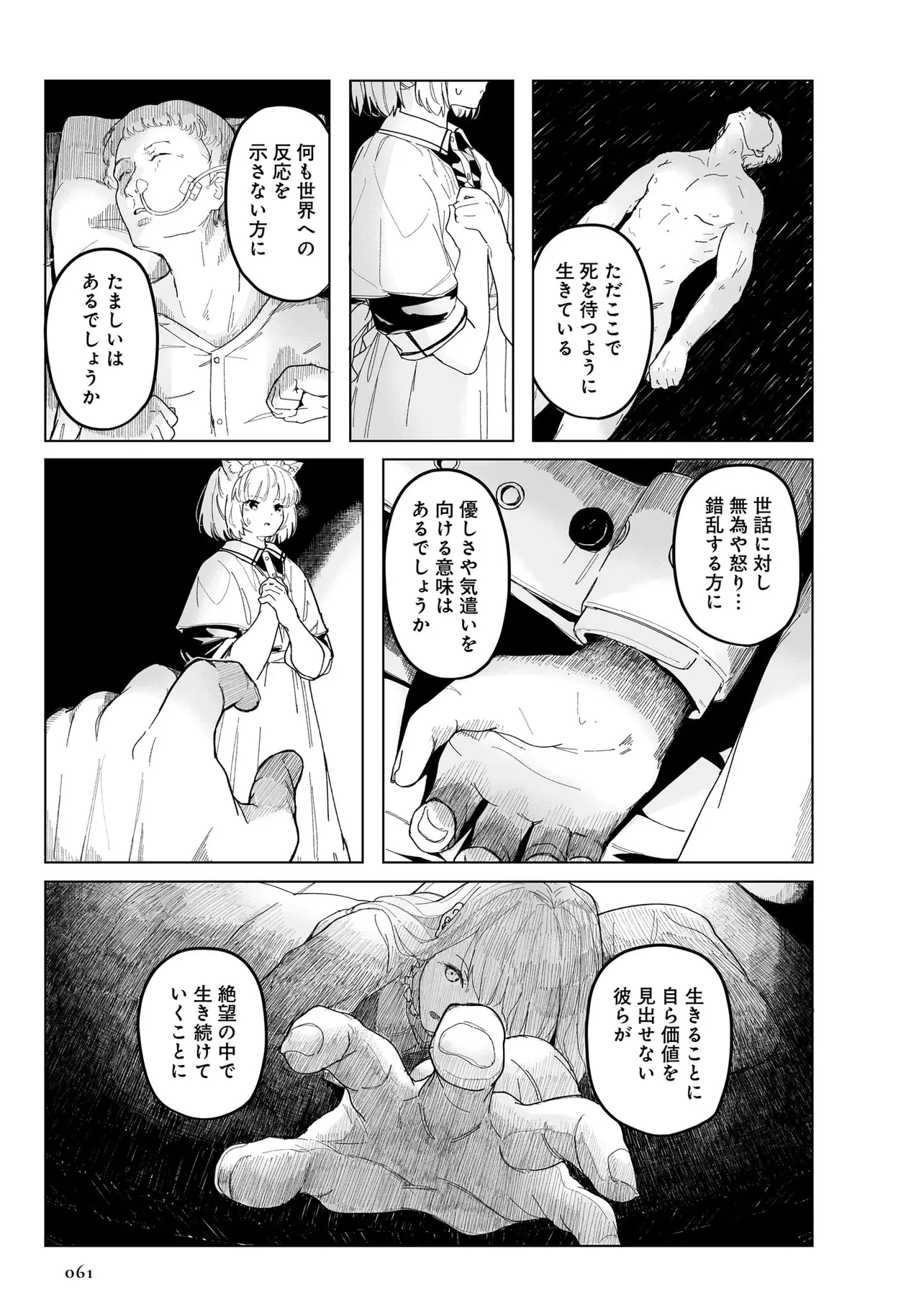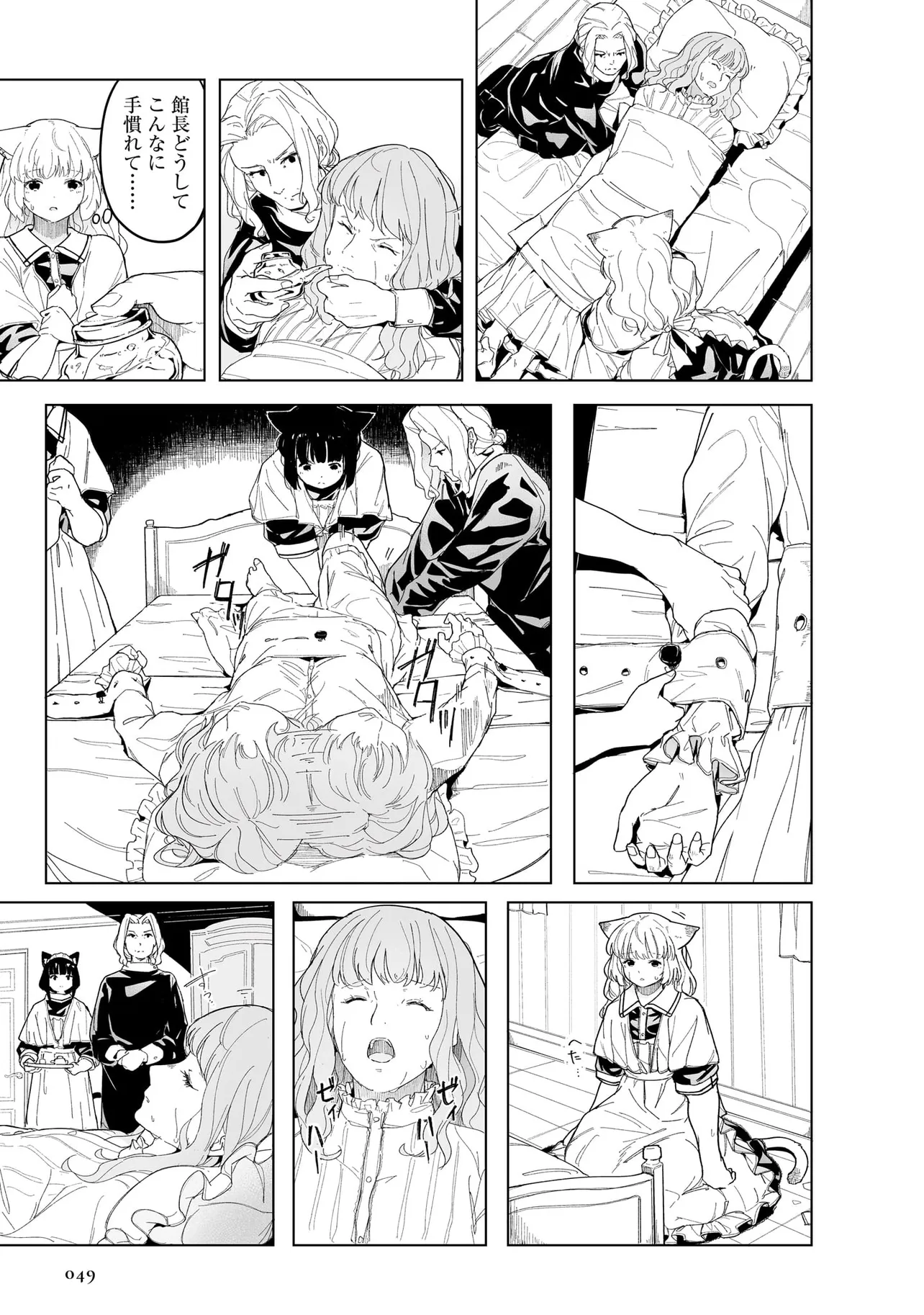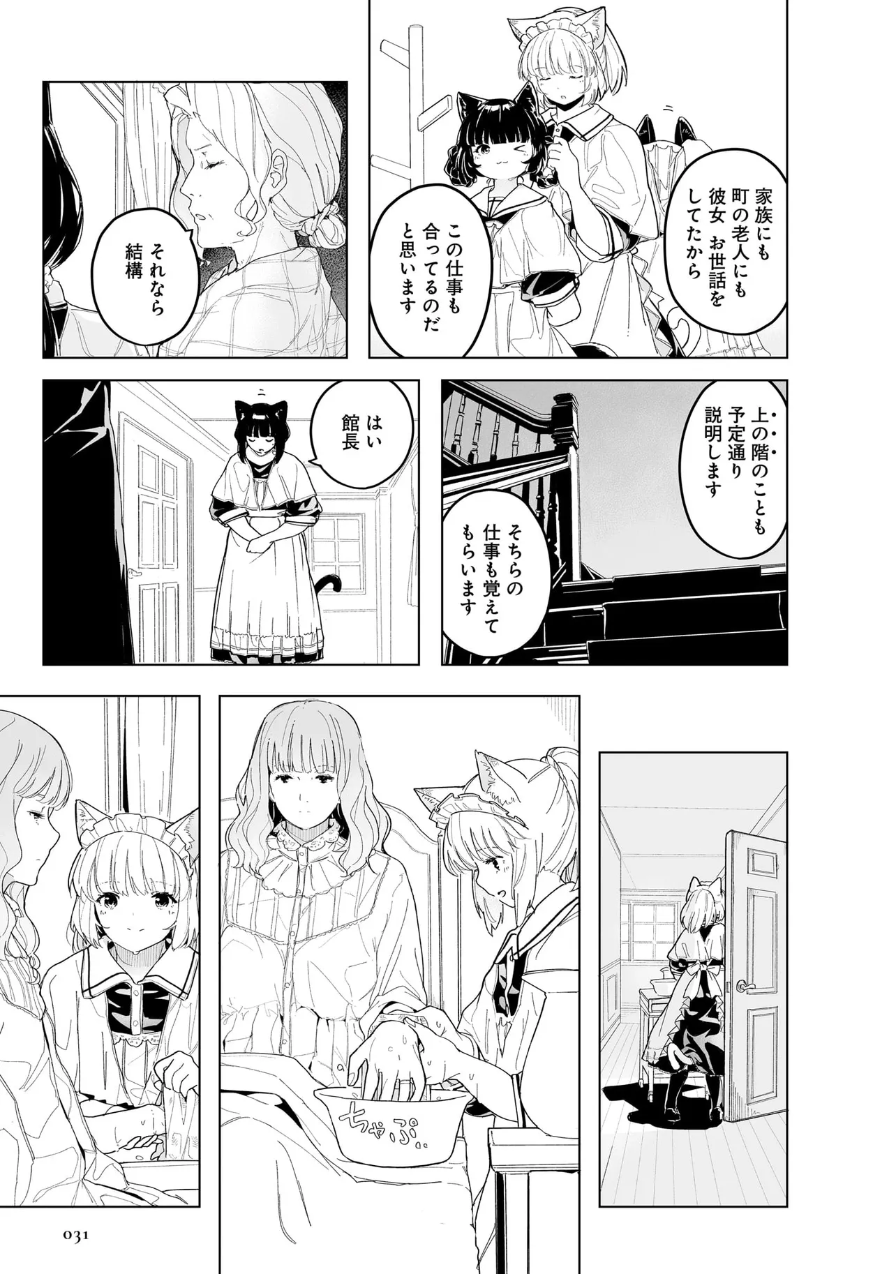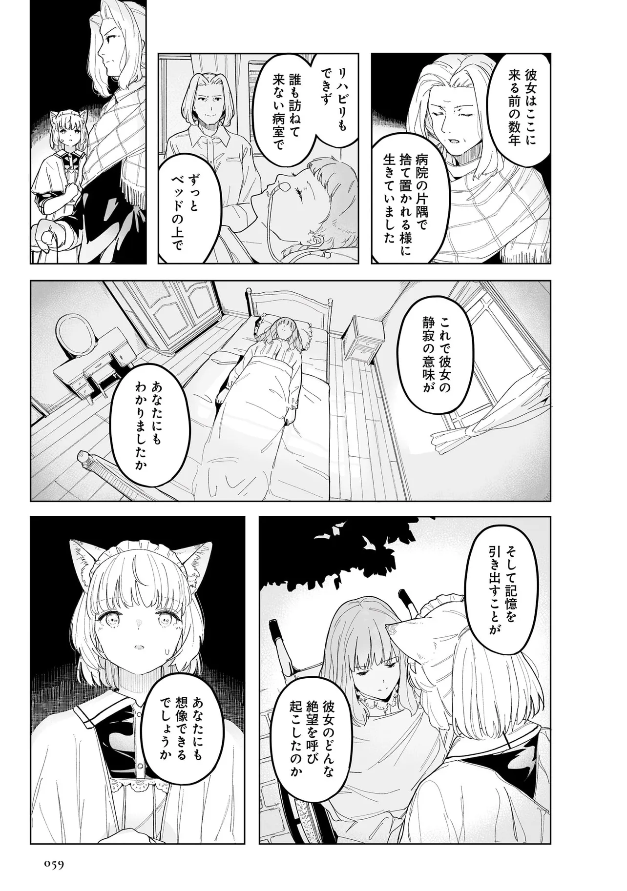 体を動かせない重病人やけが人が最終的に集められるお屋敷で働き始めることになった猫耳少女・エレナ。