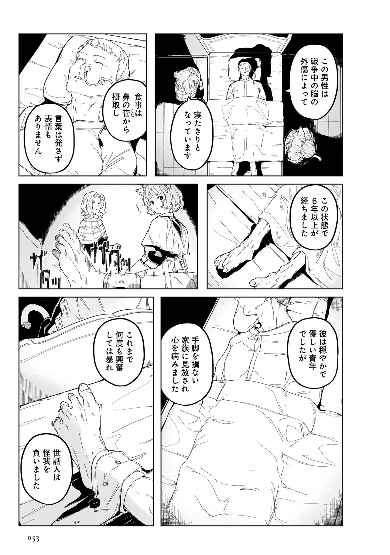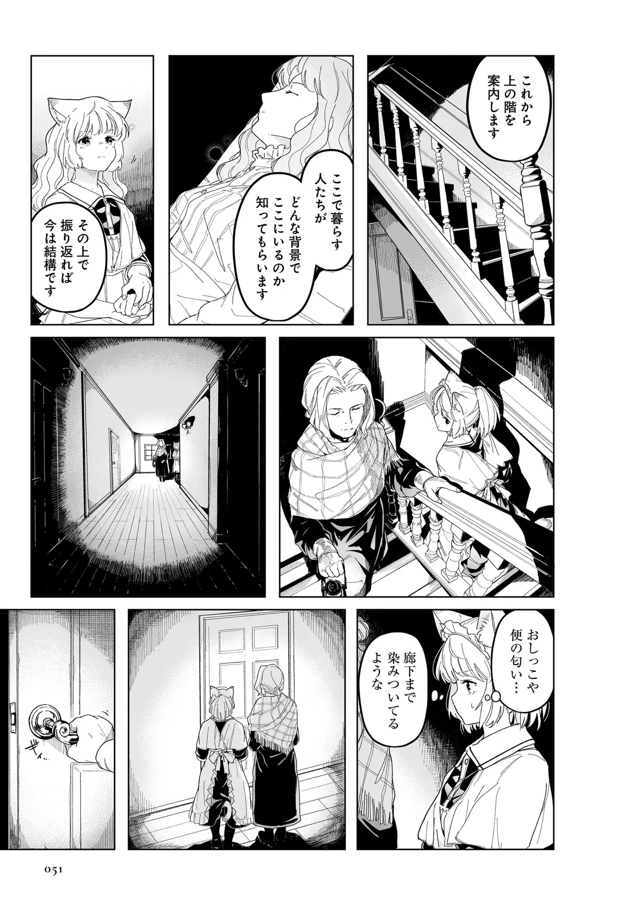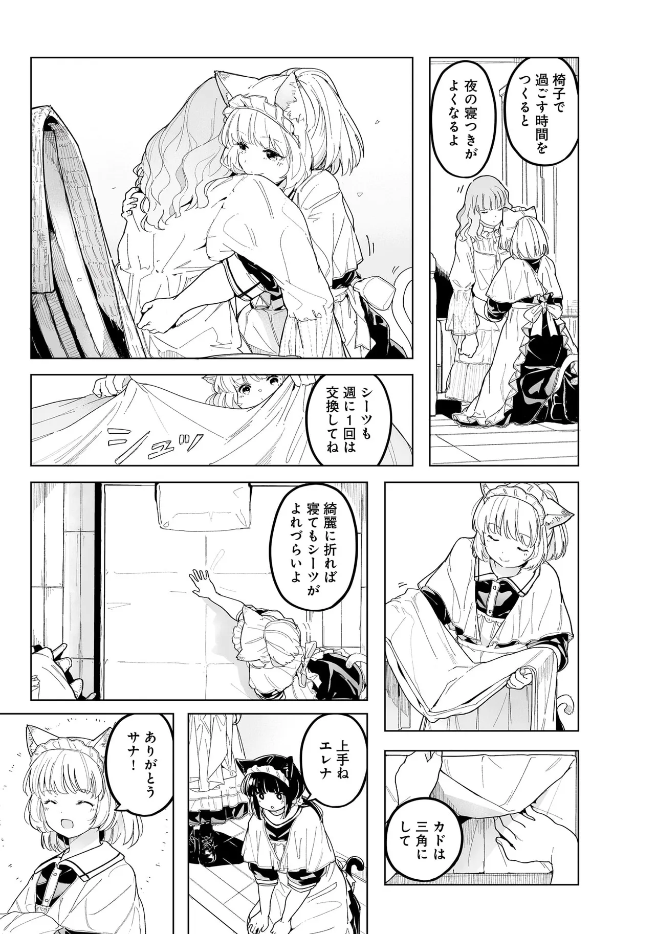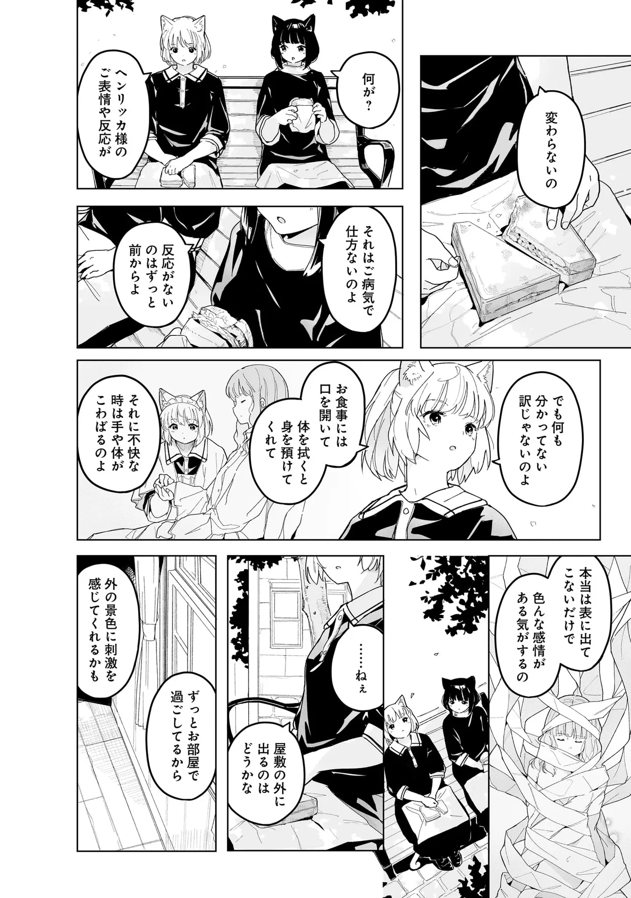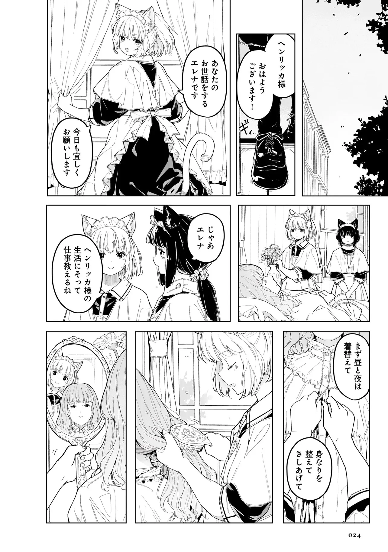 体を動かせない重病人やけが人が最終的に集められるお屋敷で働き始めることになった猫耳少女・エレナ。