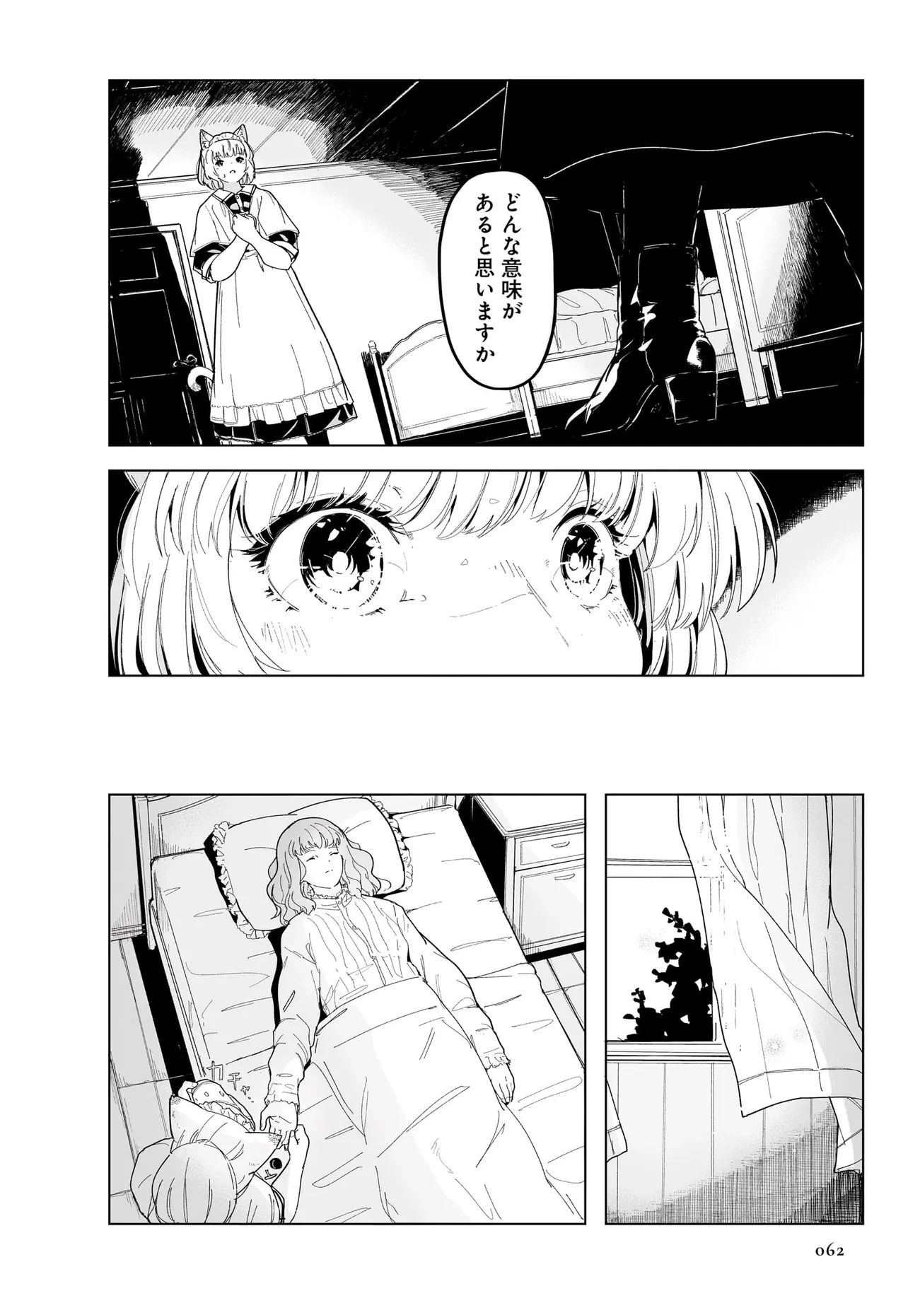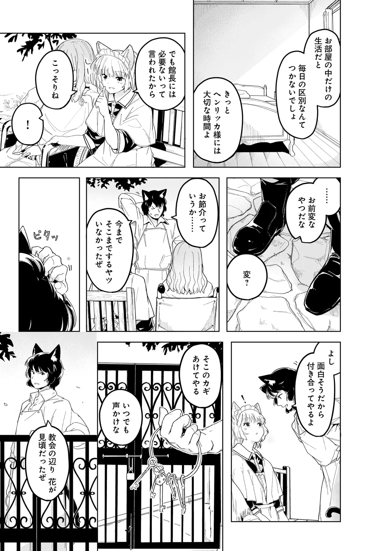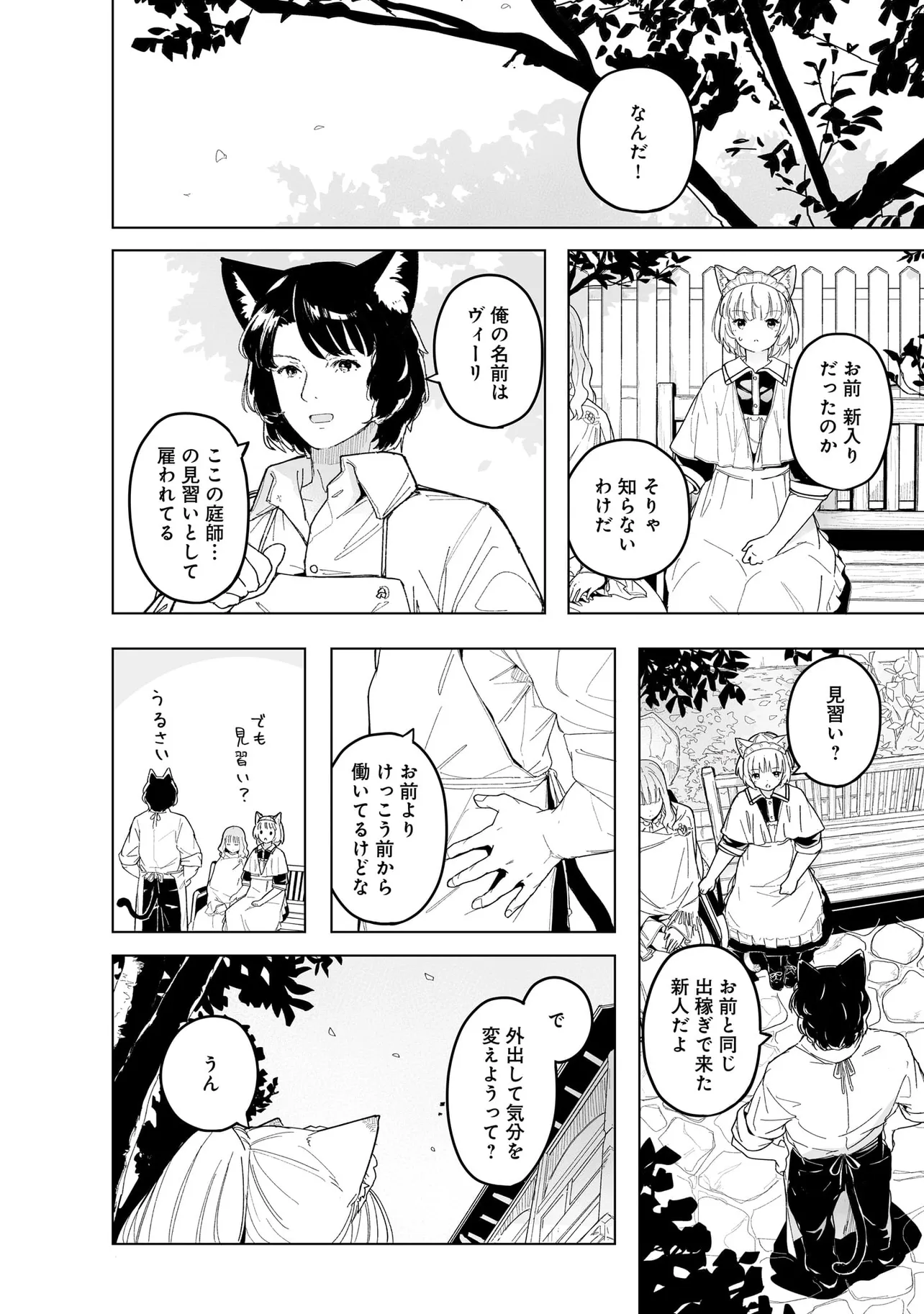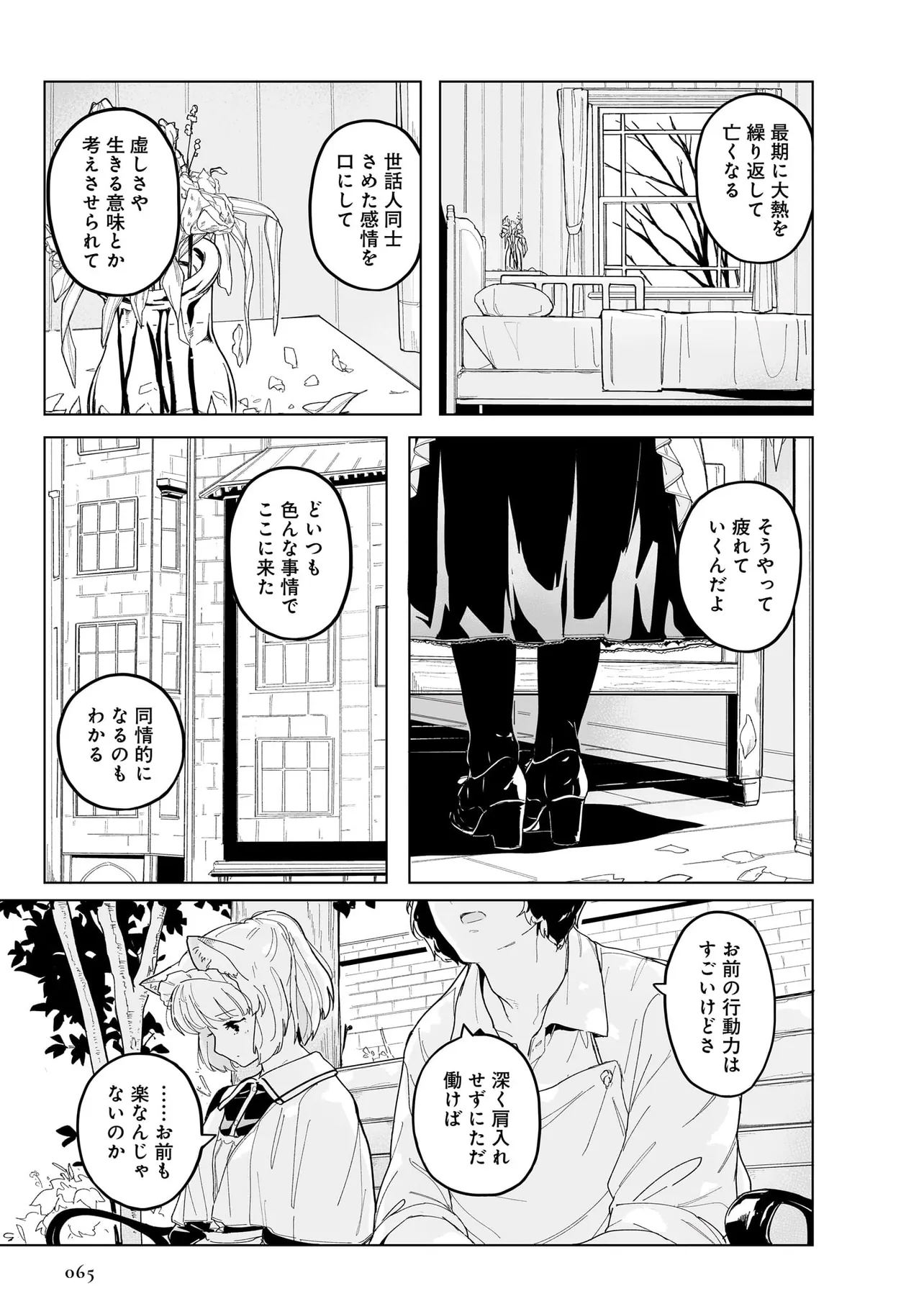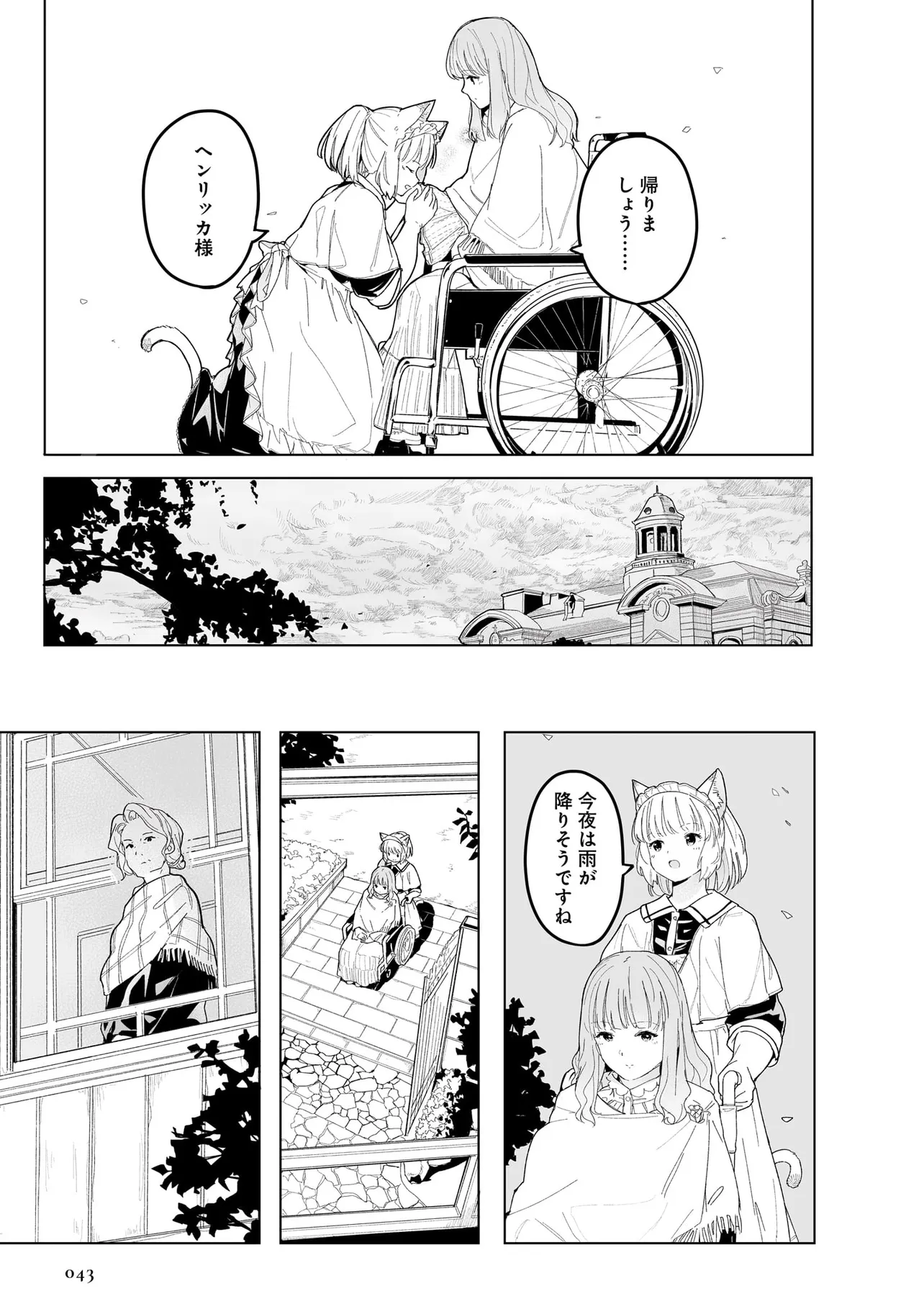 体を動かせない重病人やけが人が最終的に集められるお屋敷で働き始めることになった猫耳少女・エレナ。