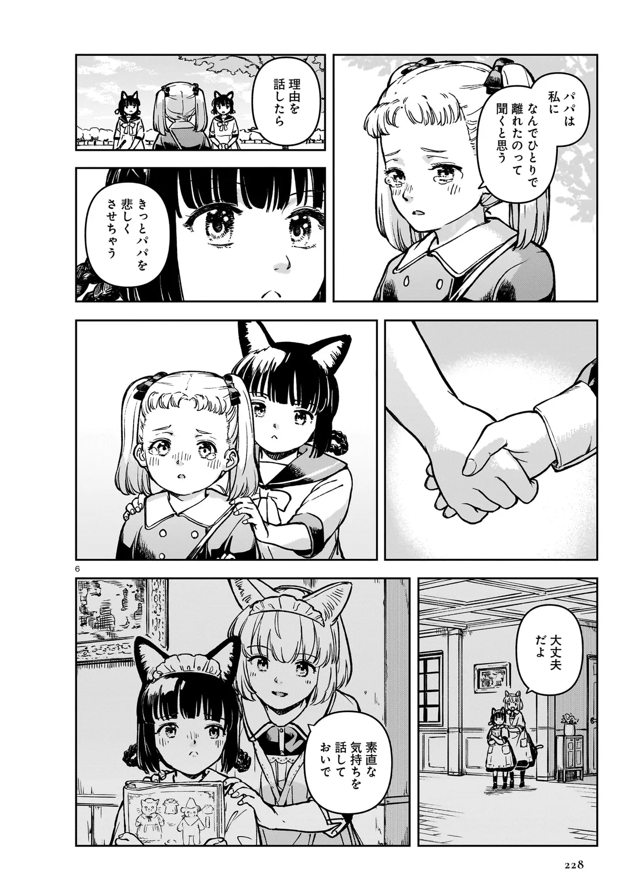 世界中を巻き込んだ戦争から数年。 大国の利害関係に翻弄された、北方の小国はいまだ戦争に国土と国民が傷ついていた。 懸命に復興を目指す国家において、取り残される人々がいた。 国家の為に働くことのできない病人やけが人たちは社会から疎外されるしかなかった。 体を動かせない重病人やけが人が最終的に集められるお屋敷で働き始めることになった猫耳少女・エレナ。 エレナを待ち受けるのは命の価値が揺らぐ厳しい現実。 それでも生きることの尊さと生命の可能性を信じるエレナの想いの熱は、いずれ周りの人々に、そして国中に伝わり大きなものになる。 深い闇のように先の見えない現実における大きな灯となり、やがて国家の福祉を変える少女の物語。