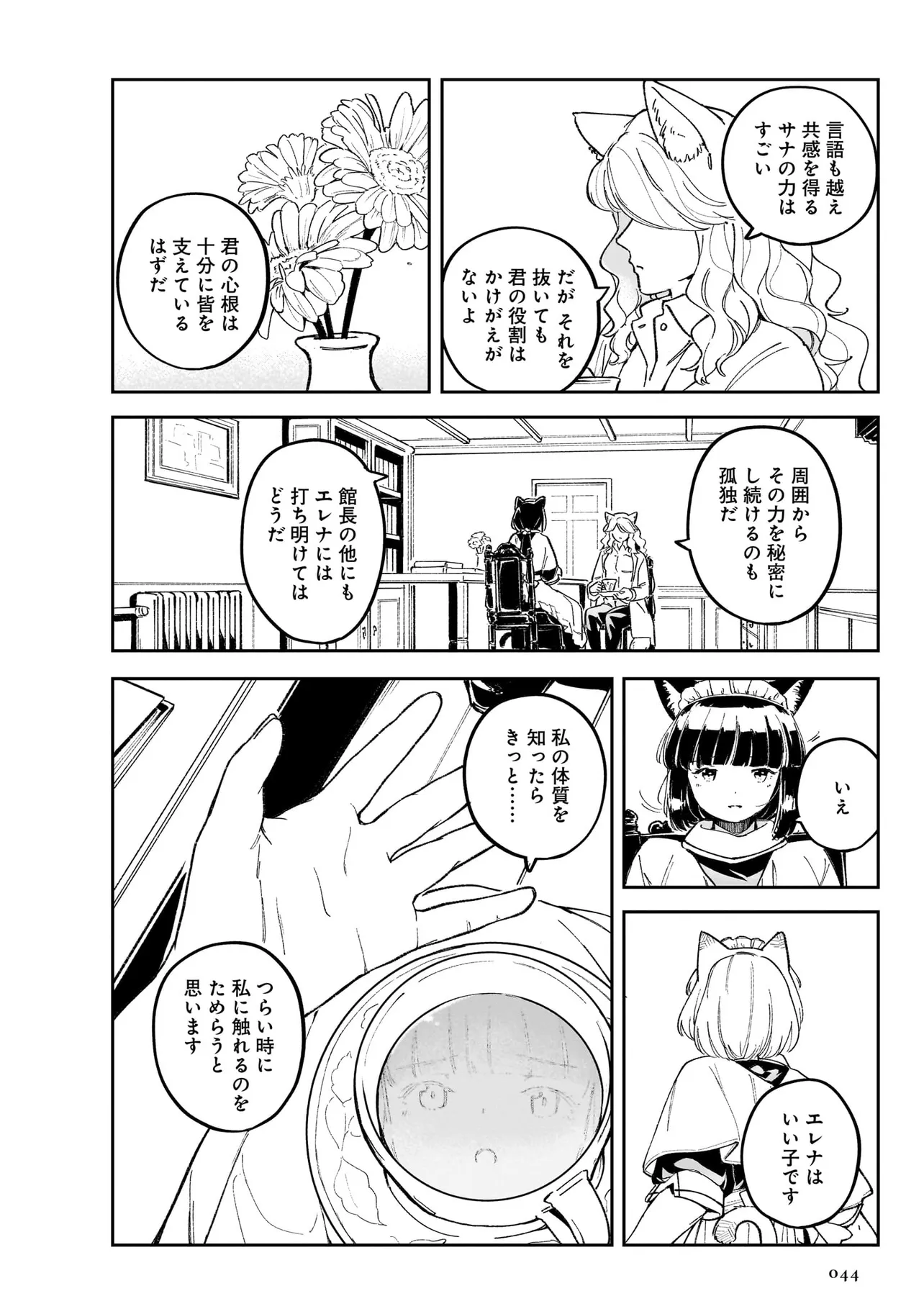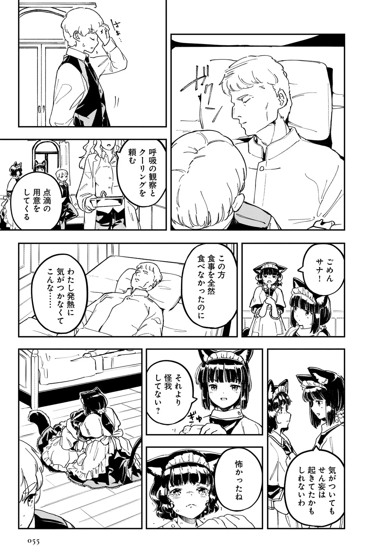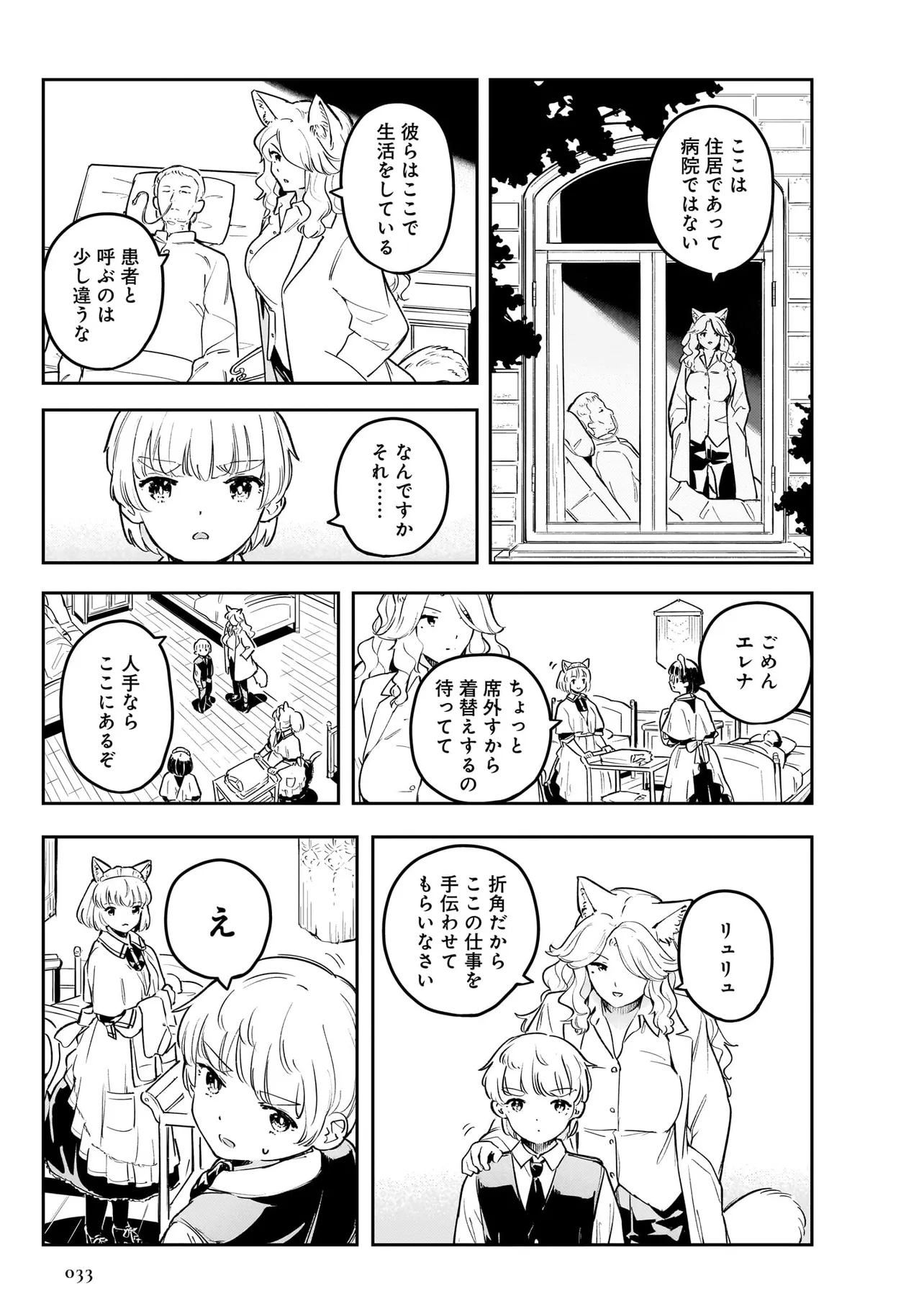 世界中を巻き込んだ戦争から数年。 大国の利害関係に翻弄された、北方の小国はいまだ戦争に国土と国民が傷ついていた。 懸命に復興を目指す国家において、取り残される人々がいた。 国家の為に働くことのできない病人やけが人たちは社会から疎外されるしかなかった。 体を動かせない重病人やけが人が最終的に集められるお屋敷で働き始めることになった猫耳少女・エレナ。 エレナを待ち受けるのは命の価値が揺らぐ厳しい現実。 それでも生きることの尊さと生命の可能性を信じるエレナの想いの熱は、いずれ周りの人々に、そして国中に伝わり大きなものになる。 深い闇のように先の見えない現実における大きな灯となり、やがて国家の福祉を変える少女の物語。