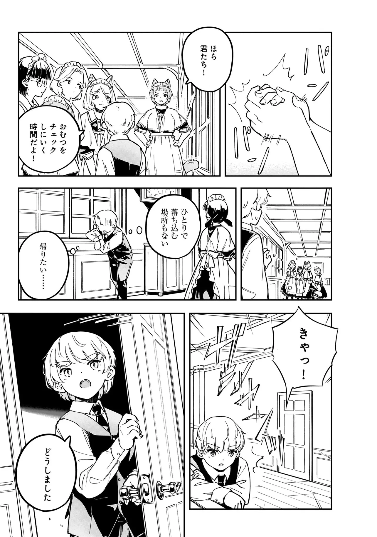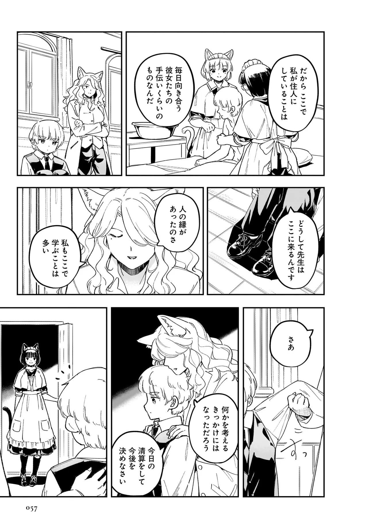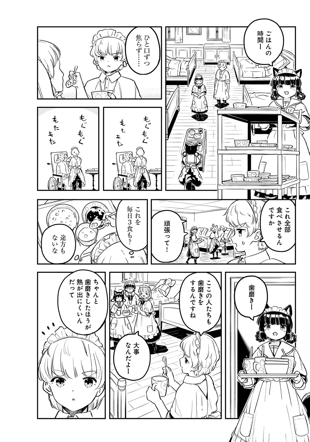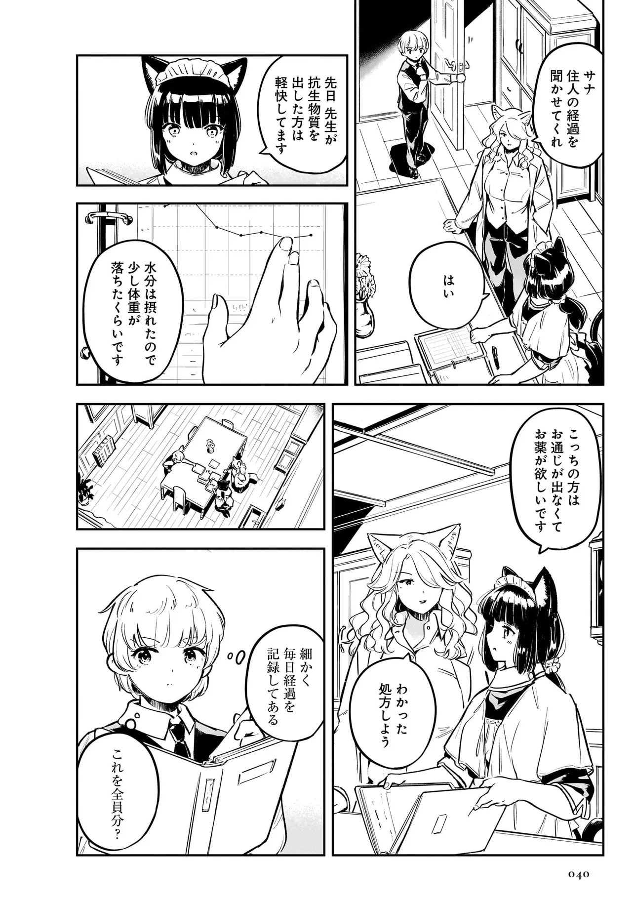 世界中を巻き込んだ戦争から数年。 大国の利害関係に翻弄された、北方の小国はいまだ戦争に国土と国民が傷ついていた。 懸命に復興を目指す国家において、取り残される人々がいた。 国家の為に働くことのできない病人やけが人たちは社会から疎外されるしかなかった。 体を動かせない重病人やけが人が最終的に集められるお屋敷で働き始めることになった猫耳少女・エレナ。 エレナを待ち受けるのは命の価値が揺らぐ厳しい現実。 それでも生きることの尊さと生命の可能性を信じるエレナの想いの熱は、いずれ周りの人々に、そして国中に伝わり大きなものになる。 深い闇のように先の見えない現実における大きな灯となり、やがて国家の福祉を変える少女の物語。