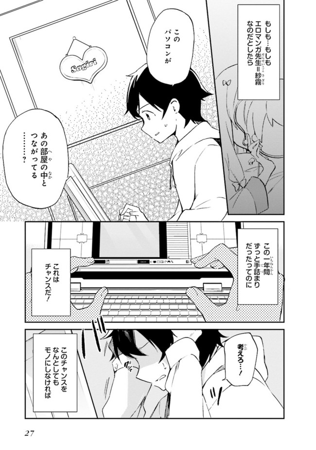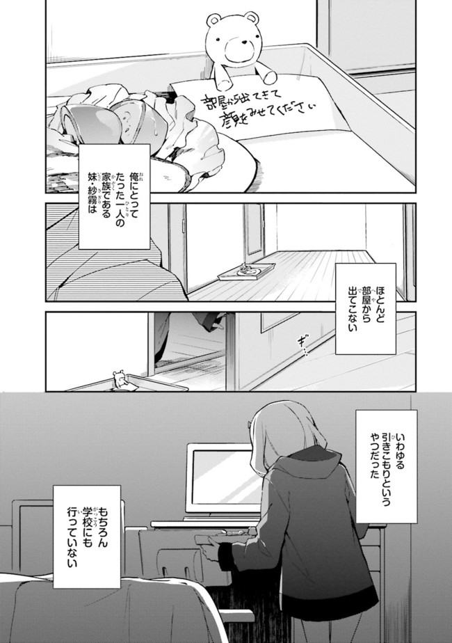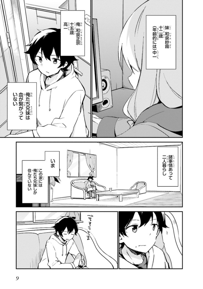高校生兼ラノベ作家の和泉マサムネには、引きこもりの妹・和泉紗霧がいる。まったく部屋から出てこない妹を心配しつつもマサムネは自立のため、作家業に勤しんでいた。相棒の担当イラストレーター『エロマンガ先生』に感謝をしながら…。そんなある日、衝撃の事実が。『エロマンガ先生』の正体は妹の紗霧だった!?