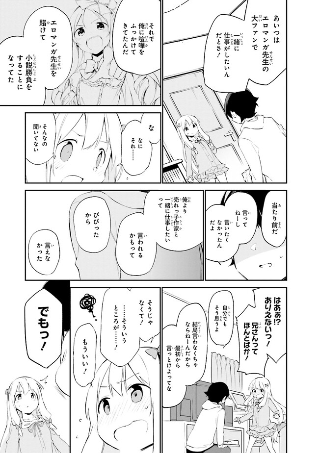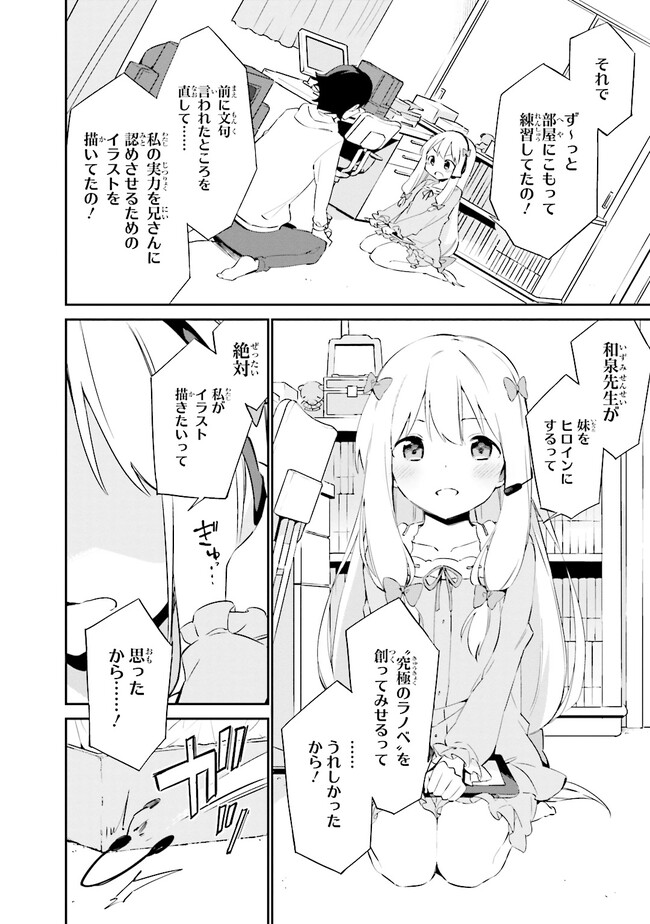 高校生兼ラノベ作家の和泉マサムネには、引きこもりの妹・和泉紗霧がいる。まったく部屋から出てこない妹を心配しつつもマサムネは自立のため、作家業に勤しんでいた。相棒の担当イラストレーター『エロマンガ先生』に感謝をしながら…。そんなある日、衝撃の事実が。『エロマンガ先生』の正体は妹の紗霧だった!?