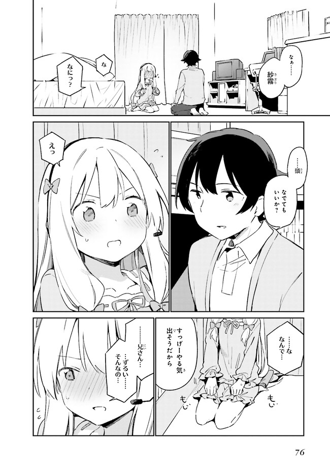 高校生兼ラノベ作家の和泉マサムネには、引きこもりの妹・和泉紗霧がいる。まったく部屋から出てこない妹を心配しつつもマサムネは自立のため、作家業に勤しんでいた。相棒の担当イラストレーター『エロマンガ先生』に感謝をしながら…。そんなある日、衝撃の事実が。『エロマンガ先生』の正体は妹の紗霧だった!?