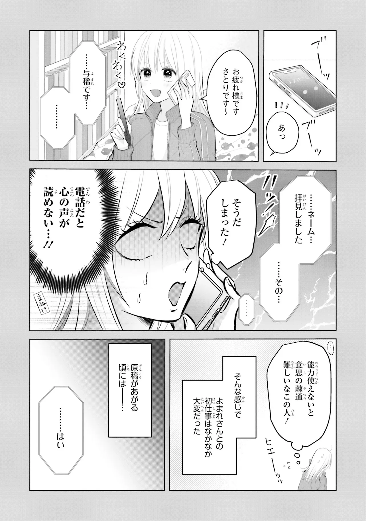 ある日交通事故に遭い、「他人の心の声」が聞こえる体質になってしまった真心。 最初はそんな体質を楽しんでいたが、段々と疲れてしまい、 人と会わなくてもいい仕事=漫画家(エロあり)に転身する。 もう恋とも無縁……そんな風に想っていた真心だったが、突然の担当替えにより現れた、無表情・コワモテ編集者・与稀から聞こえてきたのは……!? まっすぐな想いにキュン死!? 心読めちゃうエロ漫画家と、ウブすぎる編集のドタバタラブコメディ☆