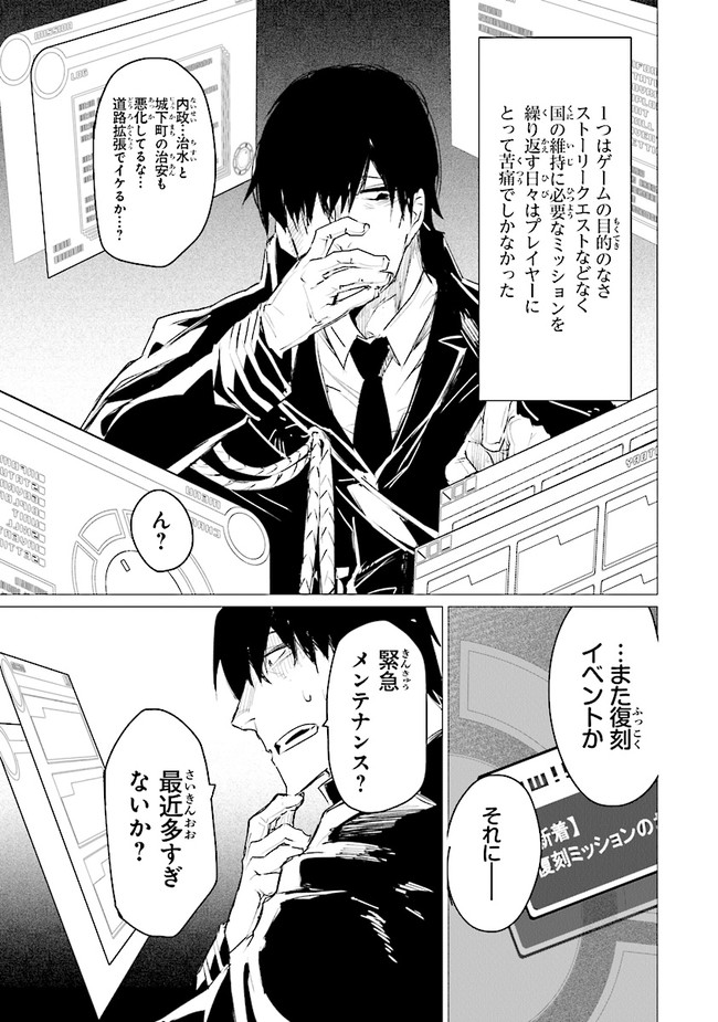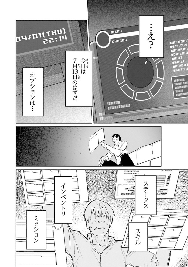 VRとの相性もあり、いまいち人気のないこのゲームで「エステルドバロニア」の王「カロン」として君臨する主人公は、ある日突然国ごと異世界に転移してしまう。そこではこれまで無機質だった魔物たちがいきいきと動き、カロンを王と仰いだが……国に人間は自分ただ一人! 無能さを晒せば魔物に殺されてしまうかもしれない!?