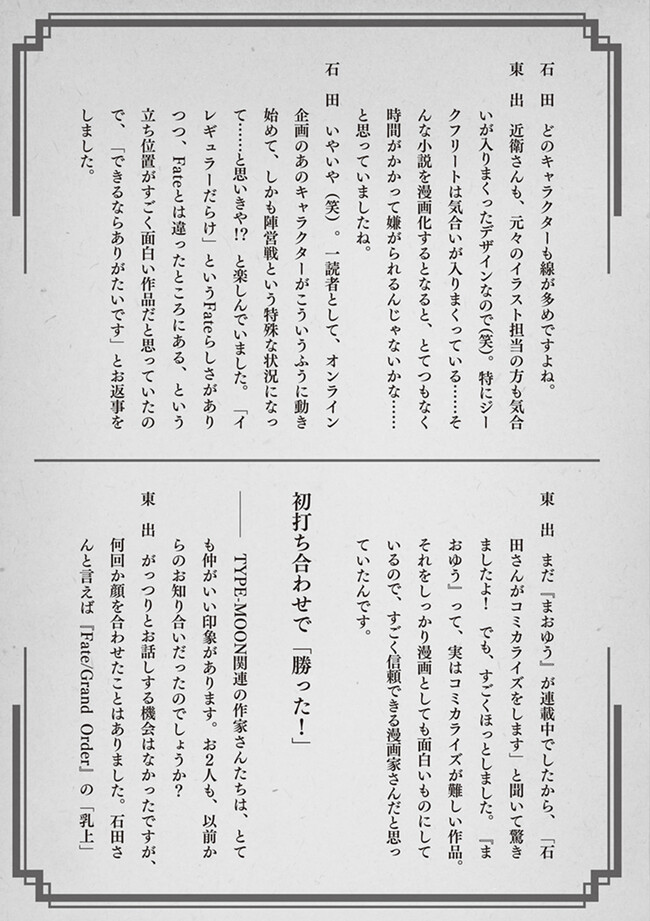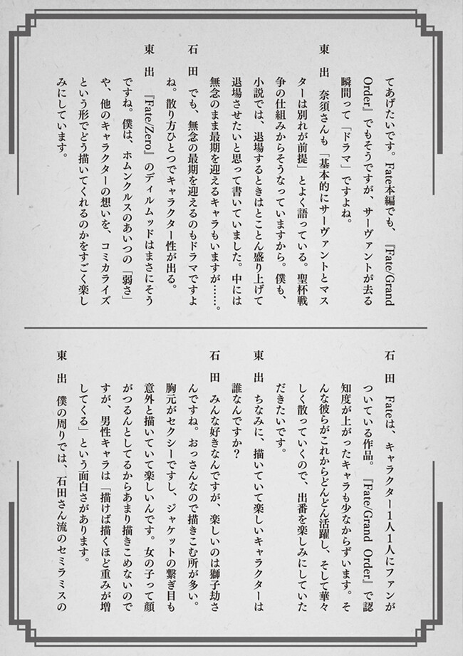 石田あきら×東出祐一郎の最強タッグ!! 大人気スマホRPG「Fate/Grand Order」でも活躍中の 英霊たちが繰り広げる超ド級の「聖杯大戦」――漫画で開戦!!