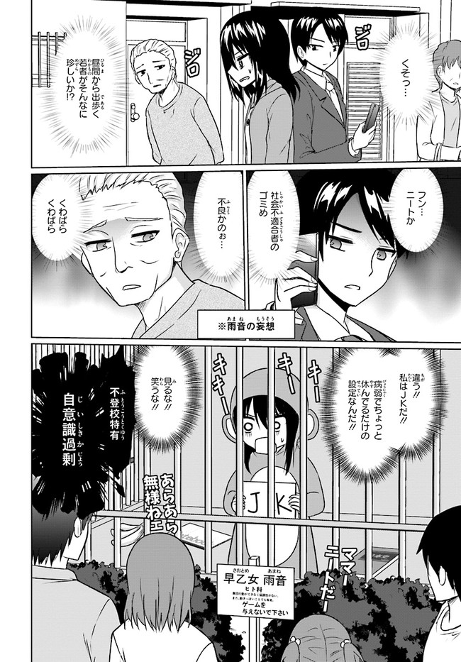 高校2年生の早乙女雨音ちゃんは、今日も元気に不登校ライフ充実中☆ ネットとゲームとアニメが大好きな、ごくごく普通の引きニート。でも、普通のニートとはちょっと違う! それは16歳のJKだということ! 人間的価値はかなり上位のハズ!! ……と、本人は思っていますが……。
