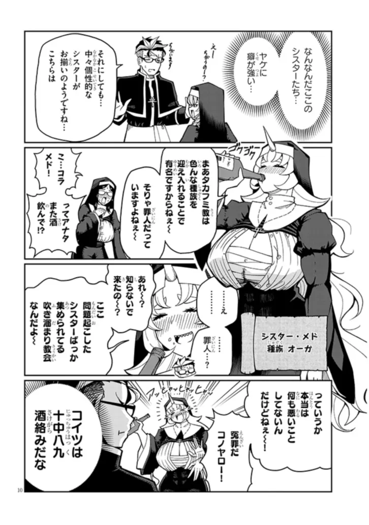 あるシスターは酒に溺れてゲ⚫︎を撒き散らし、あるシスターは酒池肉林を作り出し住民を暴走させ、あるシスターは妄想癖が激しすぎて常に脳内が桃色ピンク!!!