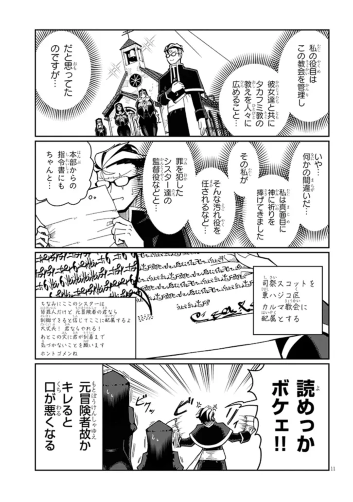 魔王を倒した勇者・タカフミが神として崇められている異世界で、青年司祭のスコットはタカフミ教を広めるべく、カルマ教会に赴任することに!!