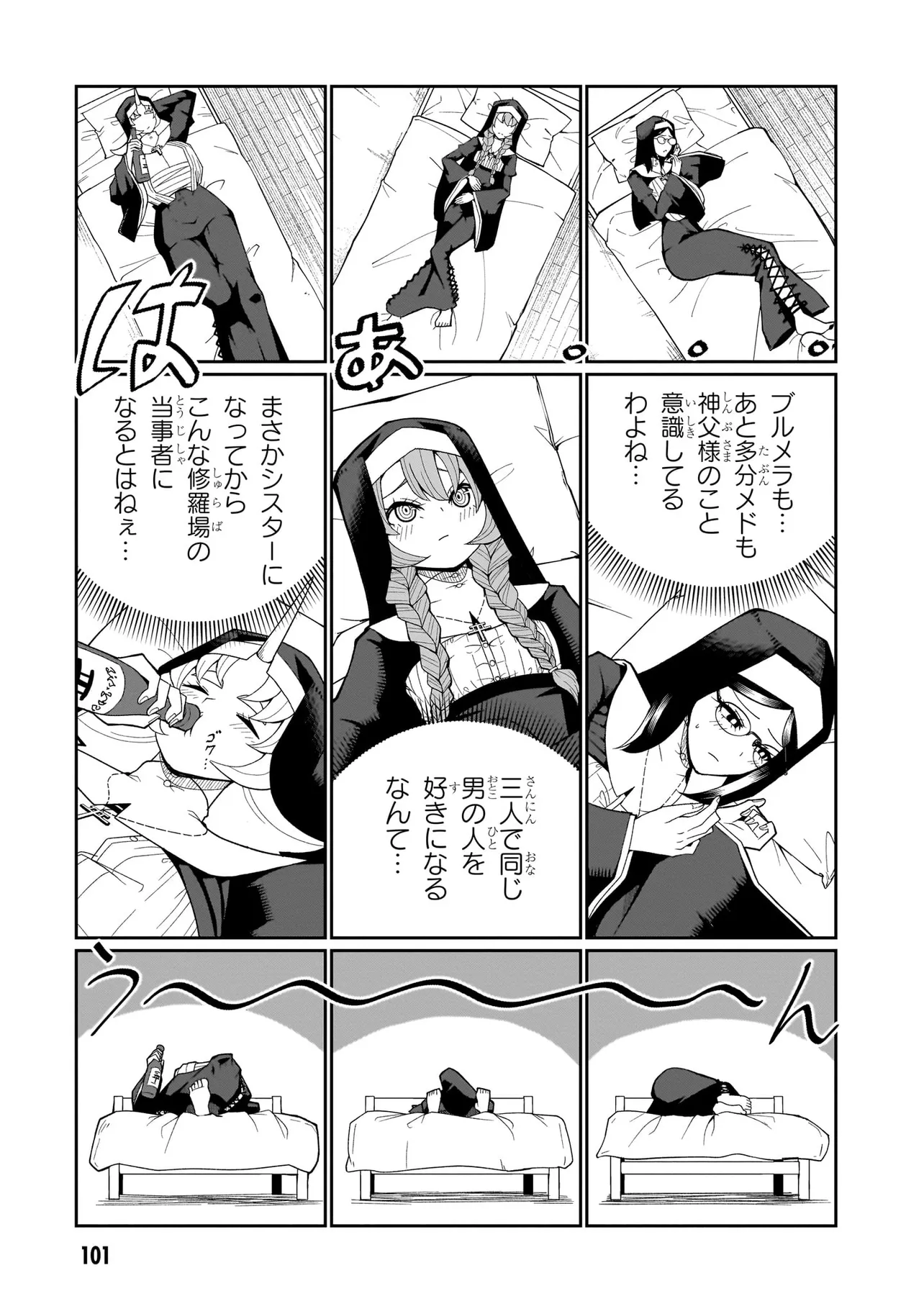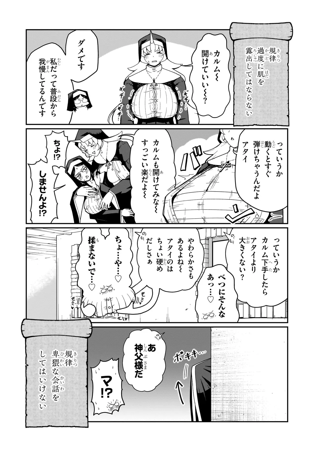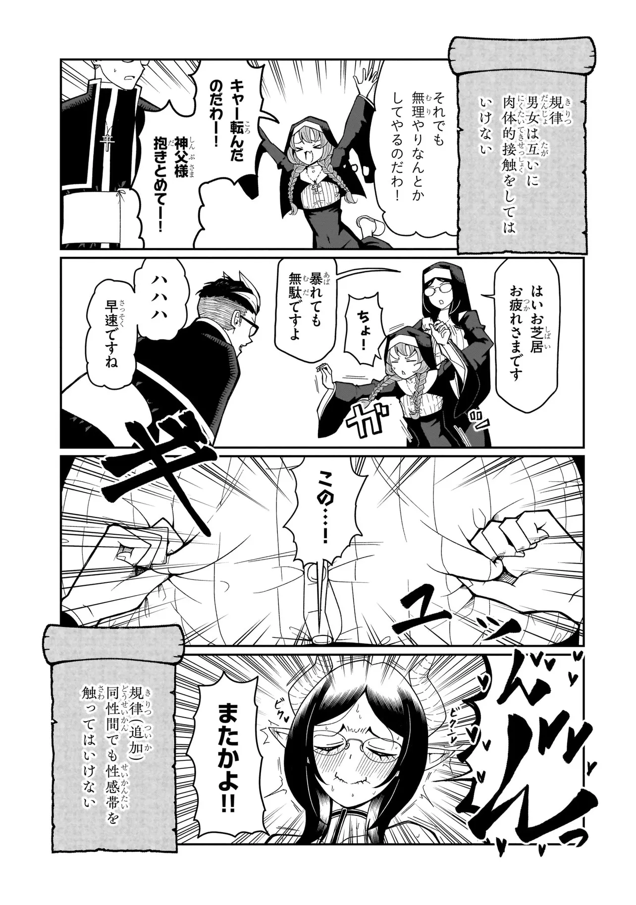あるシスターは酒に溺れてゲ⚫︎を撒き散らし、あるシスターは酒池肉林を作り出し住民を暴走させ、あるシスターは妄想癖が激しすぎて常に脳内が桃色ピンク!!!