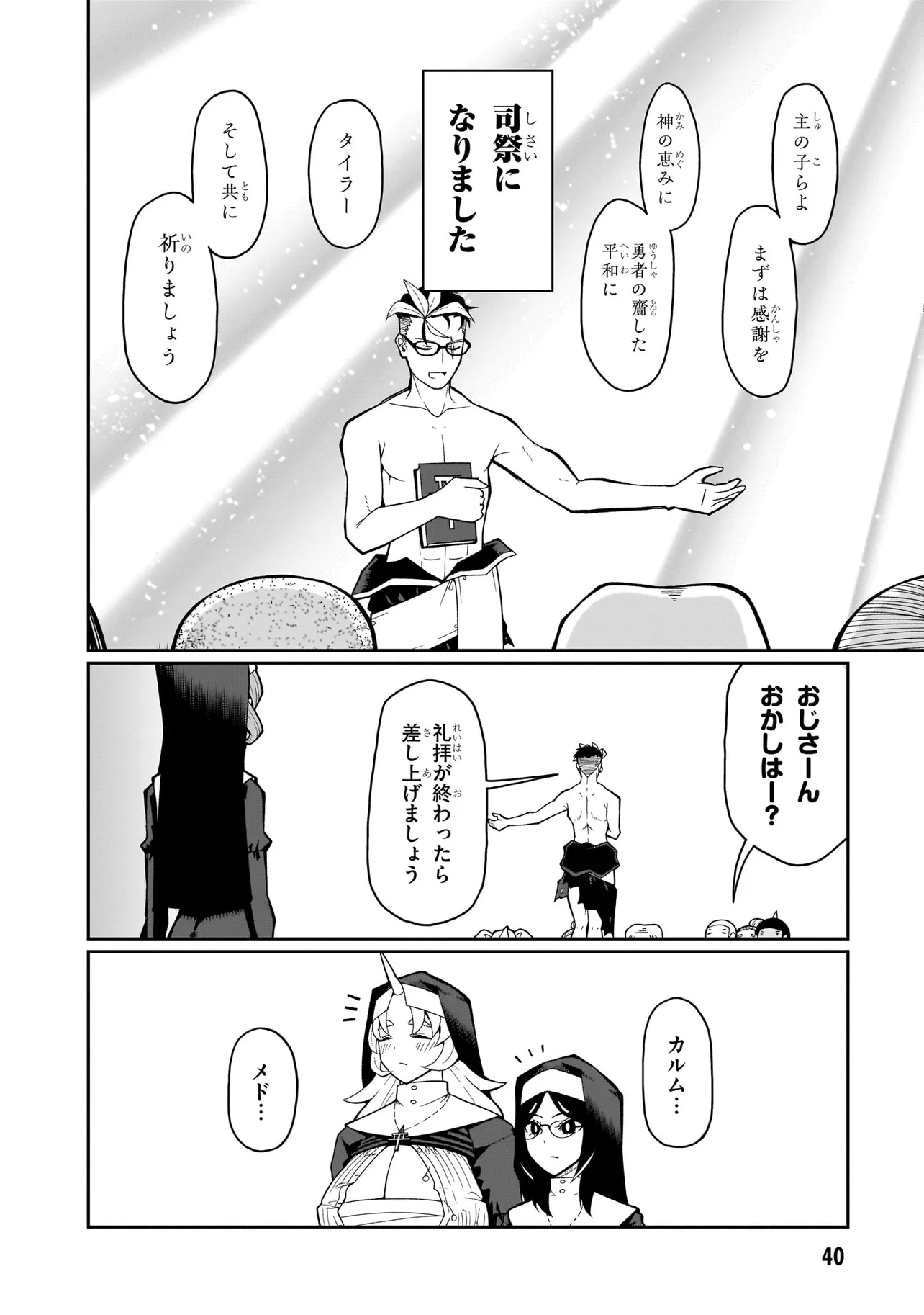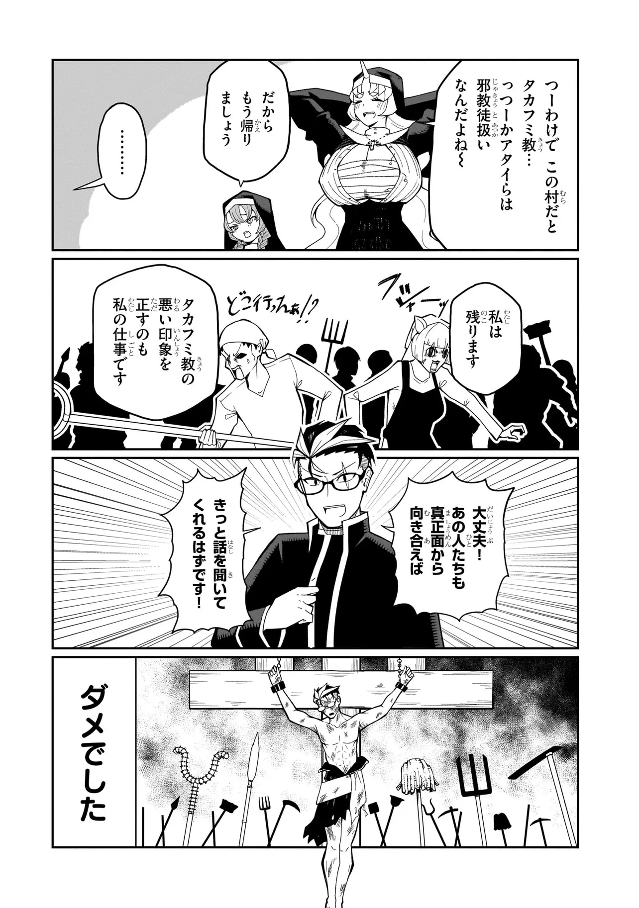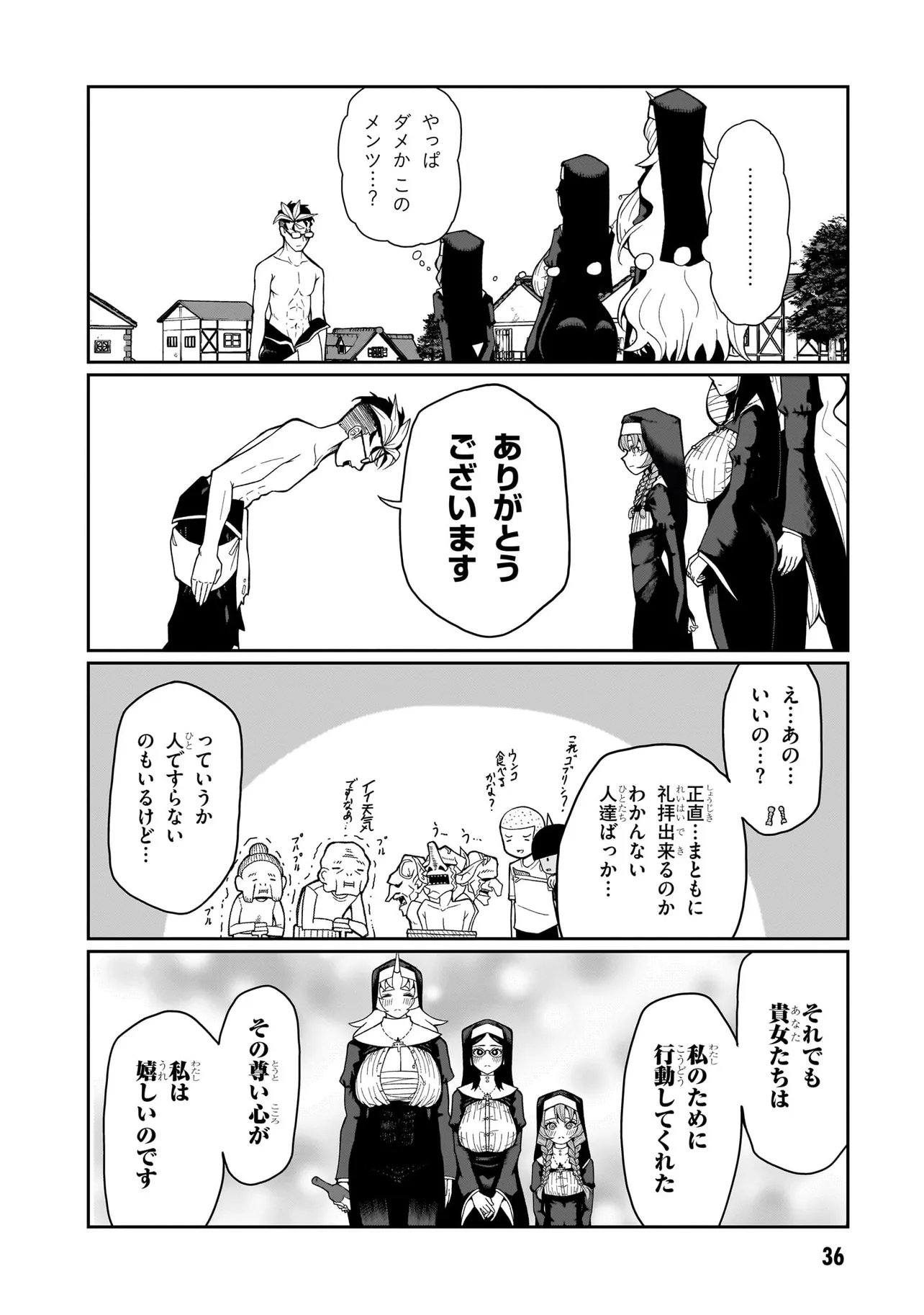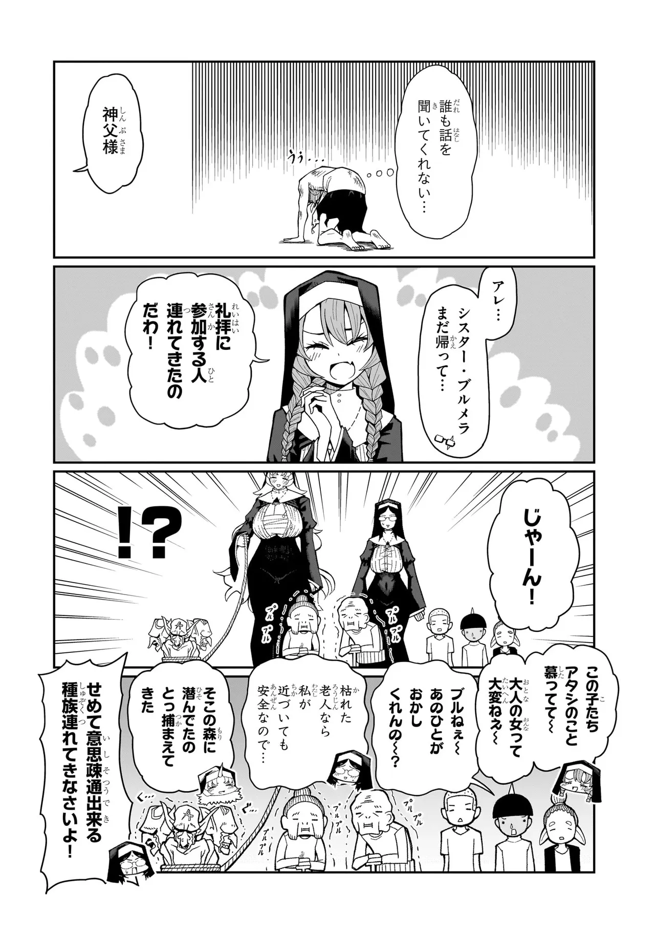 性職者(ケモノ)が貴方の色んな悩み、お聞きします♥ 魔王を倒した勇者・タカフミが神として崇められている異世界で、青年司祭のスコットはタカフミ教を広めるべく、カルマ教会に赴任することに!! しかし、この教会にはある問題があった。それはここのシスターたちが全員…超・超・超!!!!! がつくほどの淫●で問題児だったのだ!!!!!! あるシスターは酒に溺れてゲ⚫︎を撒き散らし、あるシスターは酒池肉林を作り出し住民を暴走させ、あるシスターは妄想癖が激しすぎて常に脳内が桃色ピンク!!! 変●シスターたちのせいで人が寄り付かなくなった教会を、果たしてスコットは建て直すことができるのか!!!!! それとも、スコットの性欲と理性がシスターたちによって崩壊させられるのが先か!!!!? こんな教会になら毎日通っちゃう!!? 欲望渦巻く教会勃(た)て直しエロ・ファンタジー!!!