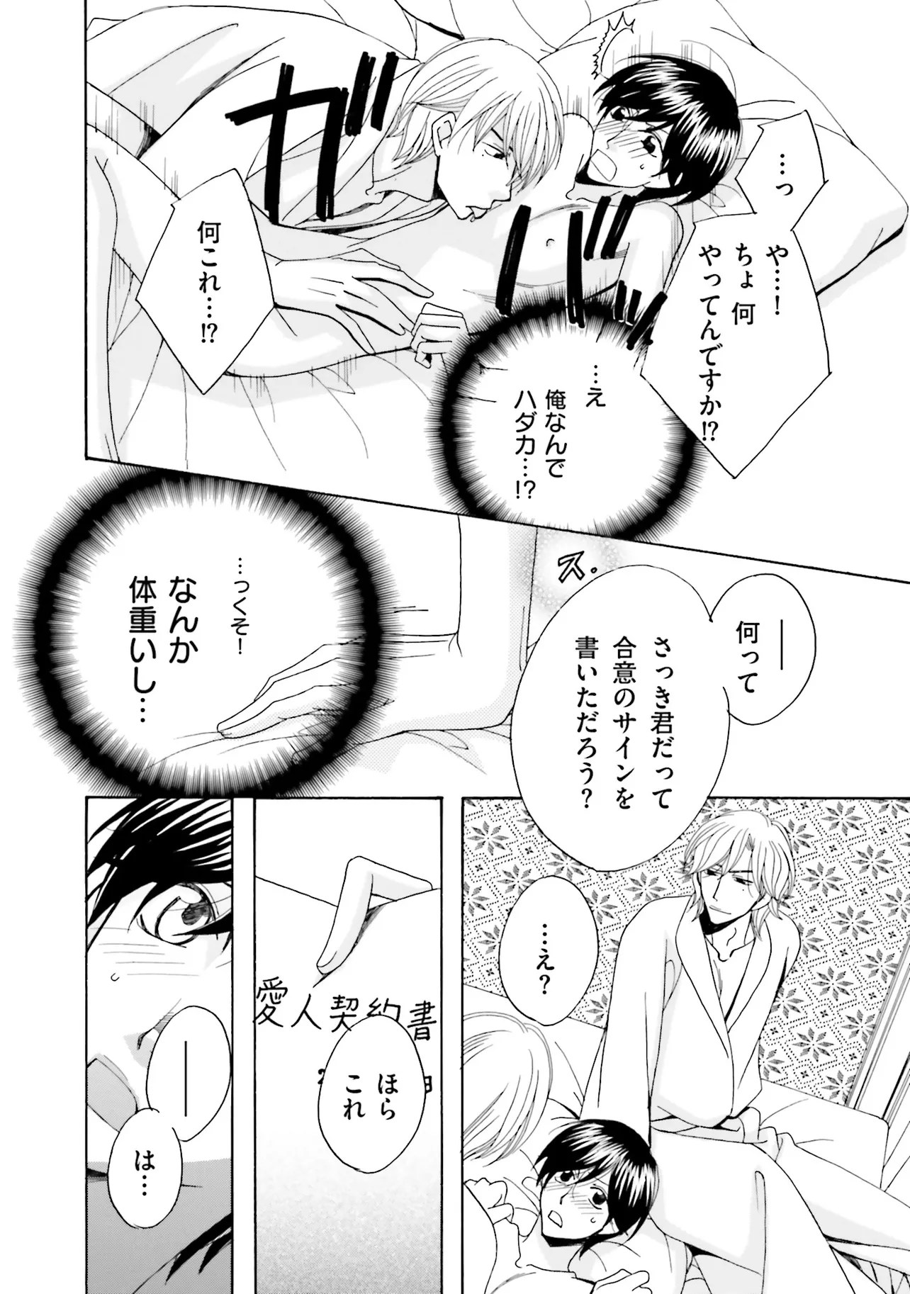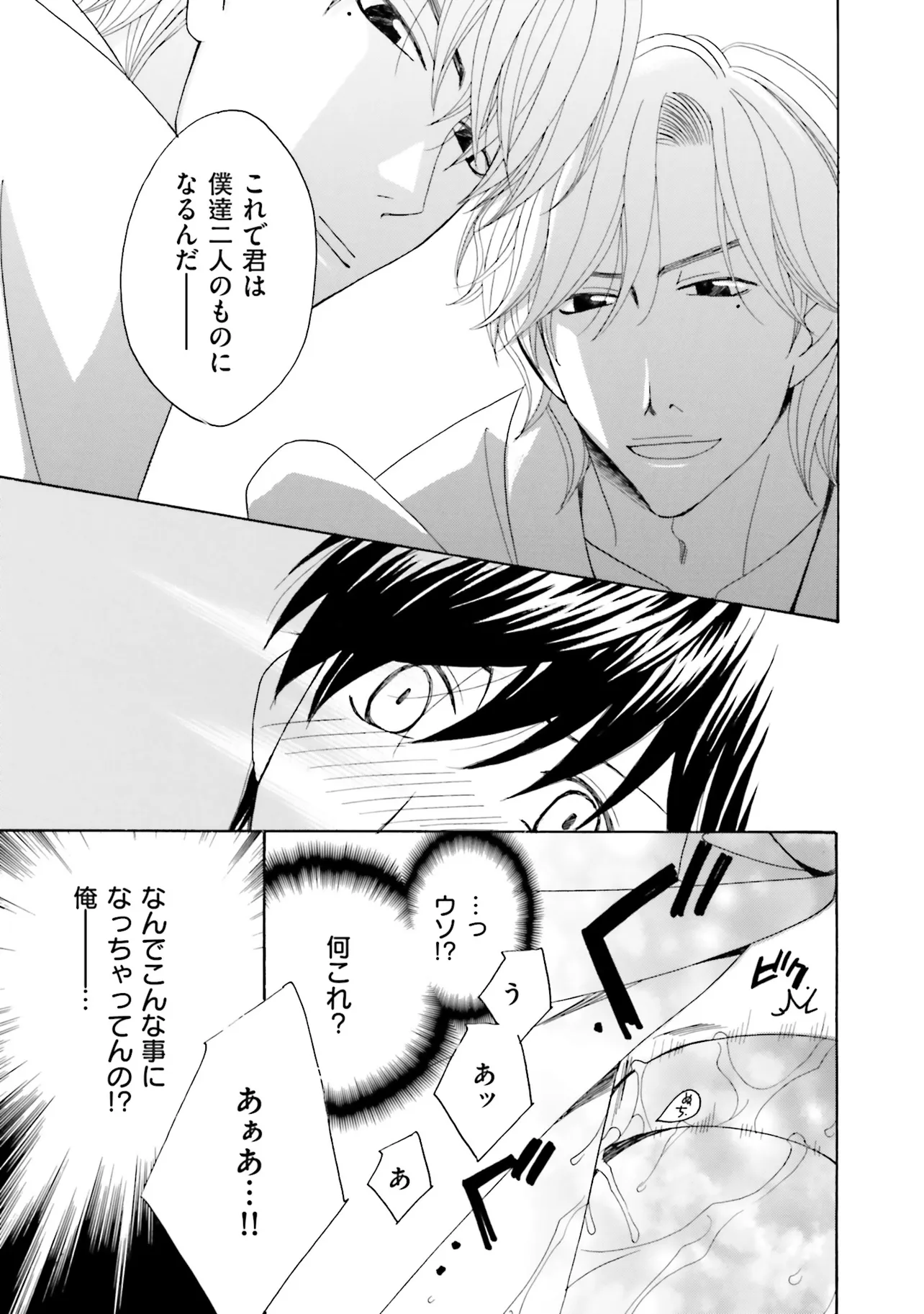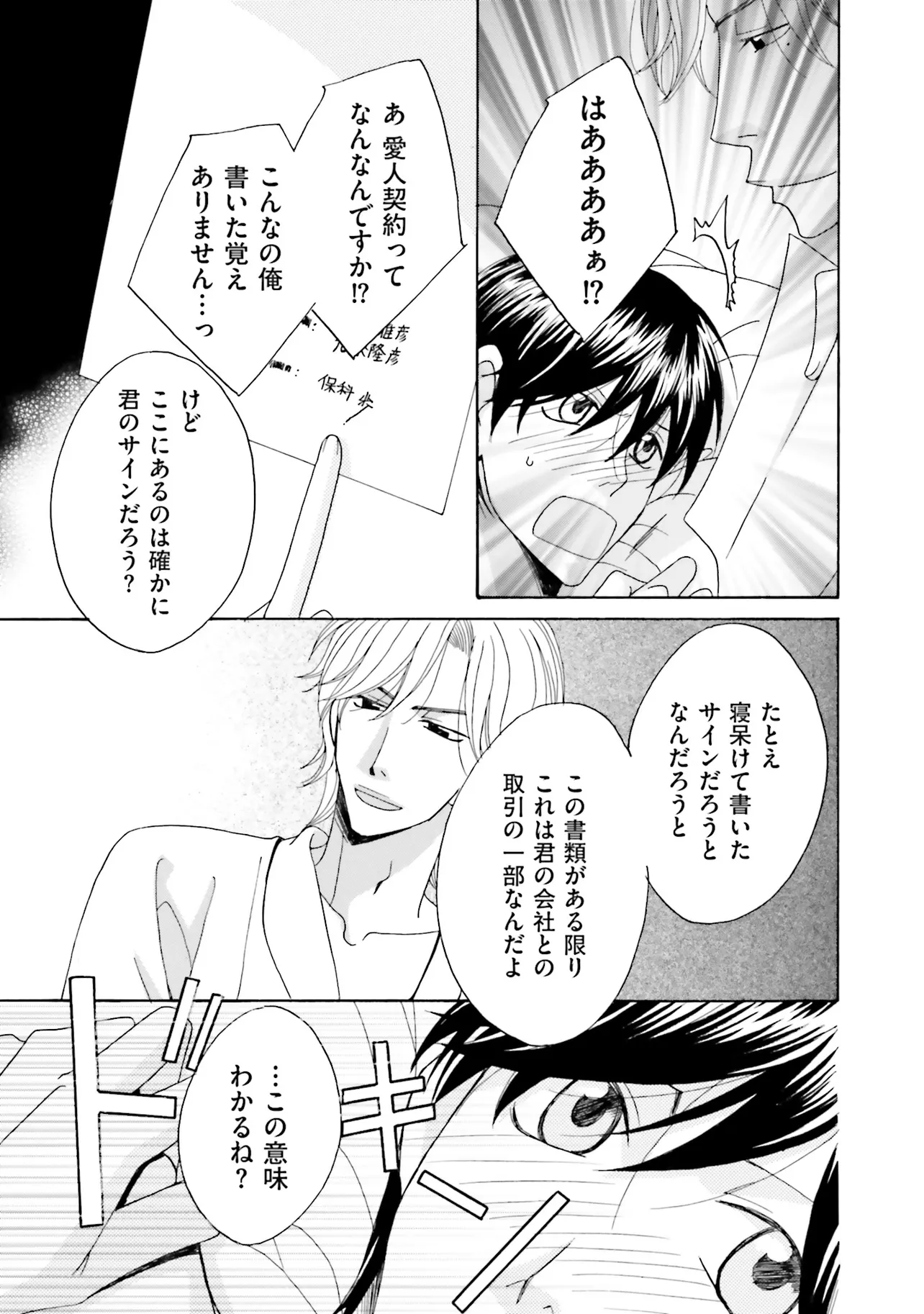 「これで君は、僕たち2人のものだ――」 営業リーマンの保科は、上司の命令で ある契約相手と、何故かホテルのスイートルームで会うことに。 そこにいたのは、双子の九条雅彦と隆彦。 うまく取引は終わったと思ったが、ふと眠くなり――... 気がつくと、ベッドの上にいた。 驚く保科が渡されたのは、合意済みの「愛人契約書」で...!? 電子書籍人気作品をコミックス化!双子の2人とエロティック3P!