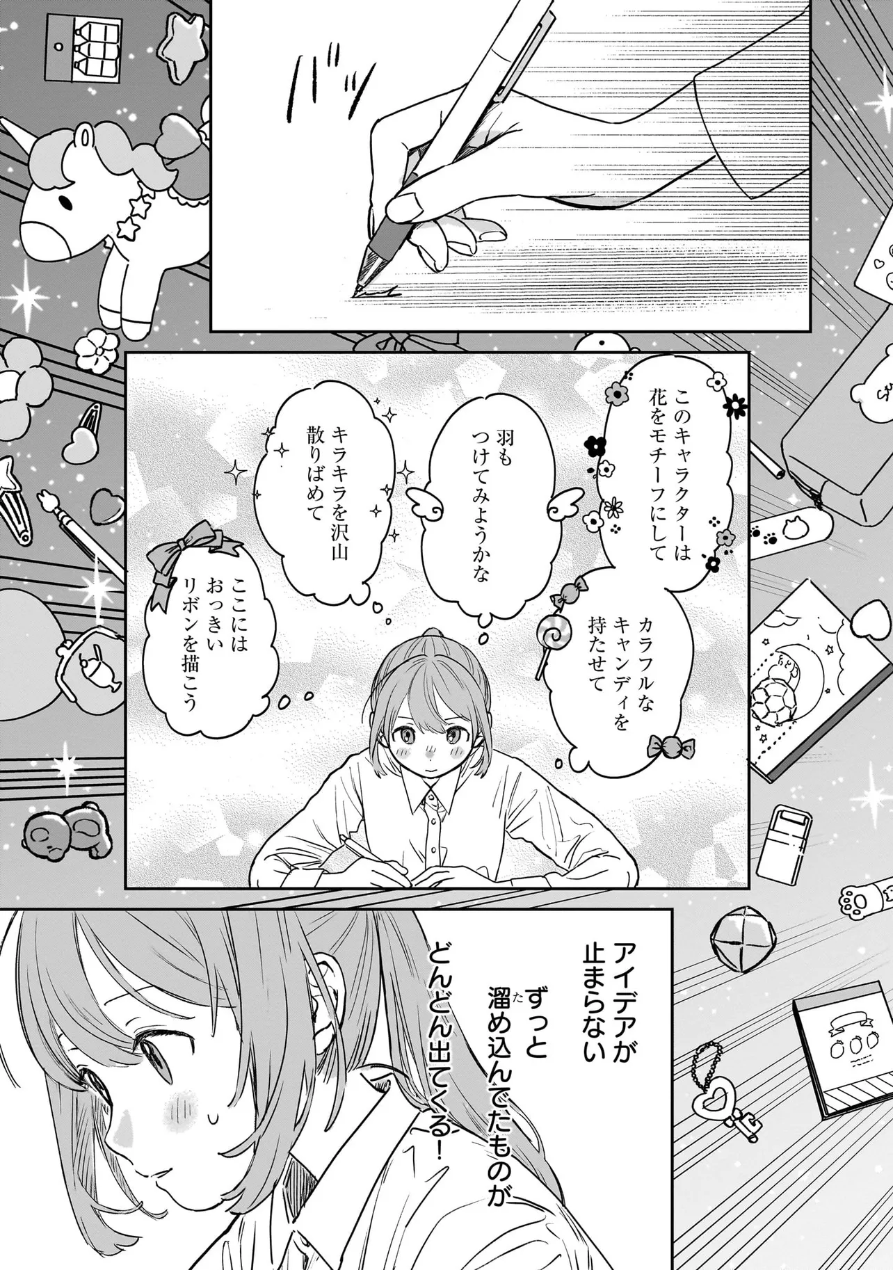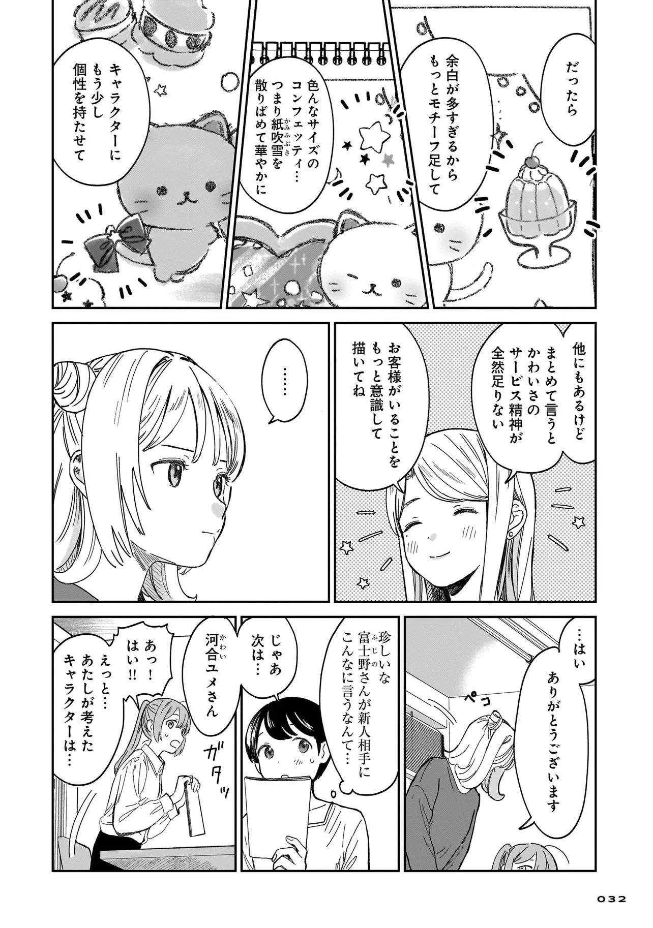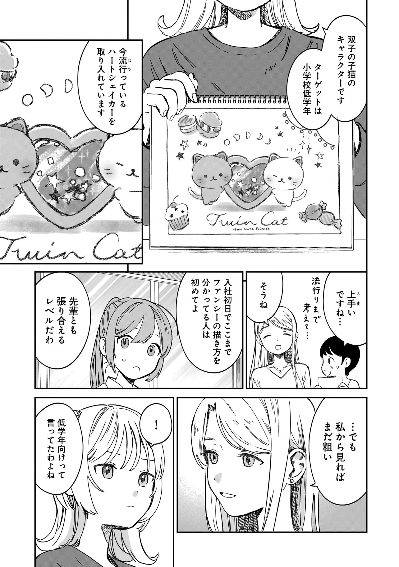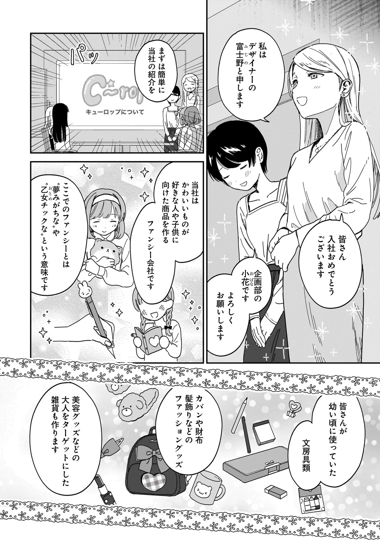 いざ、「かわいい」を創る業界へ! ファンシーキャラクターや雑貨を制作する会社に入社した河合ユメ。目標は、世界一の「かわいい」を生み出すこと! 同期社員の4人と一緒に、業界の基本技術を叩き込まれながら一歩一歩進んでいきます。