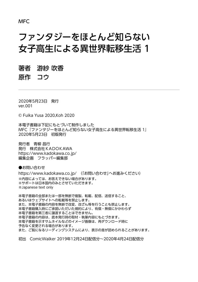 ファンタジーをほとんど知らない女子高生による異世界転移生活 フラッパー日常と冒険フェア 1巻無料