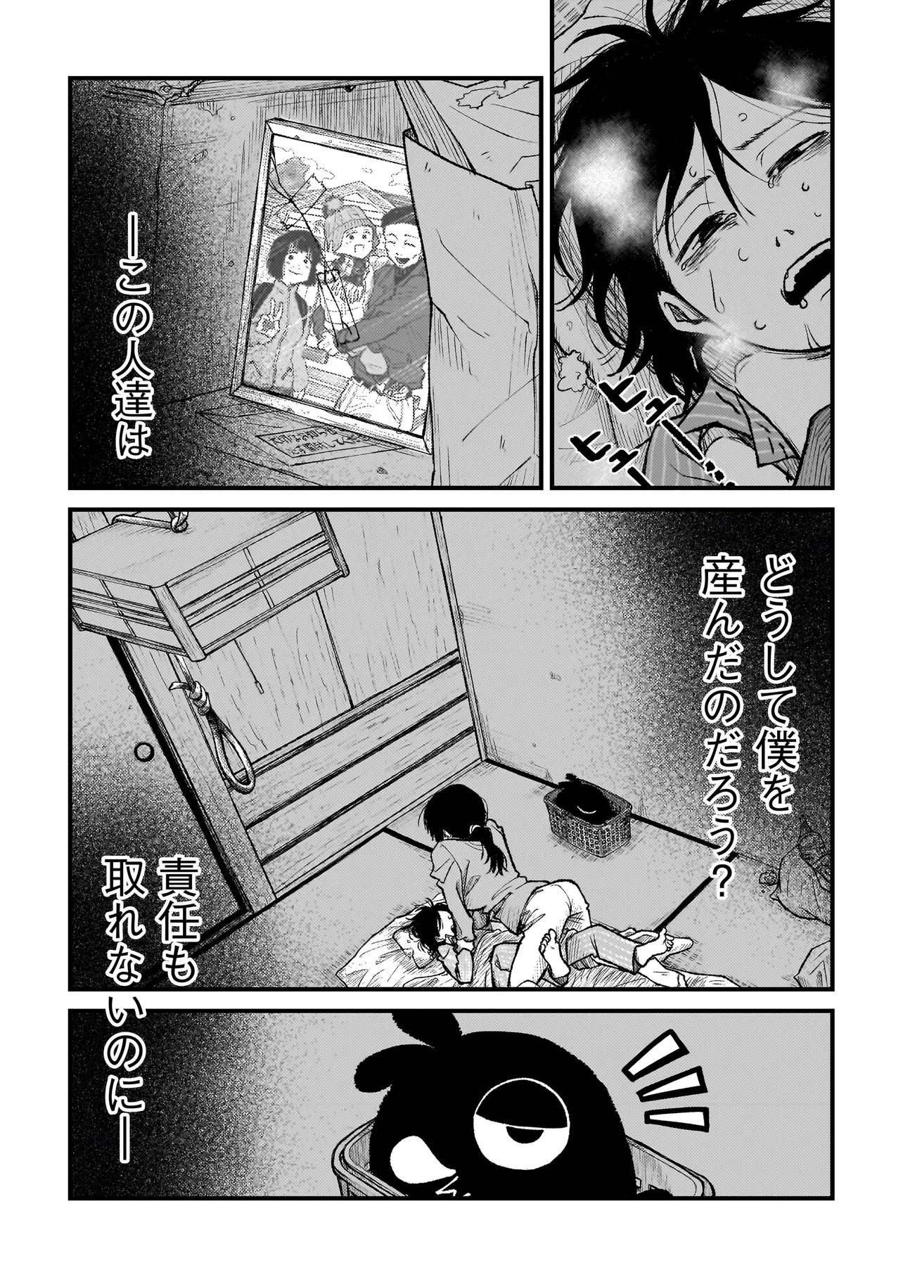 ふゆのともだち 第2話-2 ふゆのともだち 投稿者 admin - 10か月 前に 幸せな読書漫画 ふゆのともだち 第2話-2 , いいねと共有ボタンをクリックすることを忘れないでください. Manga ふゆのともだち 常に更新されます 無料コミック Comic Top. 他のマンガの更新を読むことを忘れないでください。 マンガコレクションのリスト 無料コミック Comic Top マンガリストメニューにあります. お友達と共有しましょう! Facebook Twitter Pinterest Whatsapp 前のエピソード すべての章 次のエピソード リスト ページング Loading.. 前のエピソード すべての章 次のエピソード リスト ページング お友達と共有しましょう! Facebook Twitter Pinterest Whatsapp お気に入りに追加に続く 0 人 ふゆのともだち バブル崩壊後の淀んだ空気が漂う北のとある田舎で、家庭環境に苦しみ生きづらさを感じる一人の少年・冬真。アル中の父親に度々家を追い出される冬真は、近所の森に秘密基地を作っていた。そんな憩いの場で、ある日"ナニカのたまご"を見つける。数日後、そのたまごから生まれたのは―― サワダマン シリアスドキドキハラハラドラマ切ない動物友情・仲間大人向け家族日常系現代社会秘密の関係