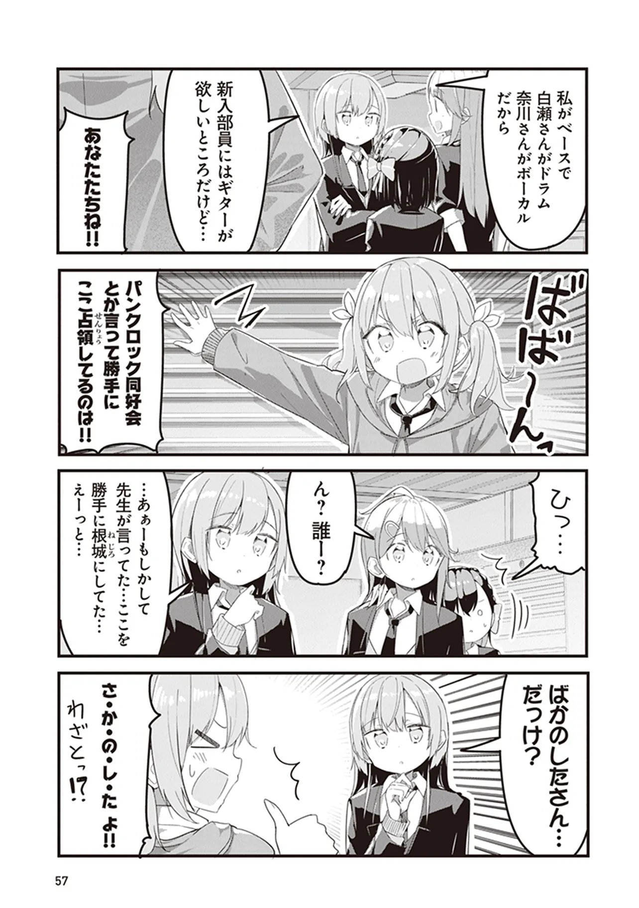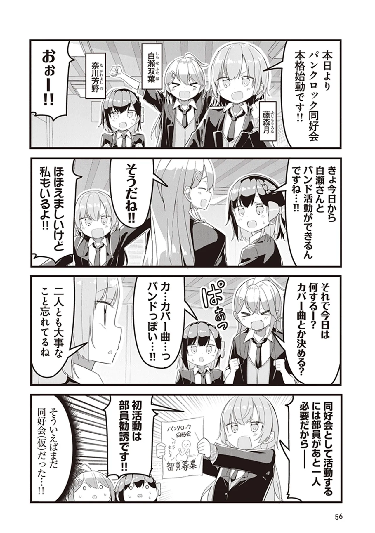 幼い頃に観たロックバンドのライブに心をつかまれた少女・奈川芳野。 だが彼女は高校生になっても治らない極度のコミュ症&あがり症が災いし、高校入学直後から大きくつまずいてしまい……? 青春と友情のJKロック4コマ、開演!!