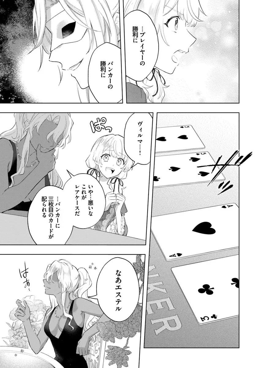 領地存続の危機に立たされている、崖っぷちの伯爵令嬢エステル。 現状を打開し、なんとしてでも領地を立て直そうと決意する。 まずは資金を得るため、個性的な友人たちと共にイチかバチかでカジノへ足を踏み入れるが、思いもよらぬ展開に陥って── 気づけば、王子の婚約者を務めることになっていて⁉