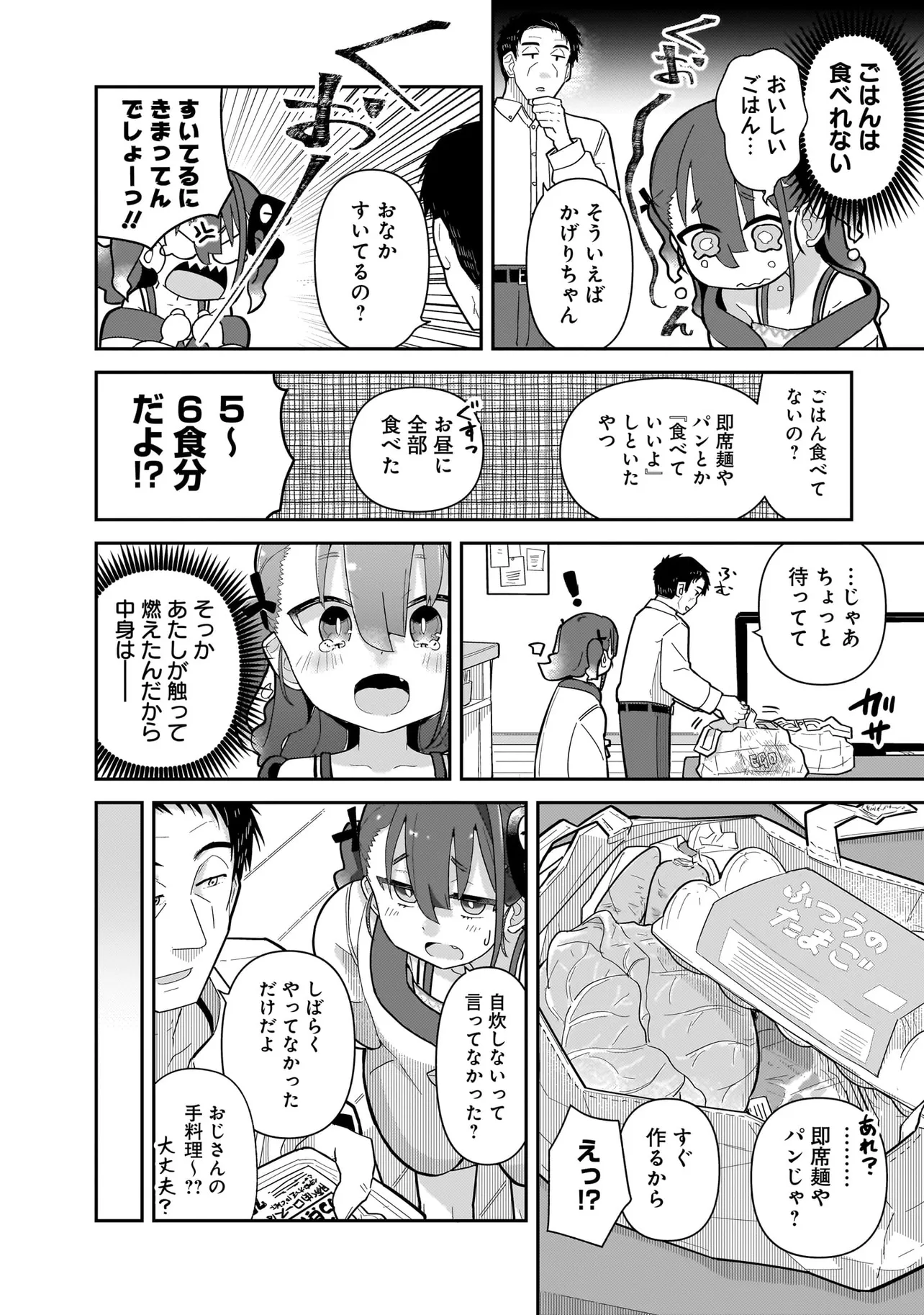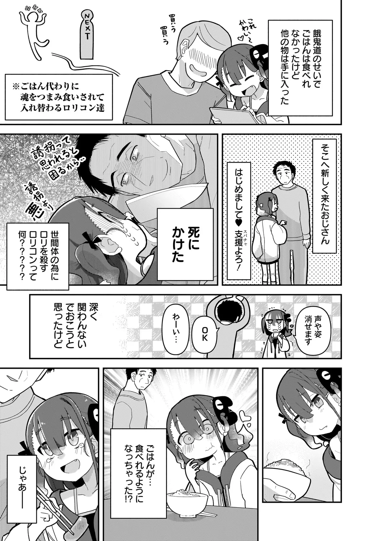 オタクおじさんの部屋に現れた幽霊(?)少女は誘惑、挑発、ワケアリ……のまさに♀ガキ! おじさんイチコロかと思いきや―― 「僕みたいなロリコン男性のいちばん大事なものって……何だかわかるかい?」 怯えて笑って腹が減る。 少し生き辛いふたりのハートフルスイング同居コメディ!!